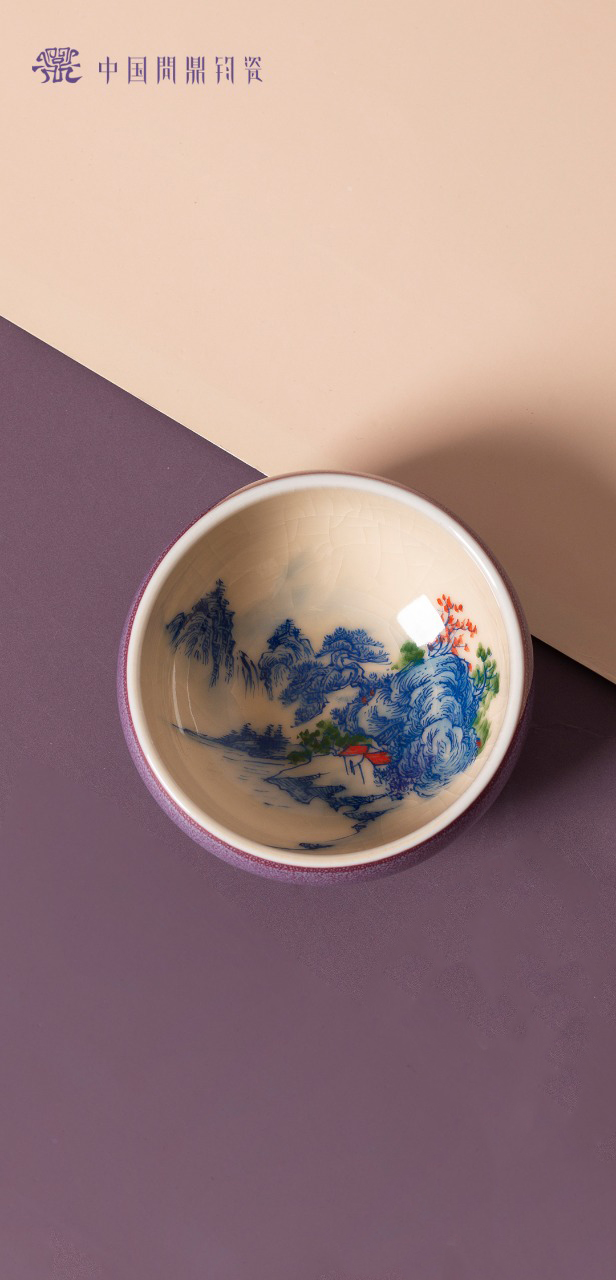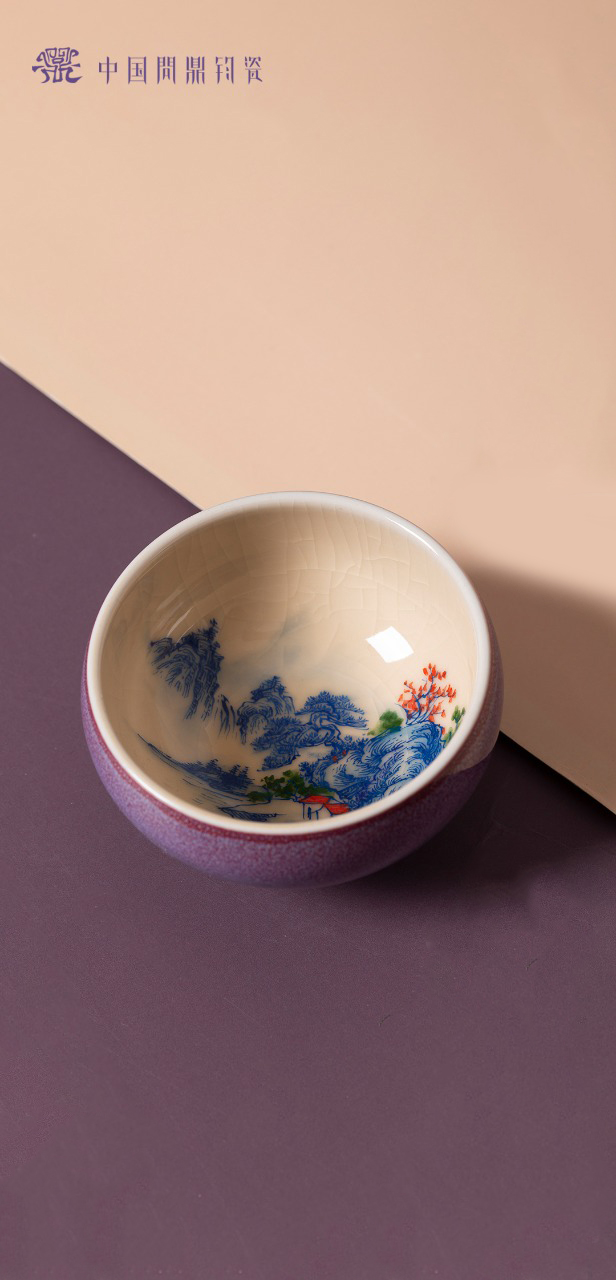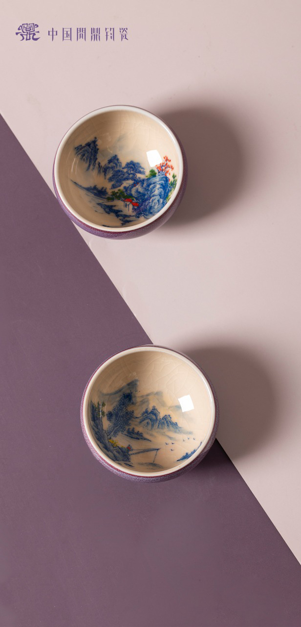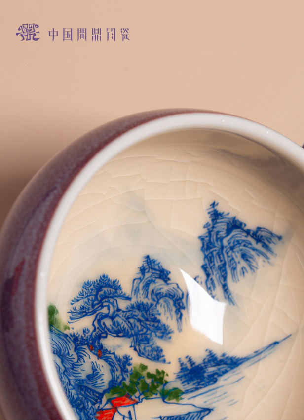 问鼎钧瓷鹅黄青花平口杯(早秋山居)