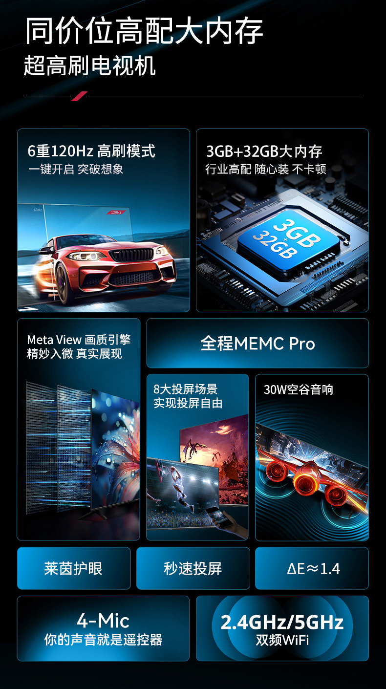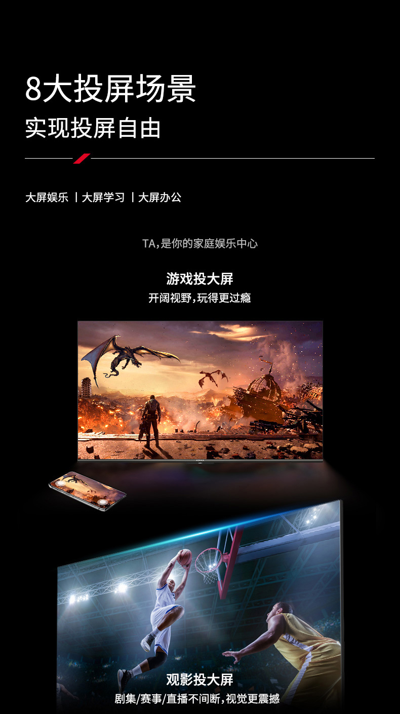 85英寸 3+32GB 超薄全面屏电视机 85E8AE