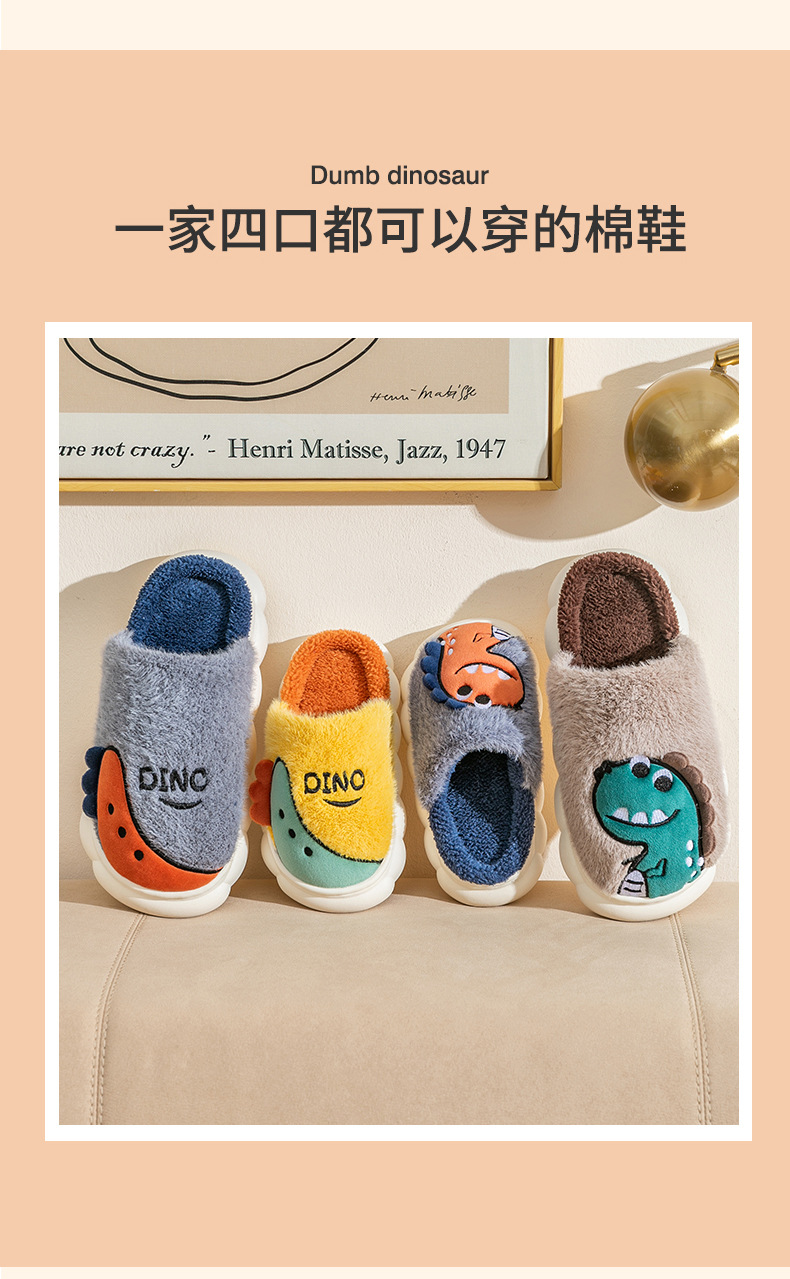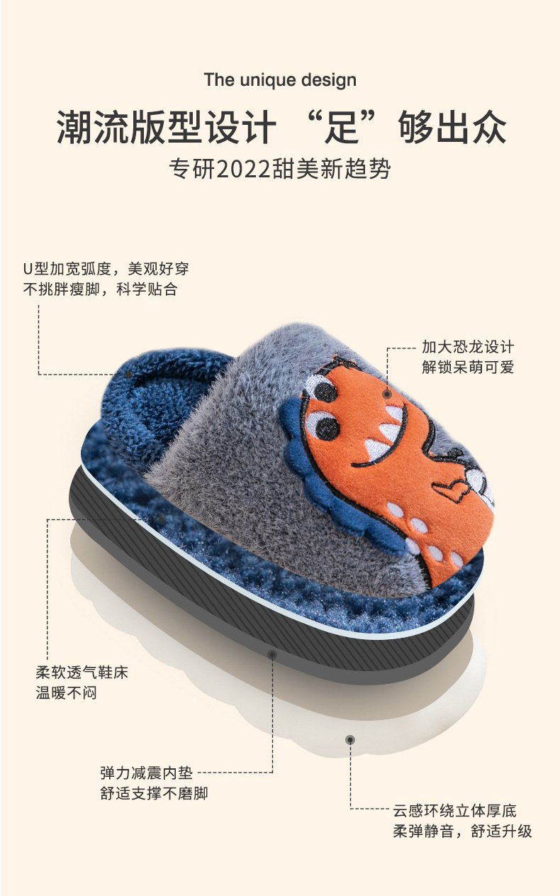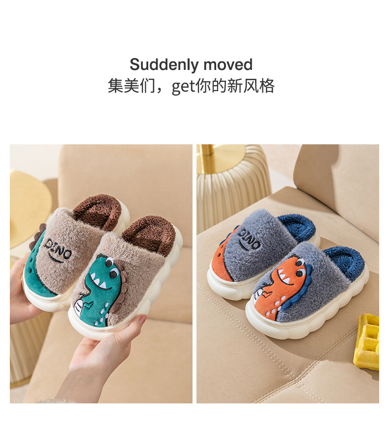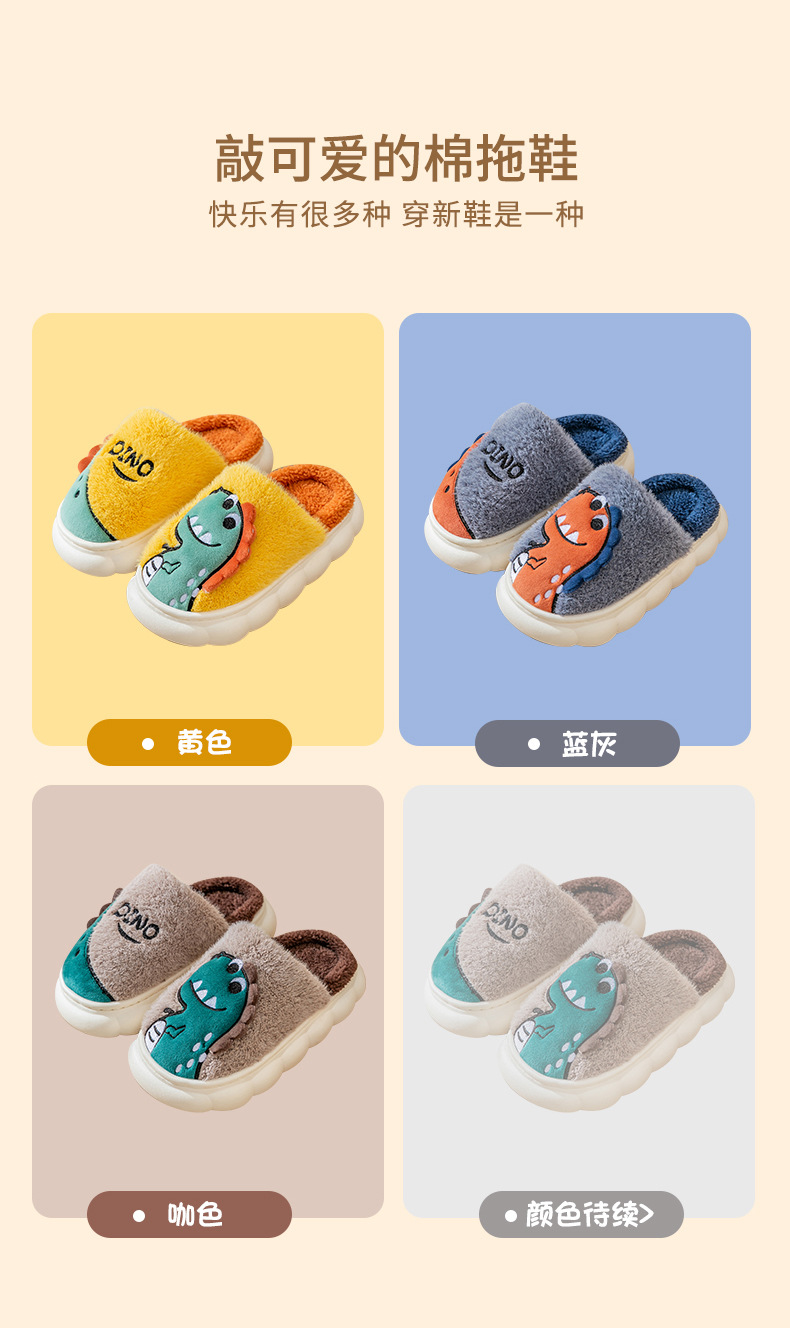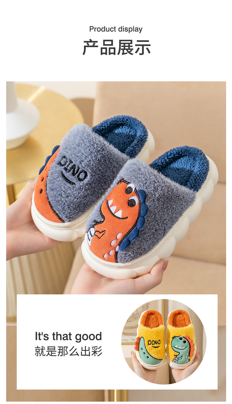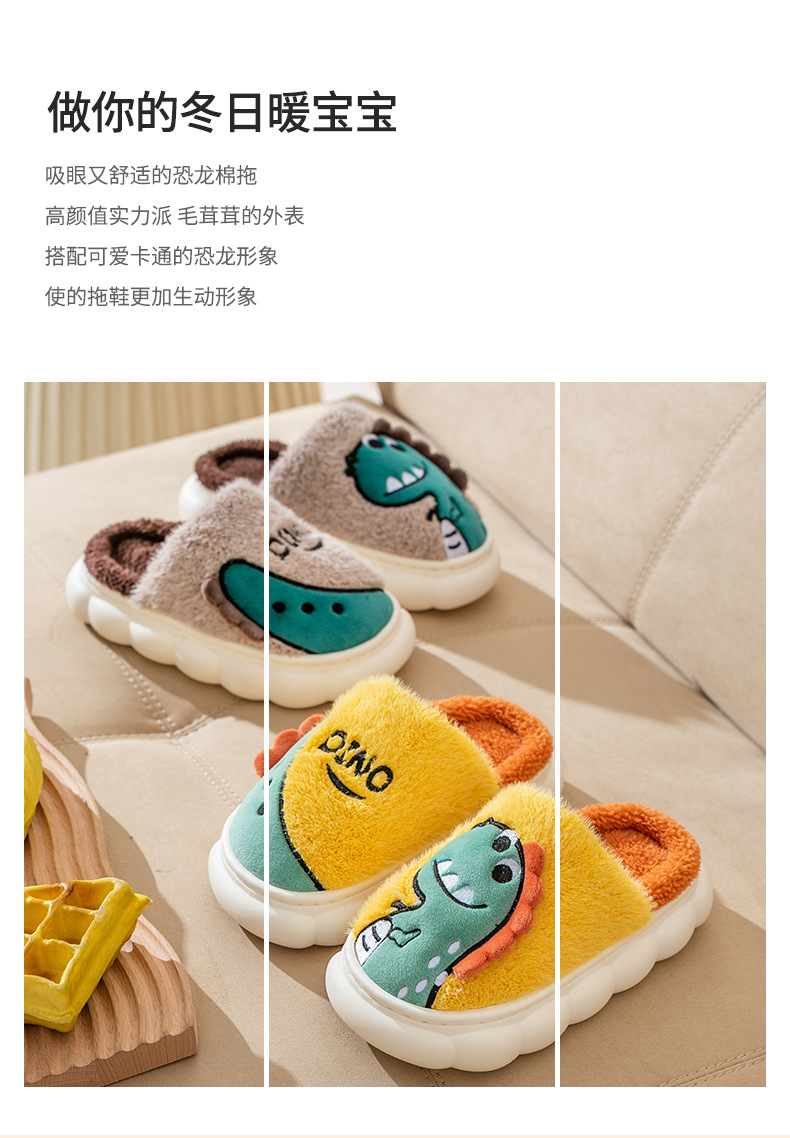 【暖心卡通棉拖 很温暖也很可爱】儿童棉拖鞋秋冬季中大童恐龙可爱男小孩毛绒拖鞋女童家居室内鞋