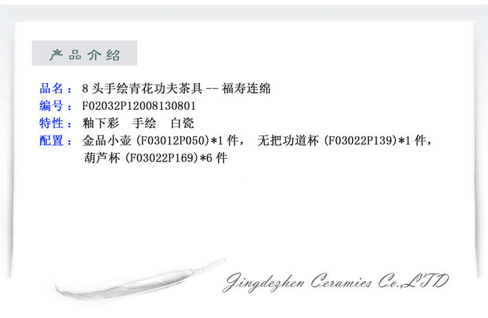 景德镇 陶瓷 国瓷红叶 8头手绘青花功夫茶具福寿连绵