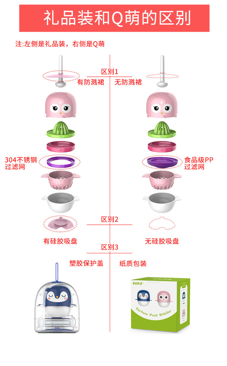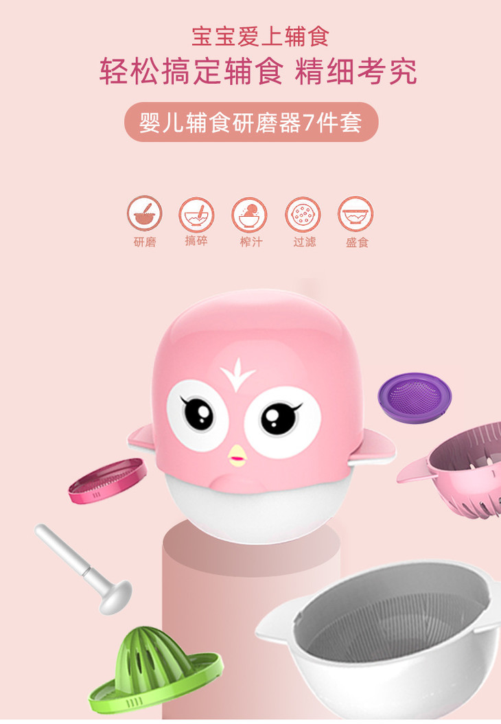 【辅食器】*创意手动食物研磨器 婴儿宝宝辅食儿童Q萌研磨器碗果蔬泥料理工具