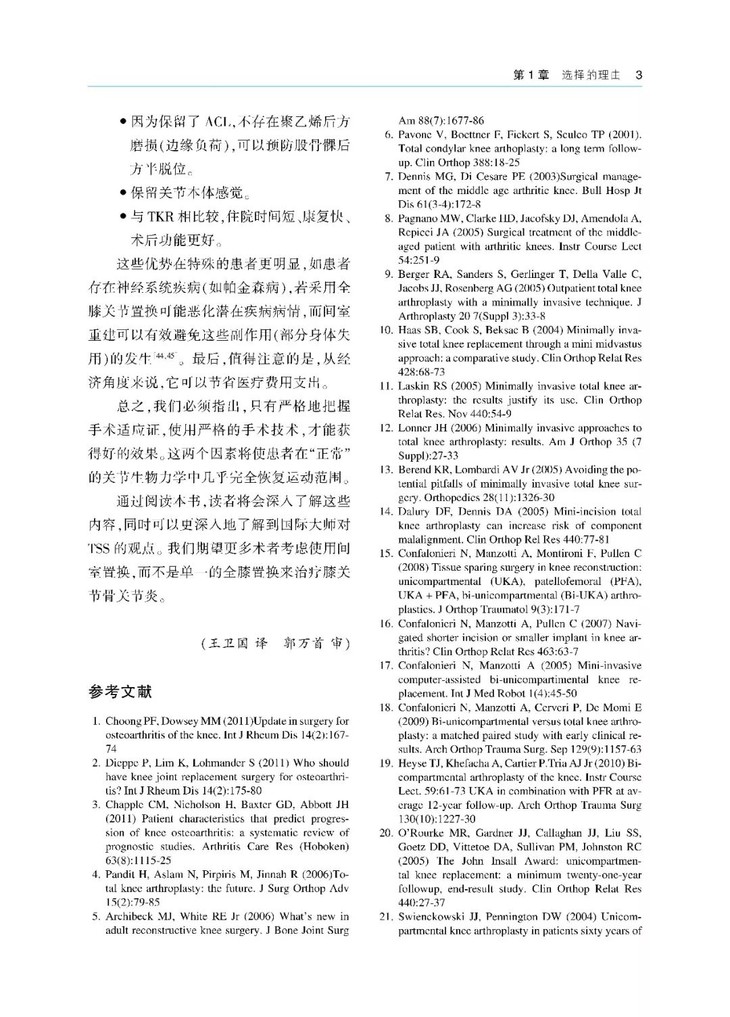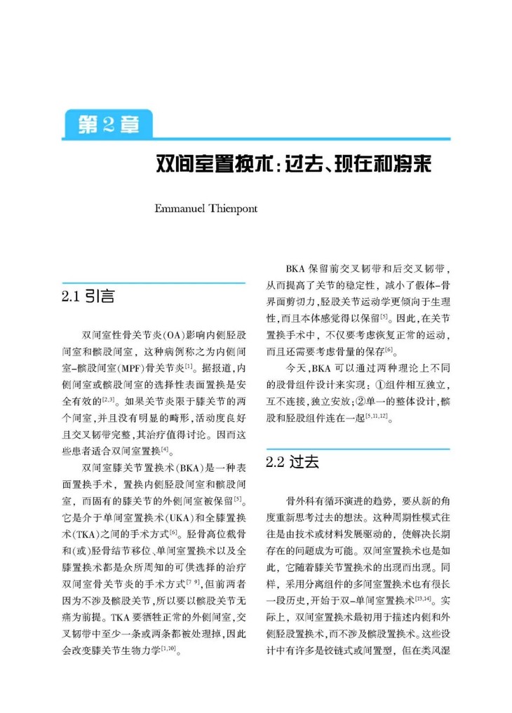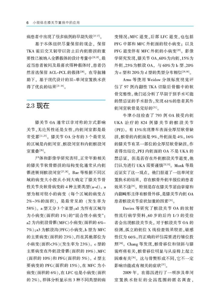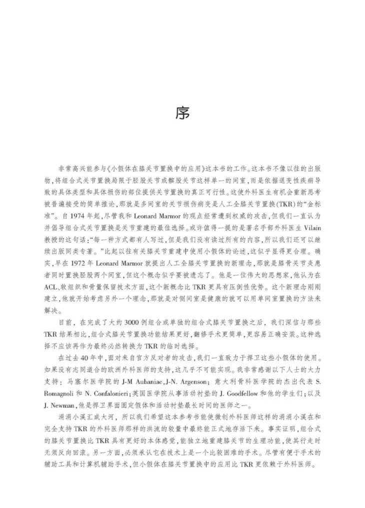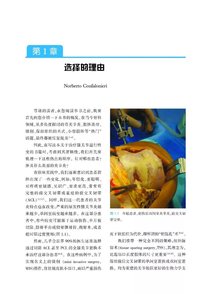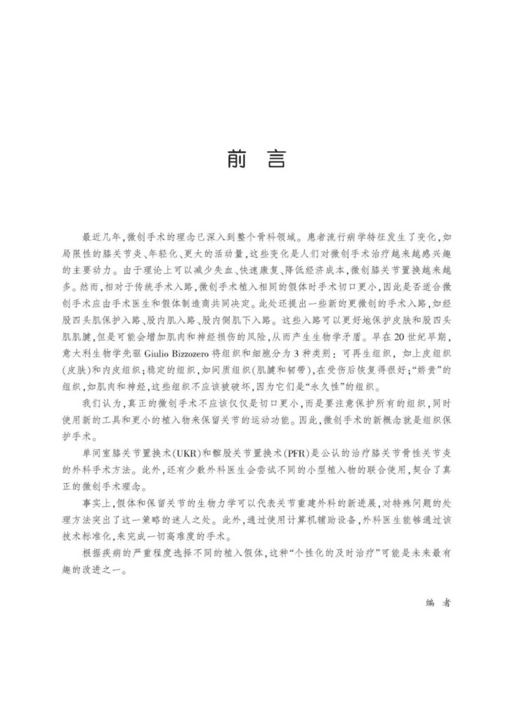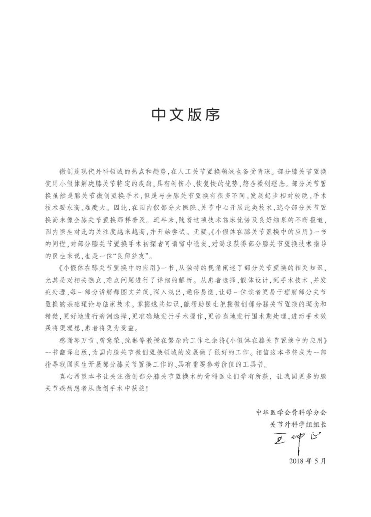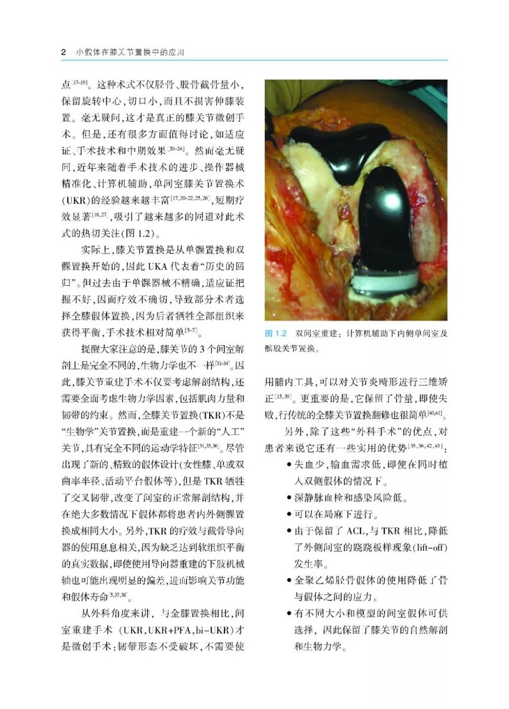 1. 本书基于大量临床病例研究,对以往骨科临床实践中的概念进行更新,强调当关节损伤超出单间室或独立间室时不一定使用全膝置换,使用小假体也是一种新的尝试,这在国内出版物中较为少见。