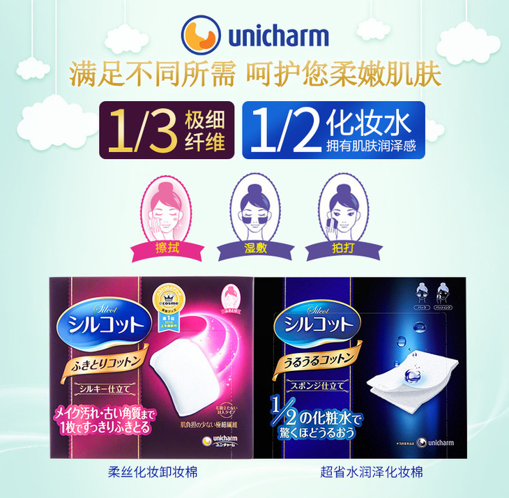 现货▲日本 UNICHARM/尤妮佳silcot化妆棉 1/2省水卸妆棉cosme大赏