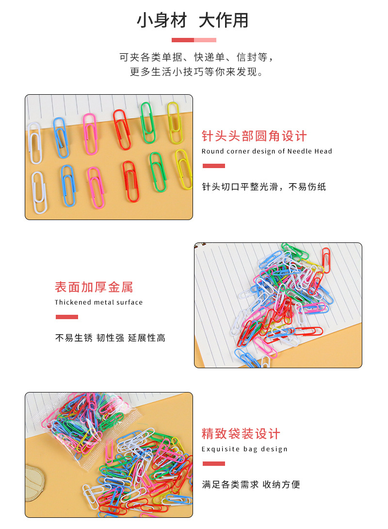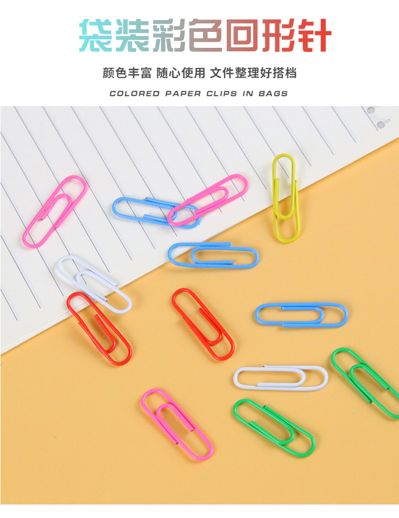 袋装彩色回形针创意办公用品资料固定针28mm学生文具曲别针70枚装