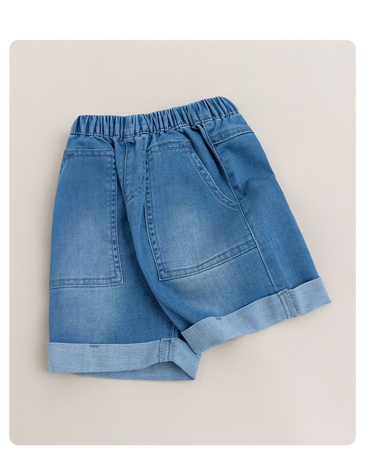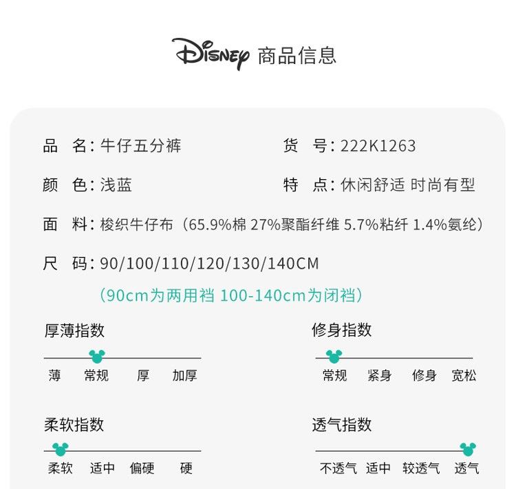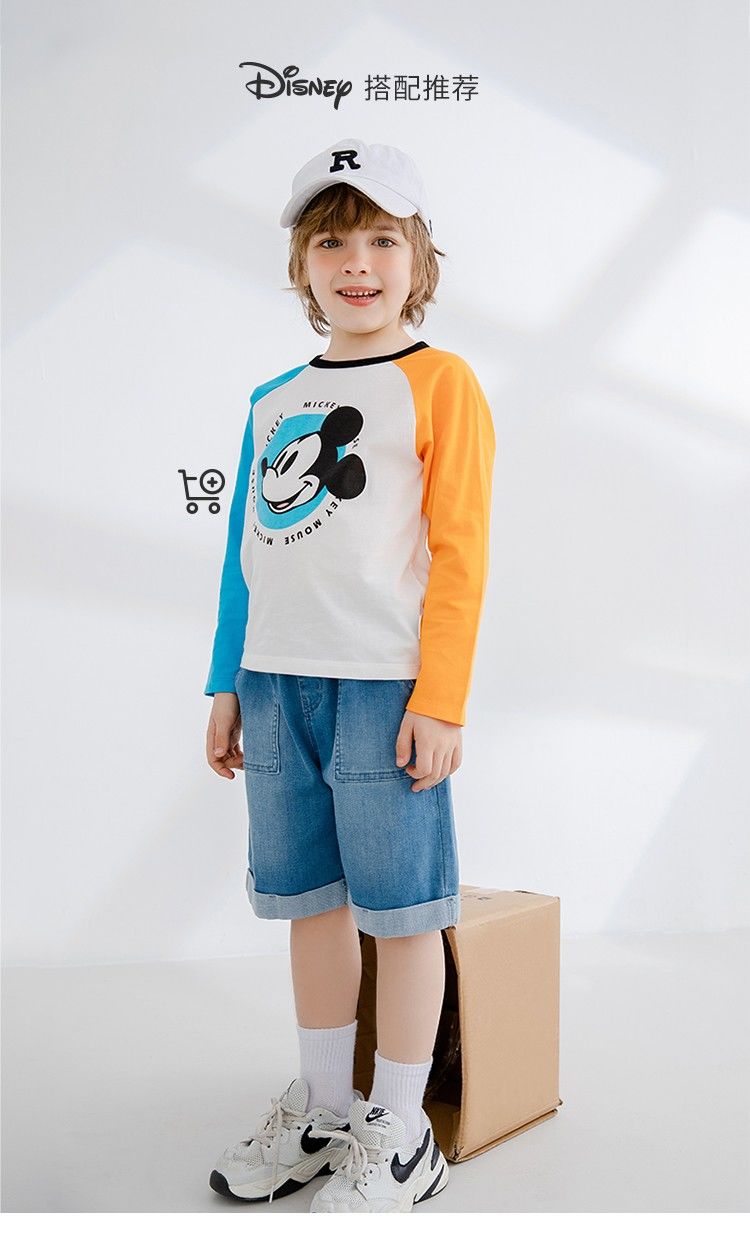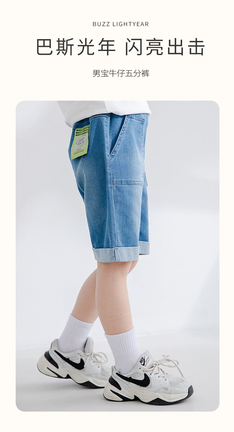 迪士尼童装 男童牛仔短裤夏新款外穿男孩中裤宽松薄款裤子潮