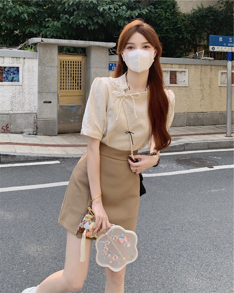 【气质女孩必备穿搭】中式复古短袖 旗袍立领盘扣设计 修身版型显瘦好看 国潮中式风 气质优雅
