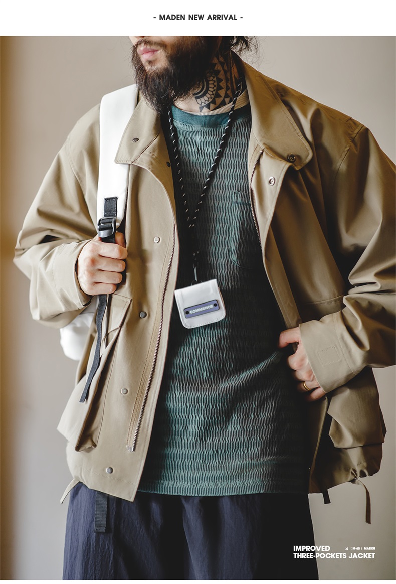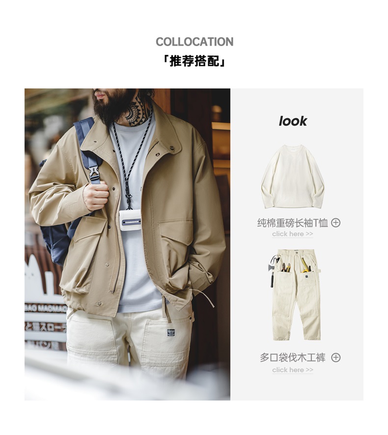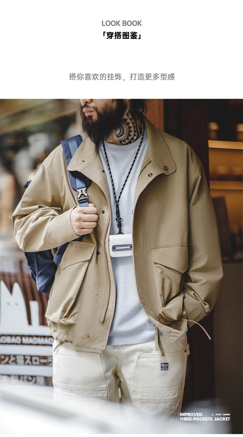 工装优选 美式复古M65夹克多口袋翻领阿美咔叽宽松卡其色外套男秋