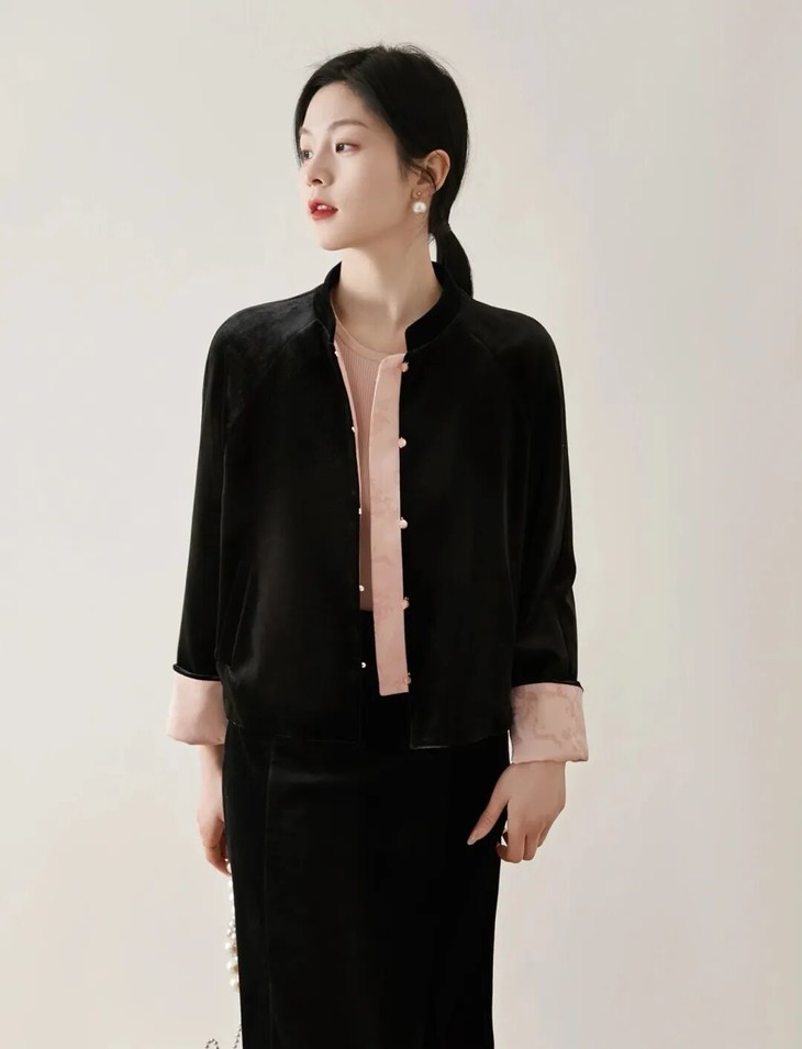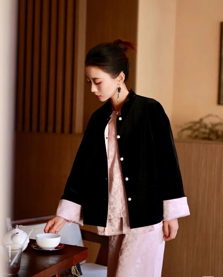 更妙的是,普通新中式外套只能初秋穿,这件外套深秋、初冬都能穿。