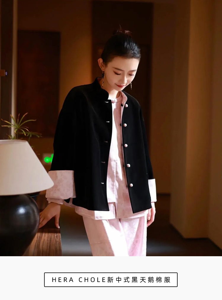 今天掌柜就给大家找来一件适合秋冬穿的外套—— HERA CHOLE新中式黑天鹅棉服。
