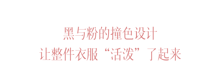 今年大火的复古撞色翻折袖设计,采用了水粉色与主体黑色的结合。