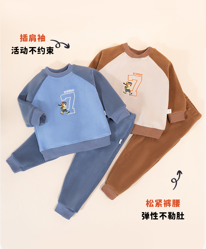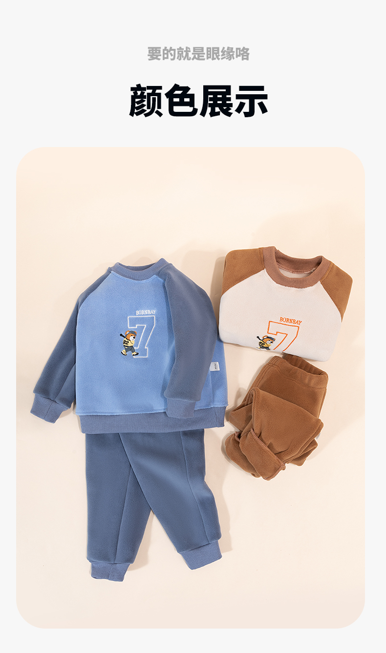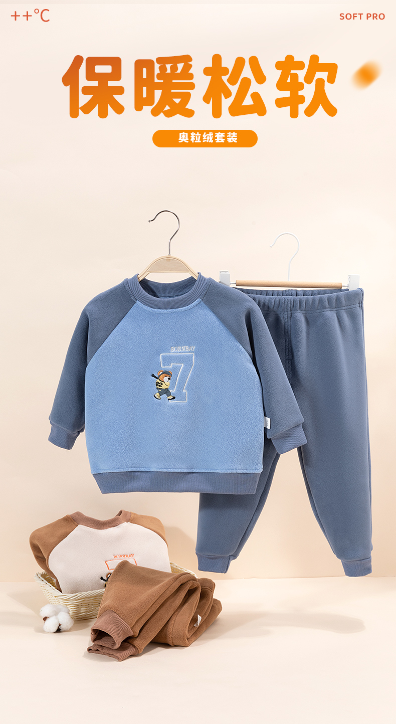贝贝怡童装男童家居服秋冬季2024新款儿童套装两件奥粒绒保暖秋装ZB3DT012