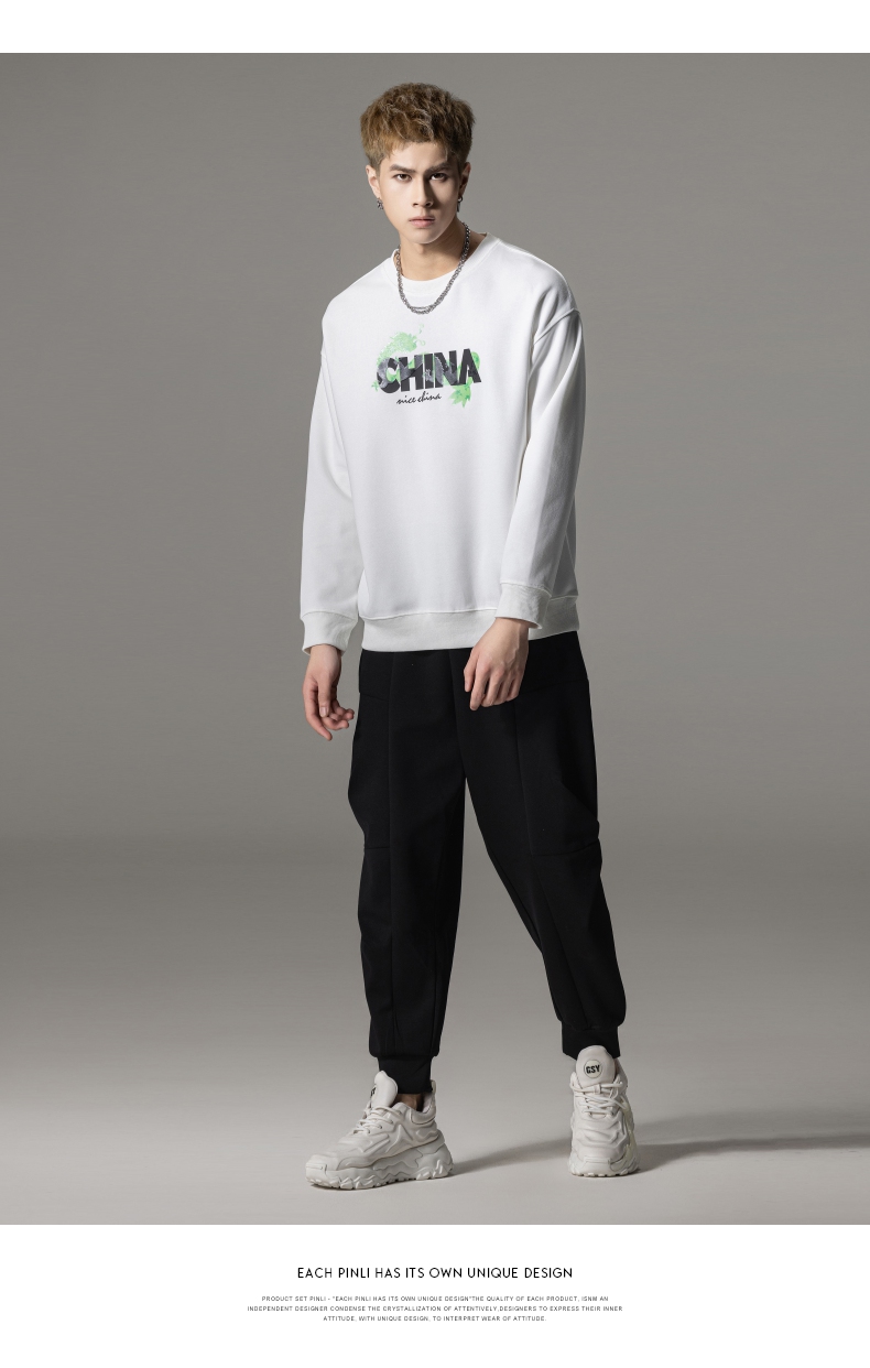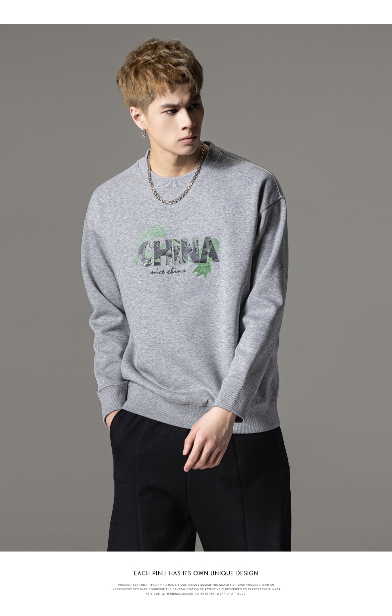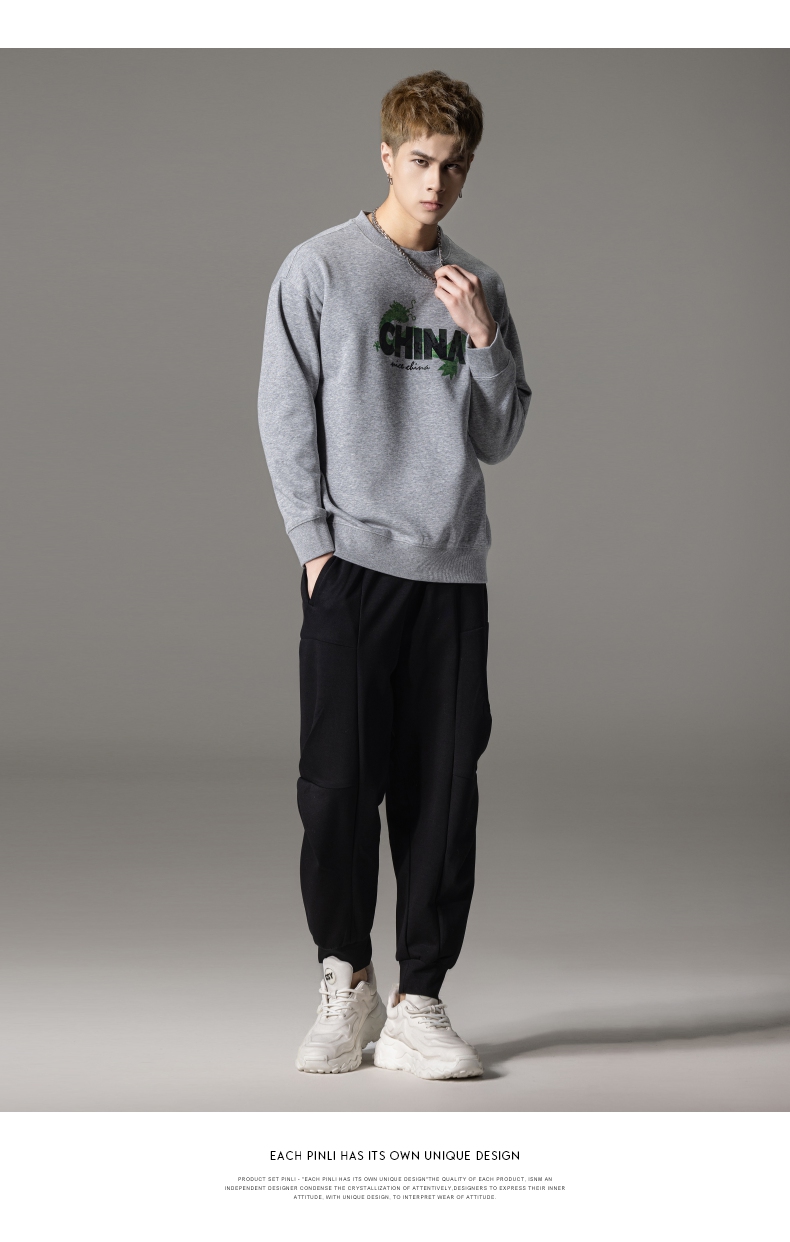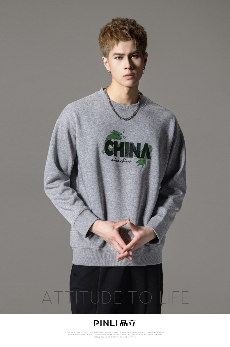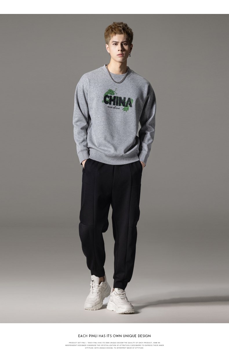 PINLI品立秋冬季新款男士圆领字母印花套头卫衣上衣BG233109041