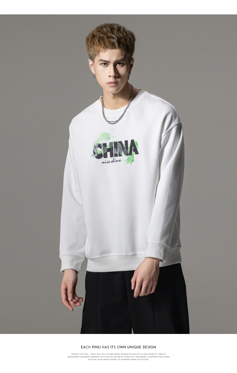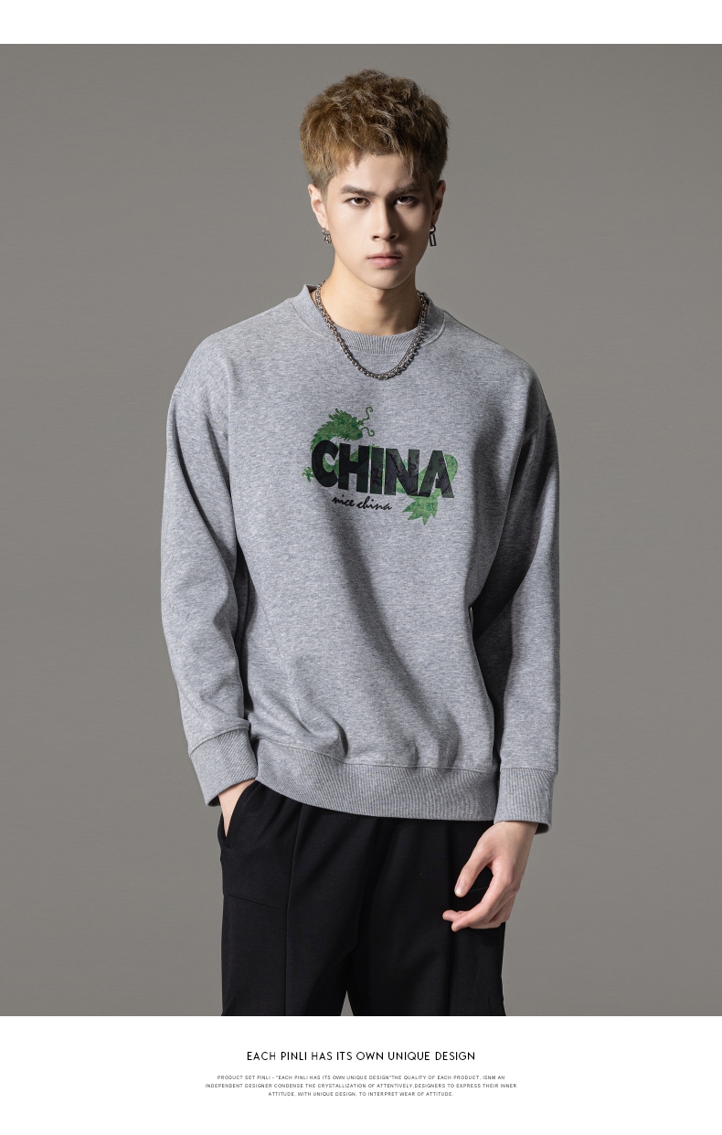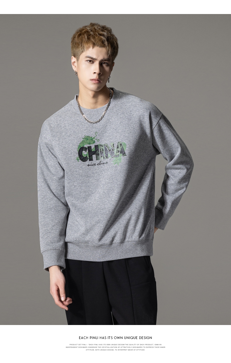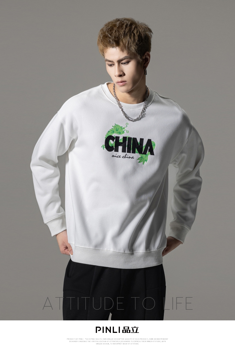 PINLI品立秋冬季新款男士圆领字母印花套头卫衣上衣BG233109041