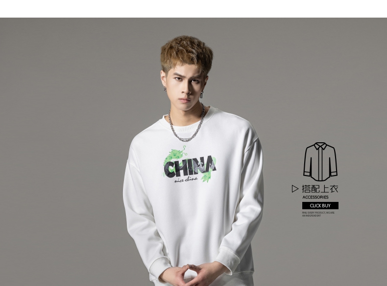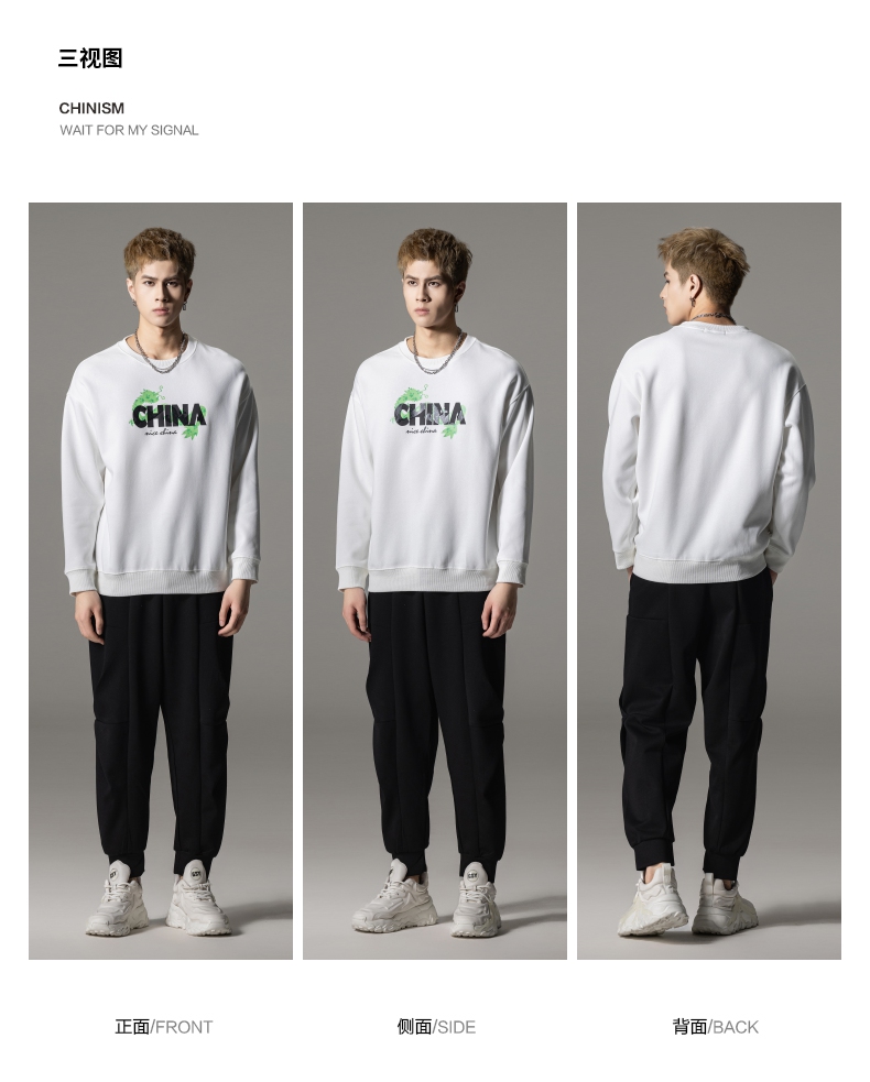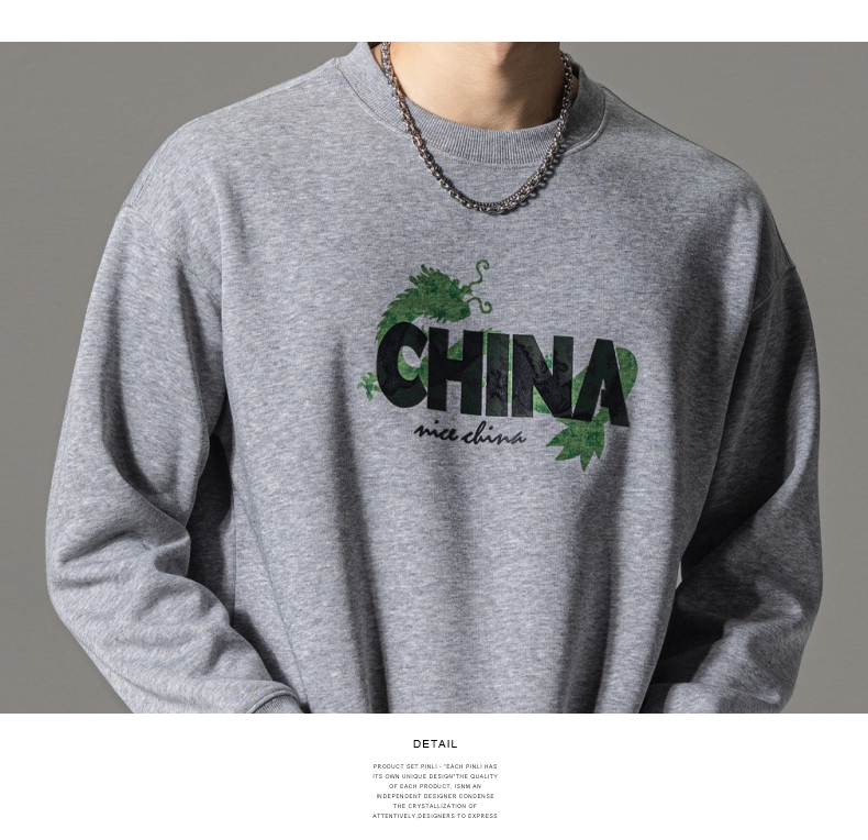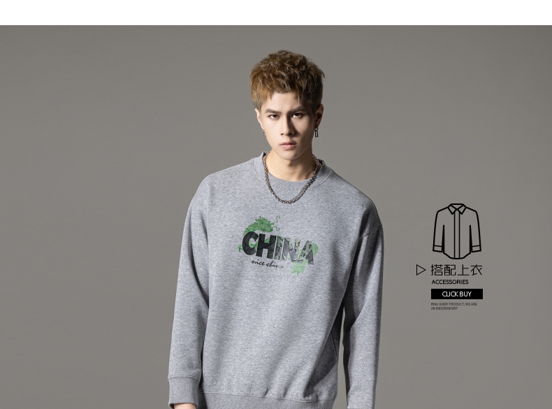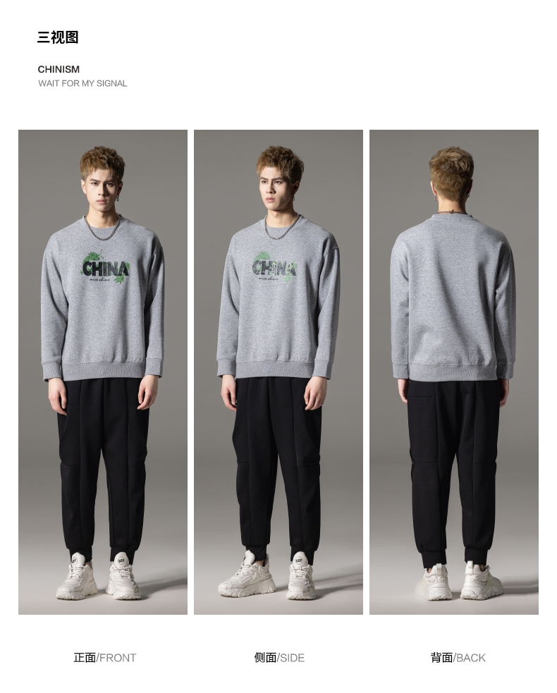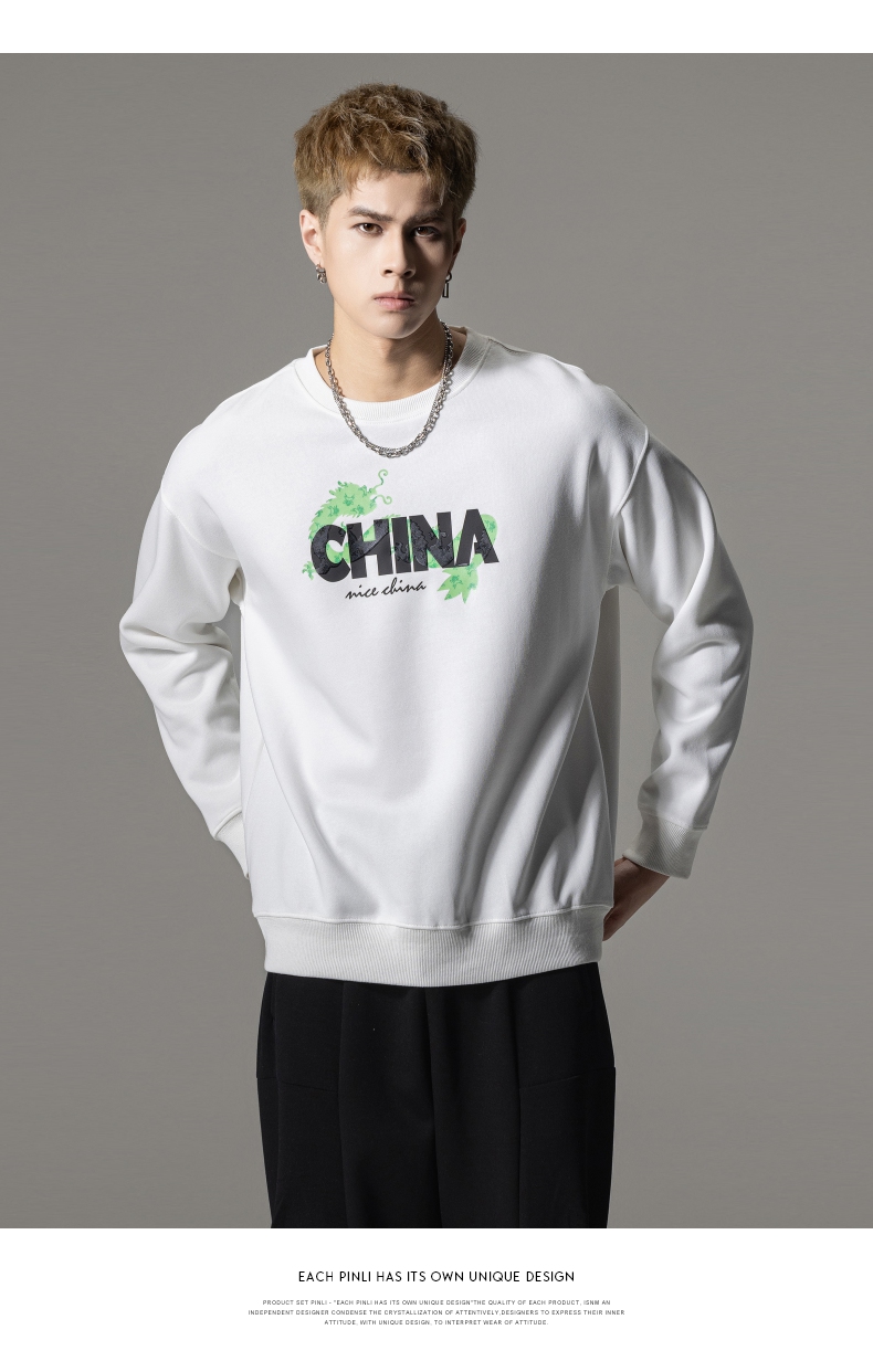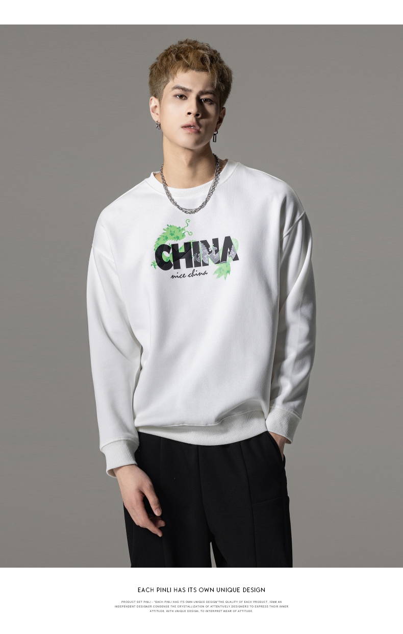 PINLI品立秋冬季新款男士圆领字母印花套头卫衣上衣BG233109041