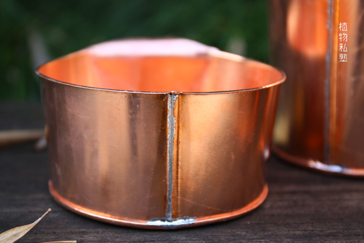 一张铜皮经过裁剪折叠勾缝捶打而成