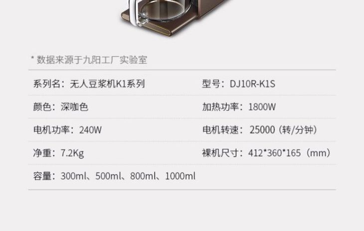 大多数中国女性都希望自己能有“分身术”,能有三头六臂,穿上工作服能在职场冲锋陷阵,换上家居服又能在家里相夫教子。渴望拥有上班好员工,下班好母亲的完美状态。如何平衡家庭和工作,做到内外兼顾?平衡的一步,从每天早上一顿健康的早餐开始。兼顾实用性与颜值的K家族,可以说每一款都让人印象深刻。这款K1S无人豆浆机,静音研磨,工作分贝不超过65,咖啡、即饮水;300-1000ML容量可选,三合一体;一级破壁;双轨加热;热烘除菌;一键操控。