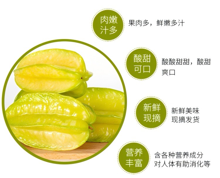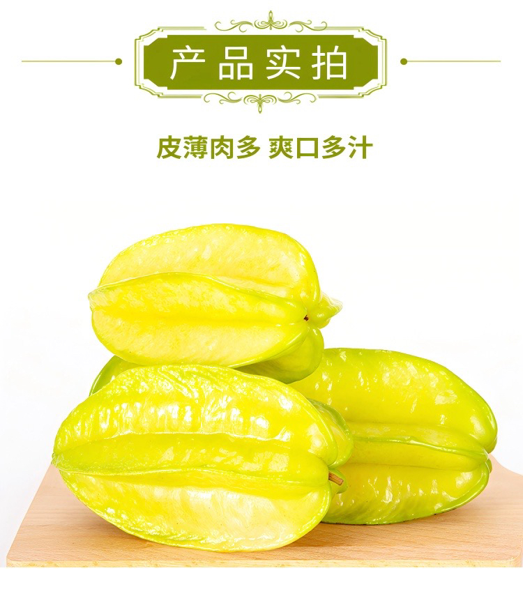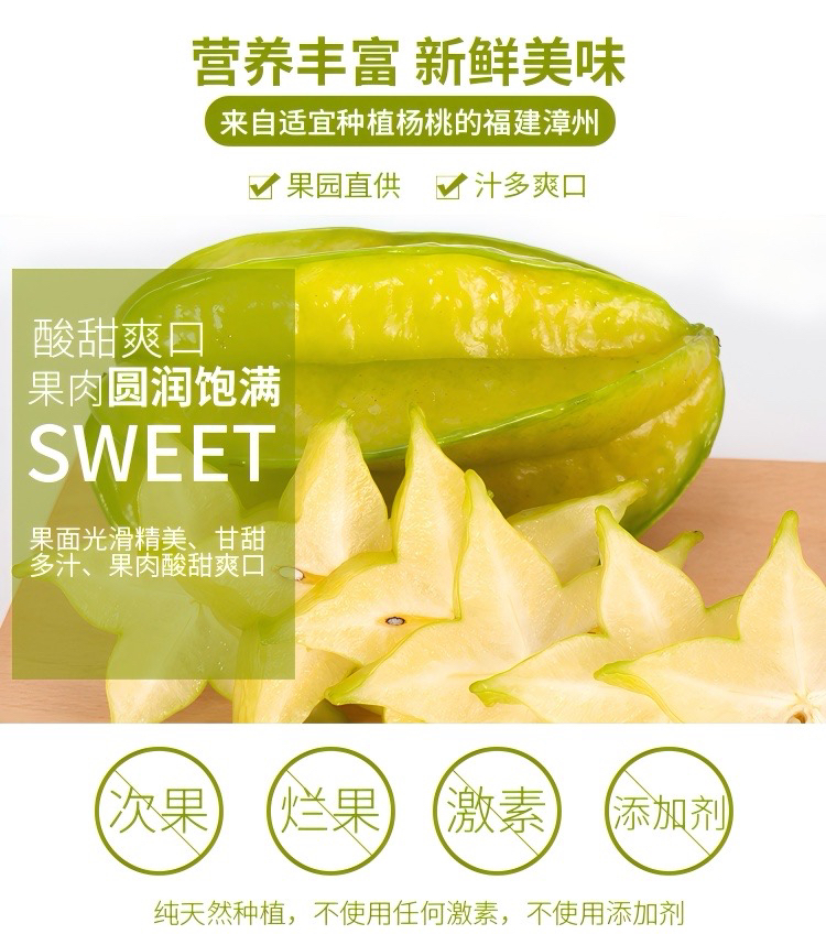 【下单后48小时左右发货】福建漳州软枝树上熟杨桃 3斤左右 约6-8个 清甜可口 水分足 鲜嫩多汁 ,纤维少、果脆汁多、甜酸可口、芳香清甜