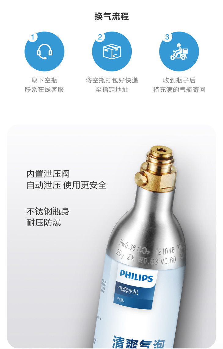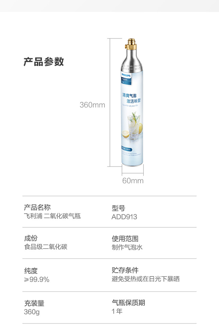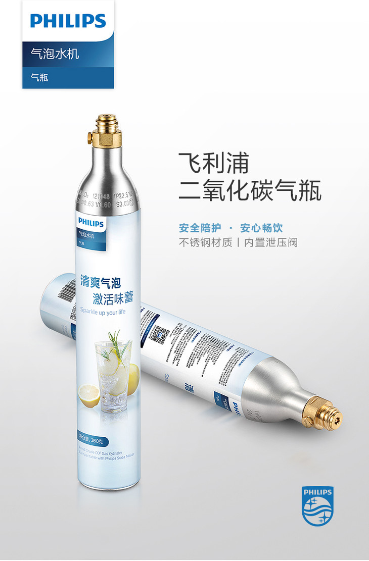 飞利浦(PHILIPS)苏打水机气泡水机食品级二氧化碳通用充气瓶ADD913