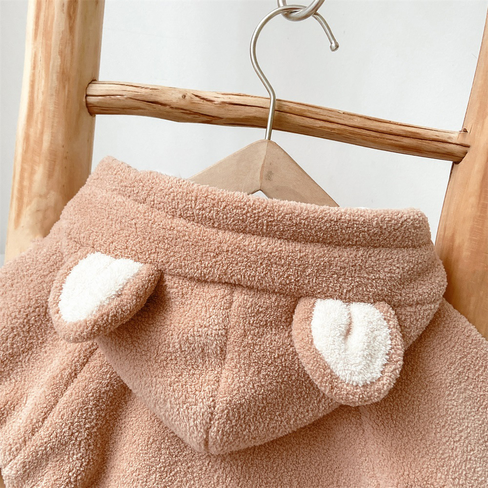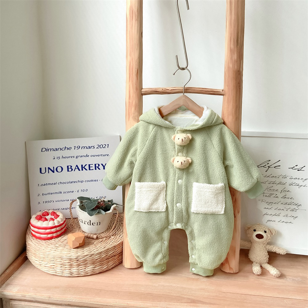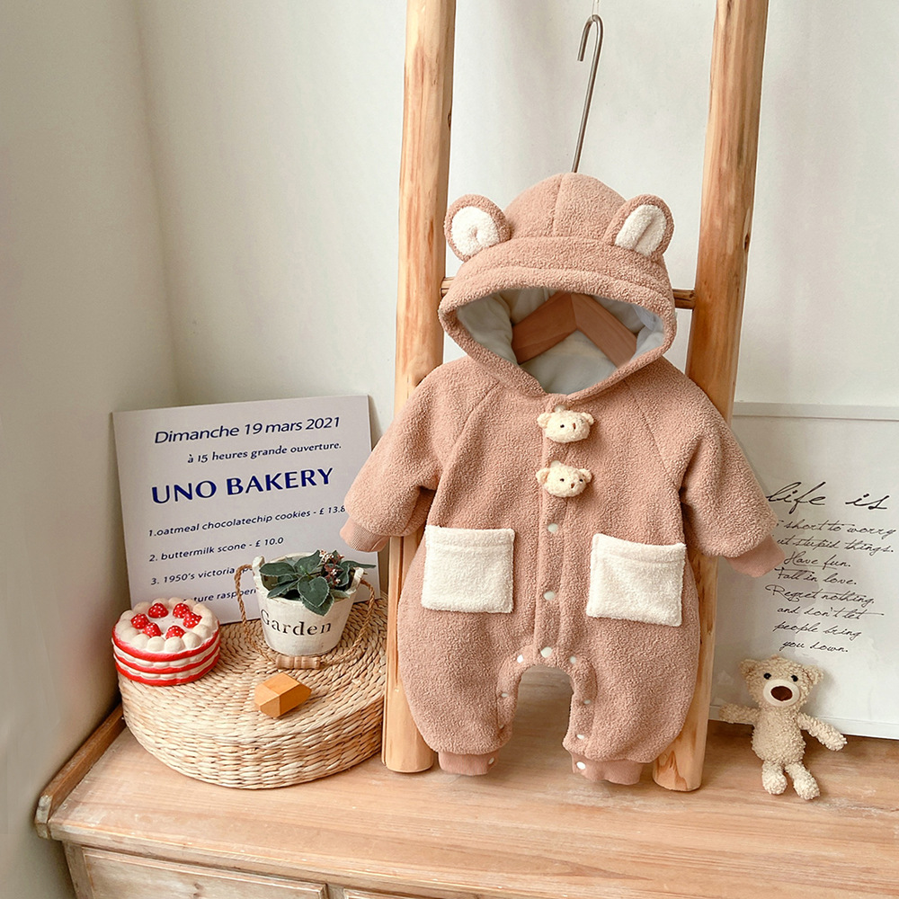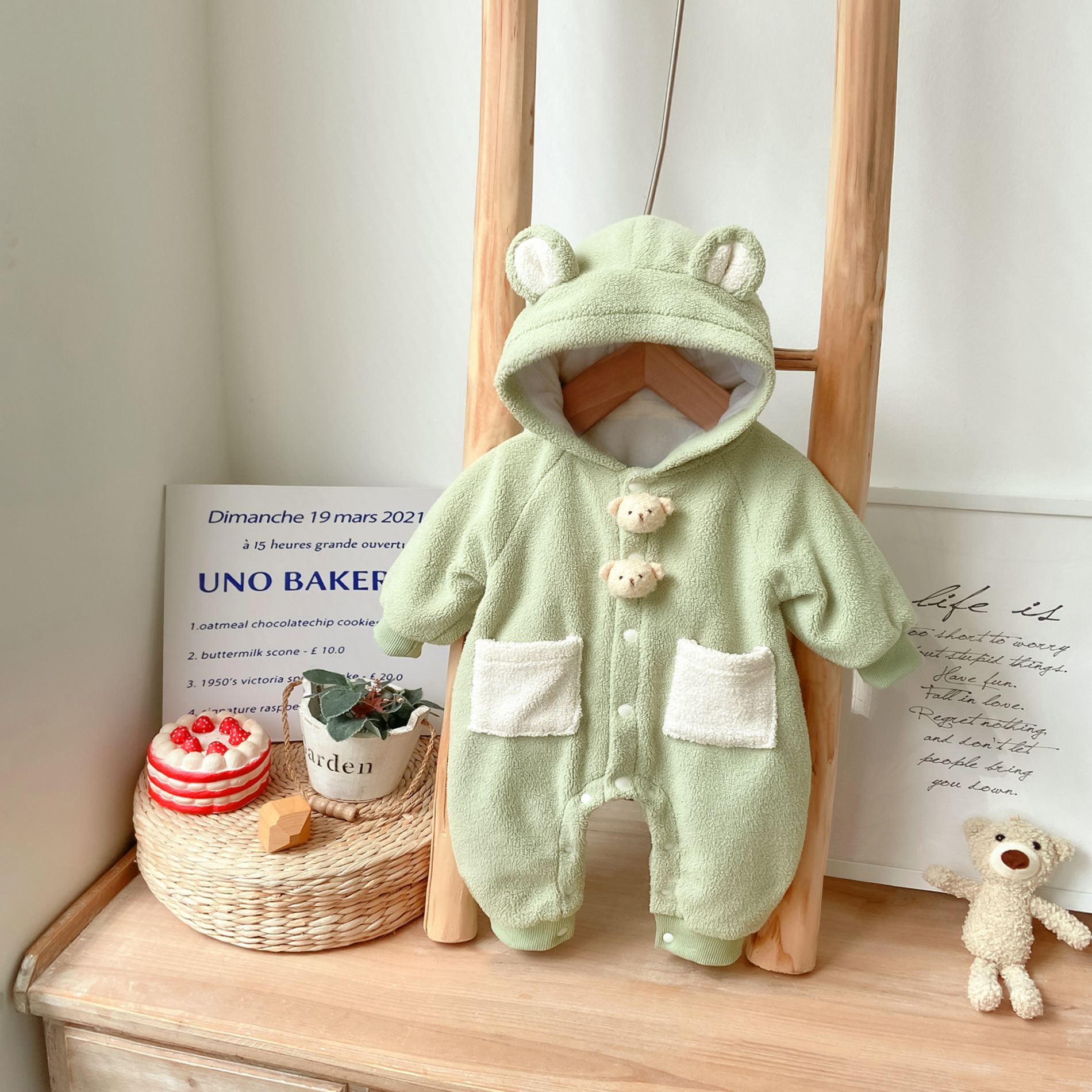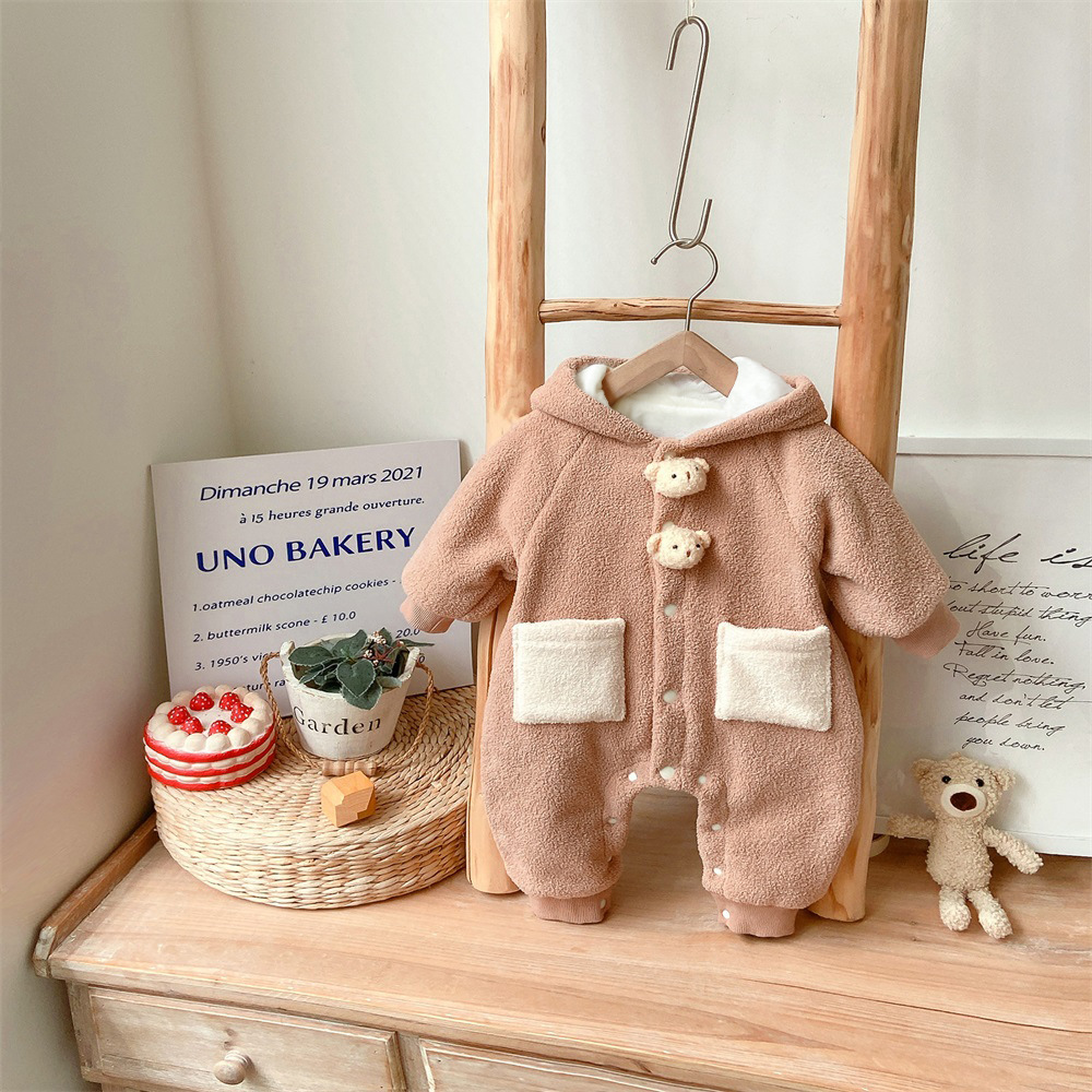 【摇粒绒小熊哈衣】初冬款宝宝连体衣新生儿加绒爬爬婴幼儿保暖外出服
