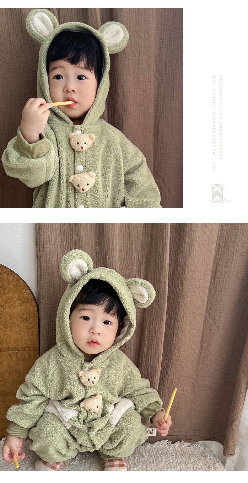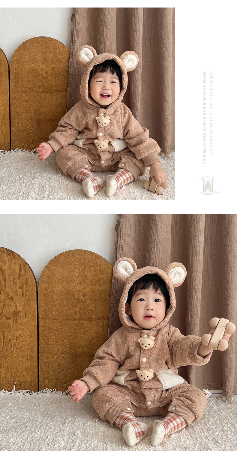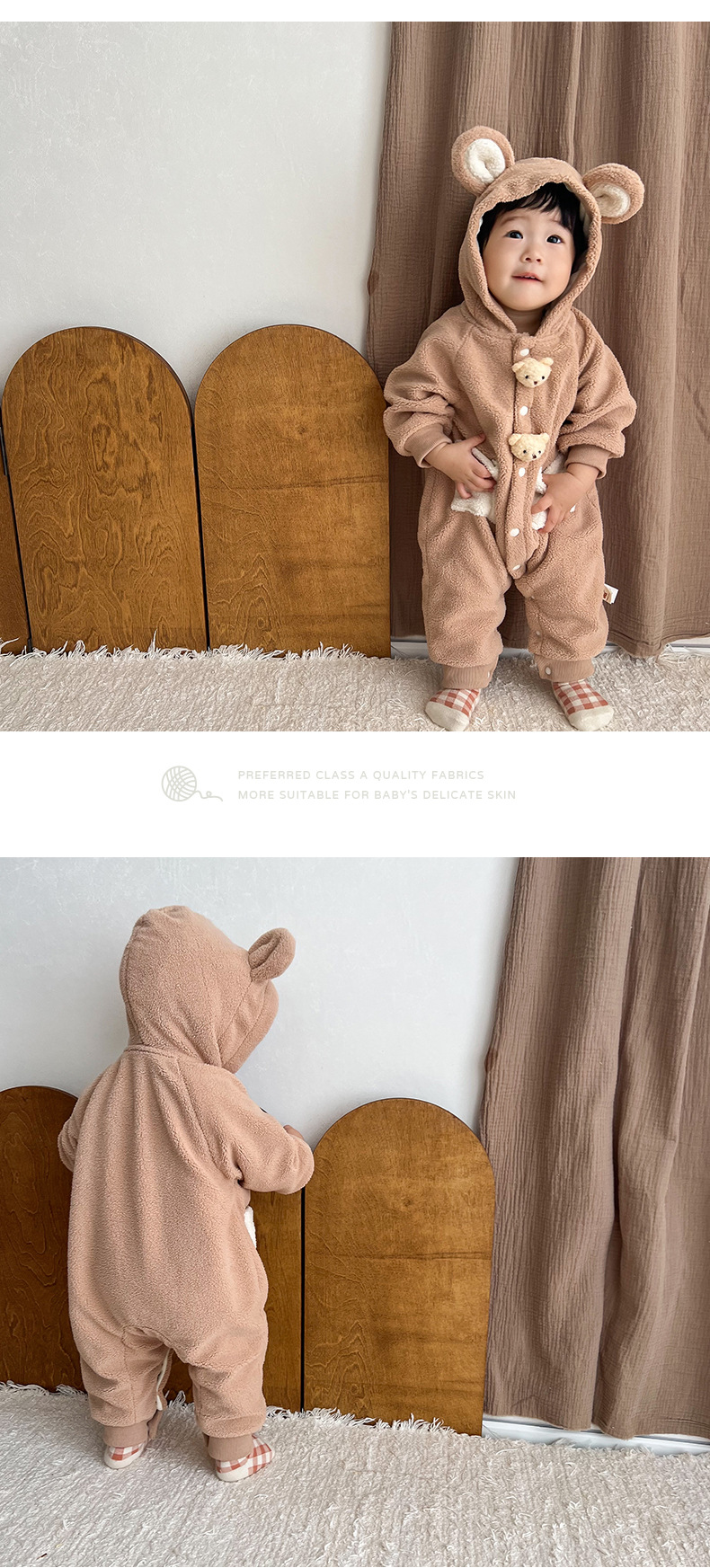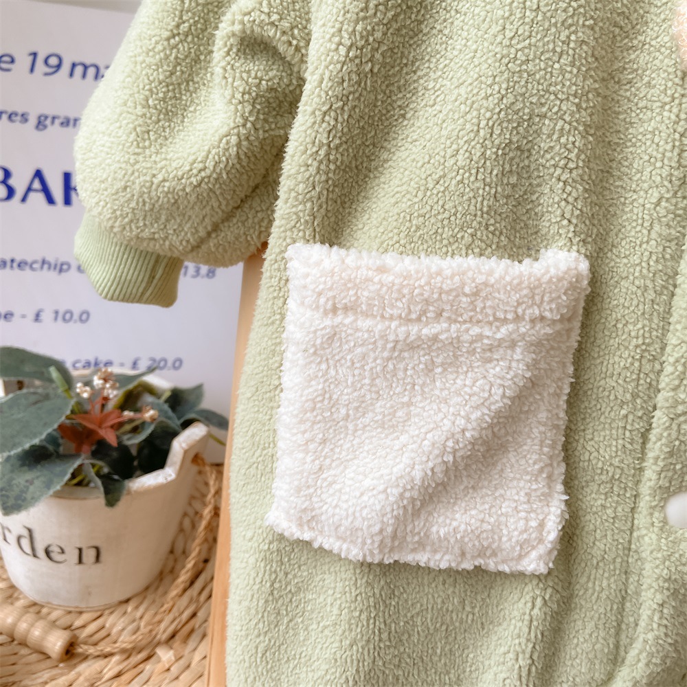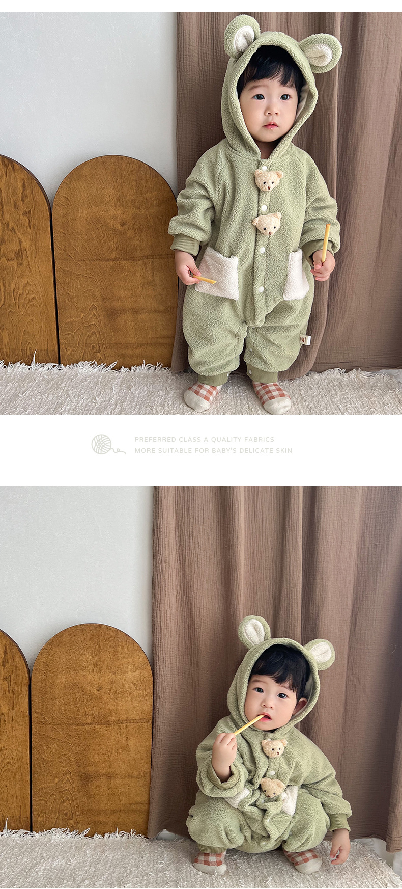 【摇粒绒小熊哈衣】初冬款宝宝连体衣新生儿加绒爬爬婴幼儿保暖外出服