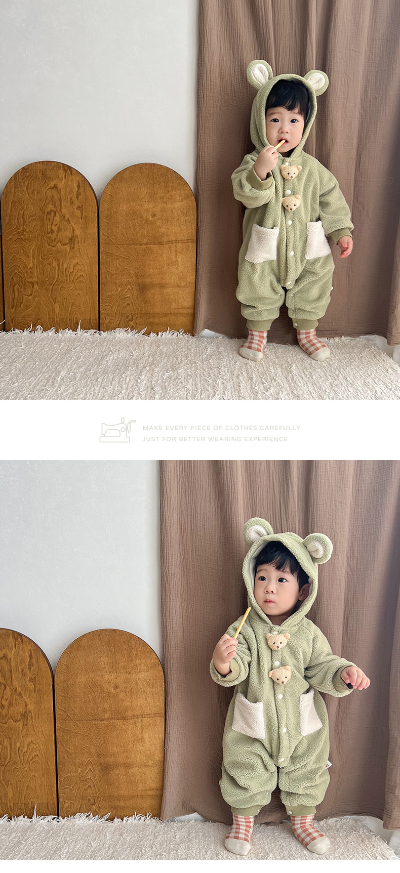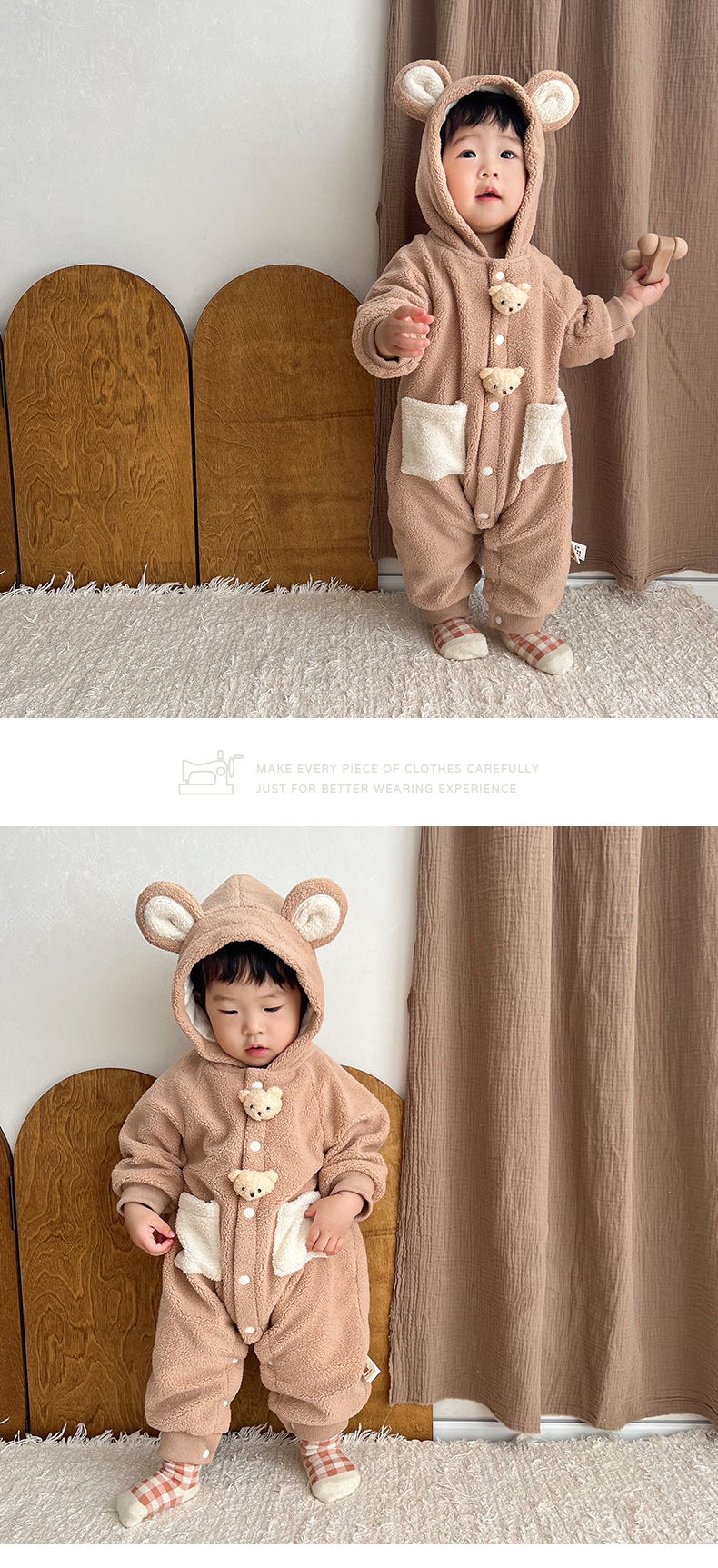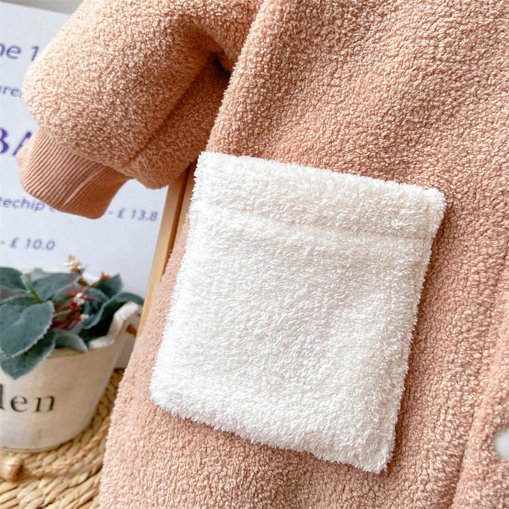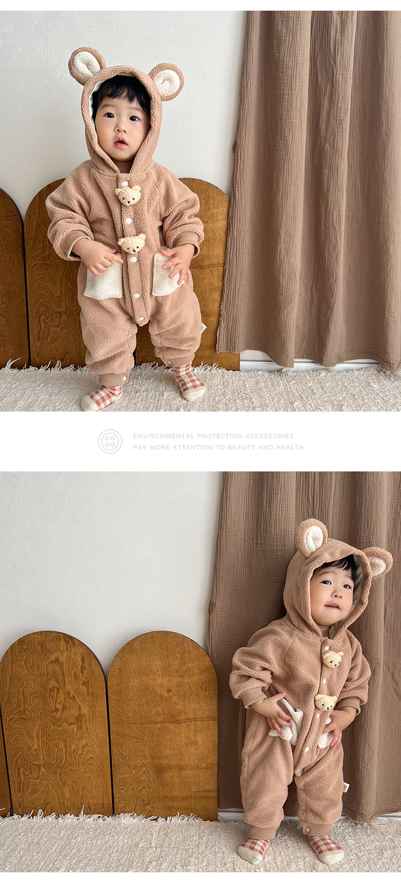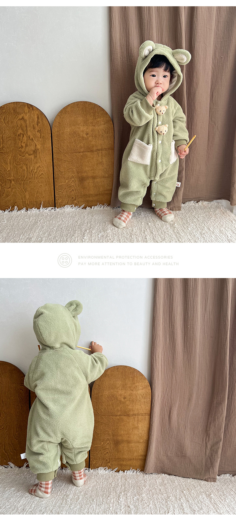 【摇粒绒小熊哈衣】初冬款宝宝连体衣新生儿加绒爬爬婴幼儿保暖外出服