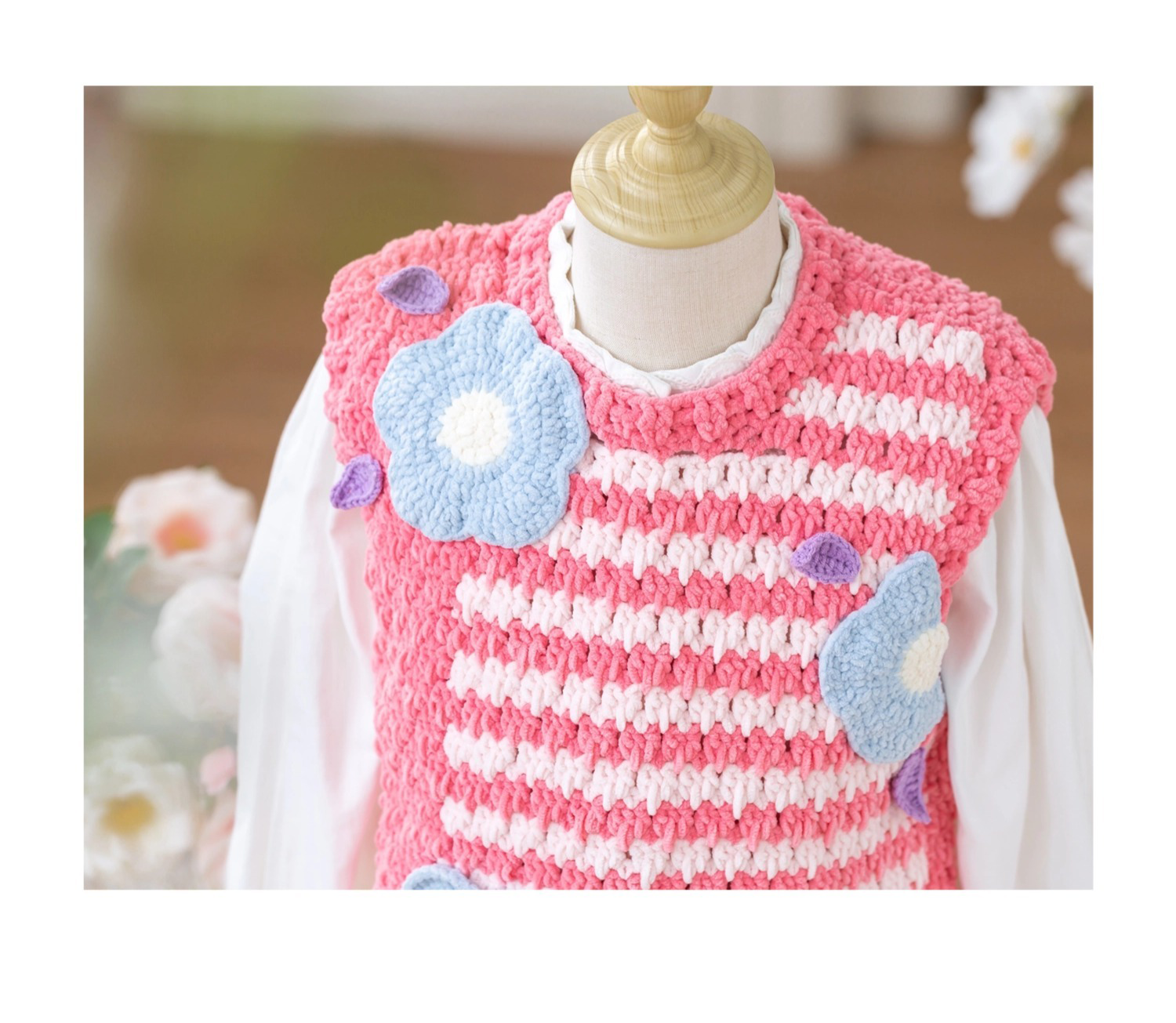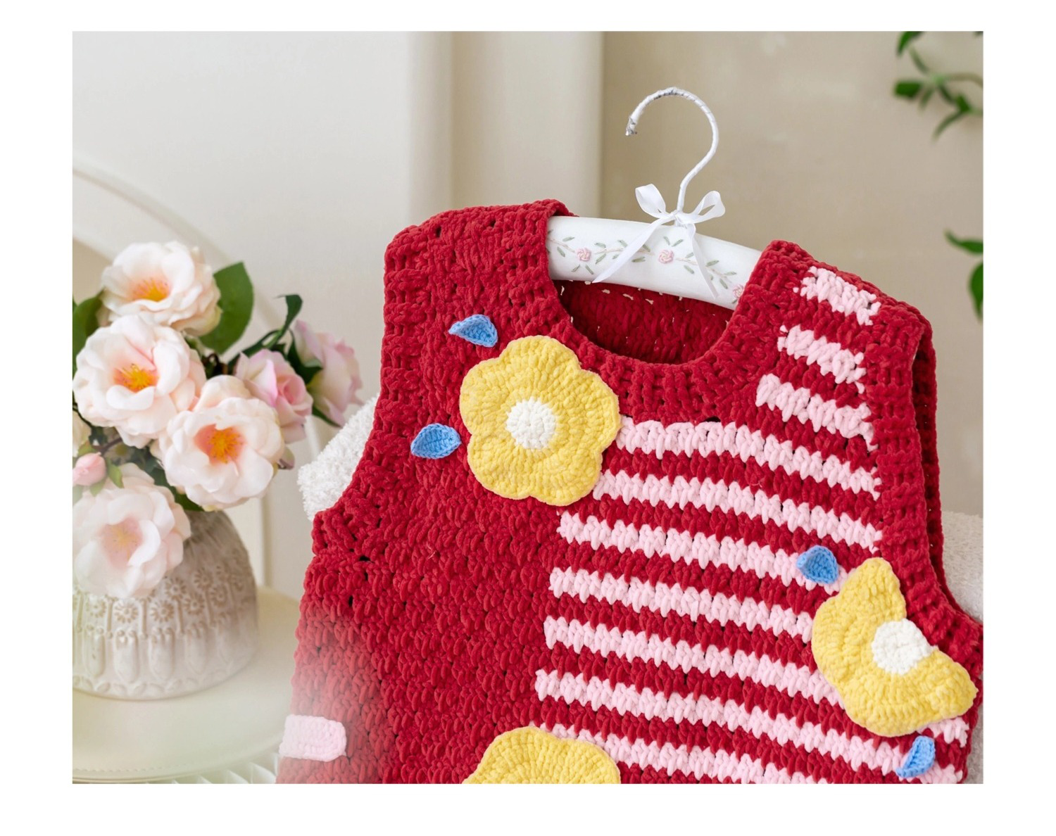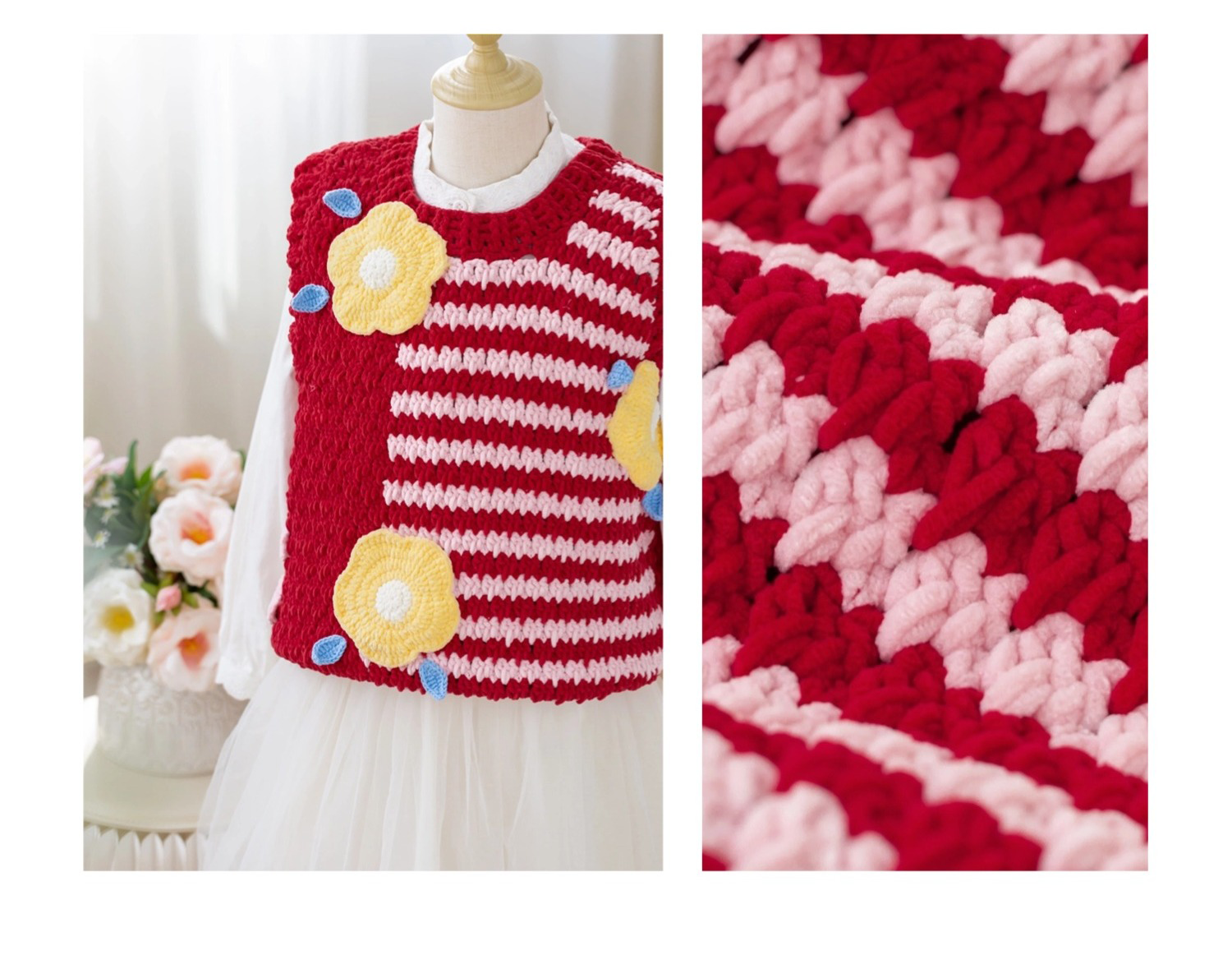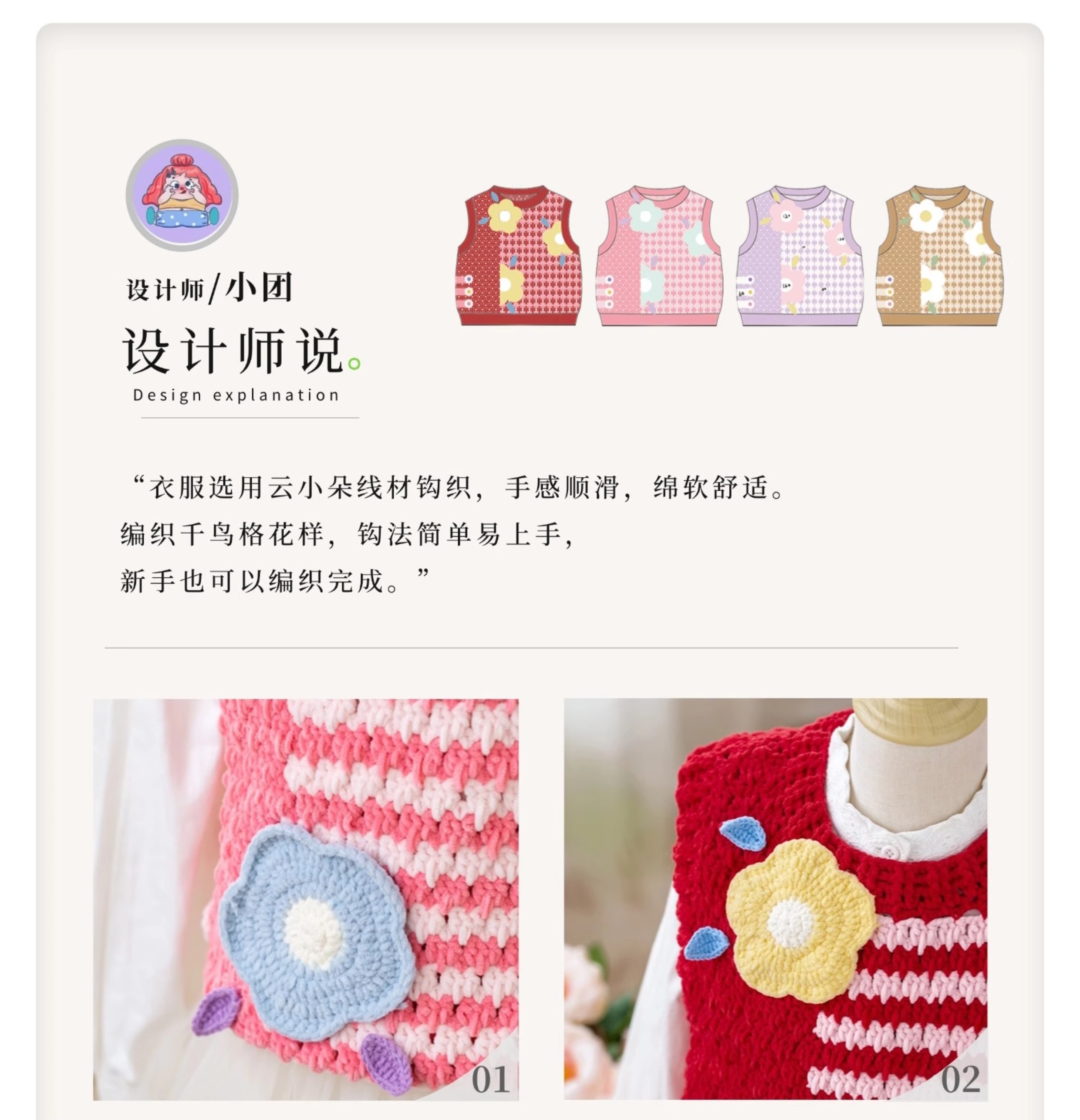 苏苏姐家千鸟格花朵背心手工diy编织钩针毛线团自制背心材料包