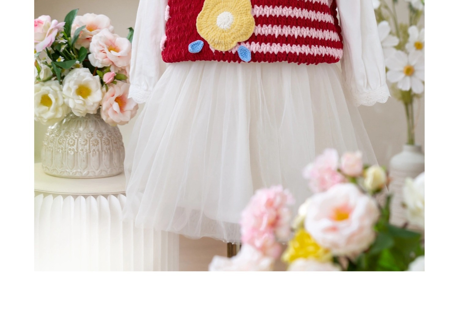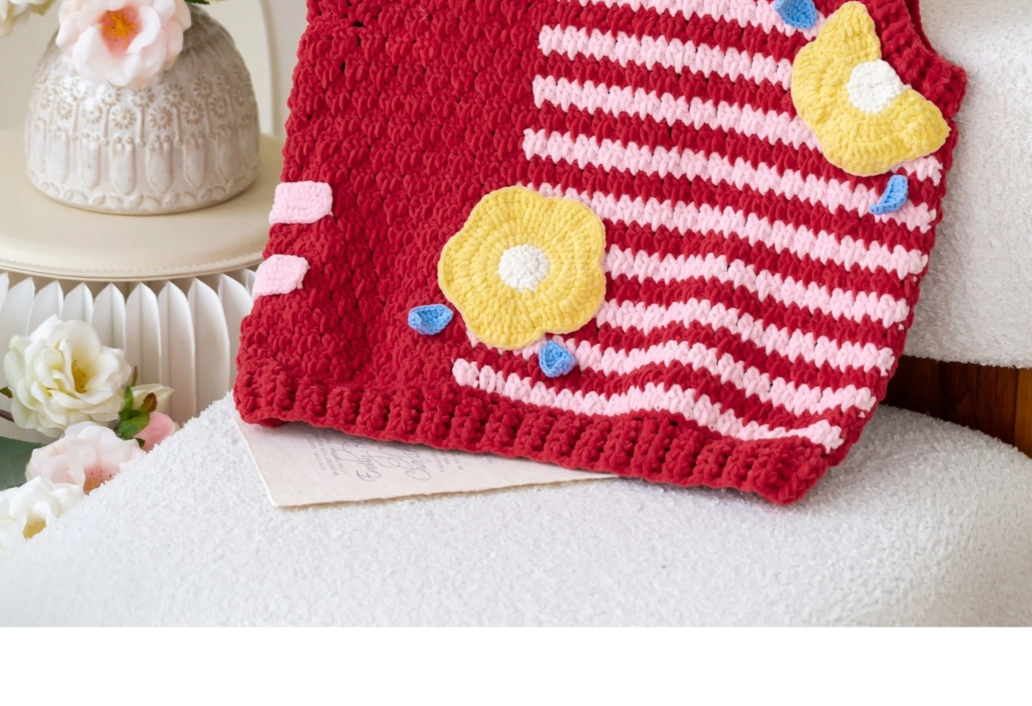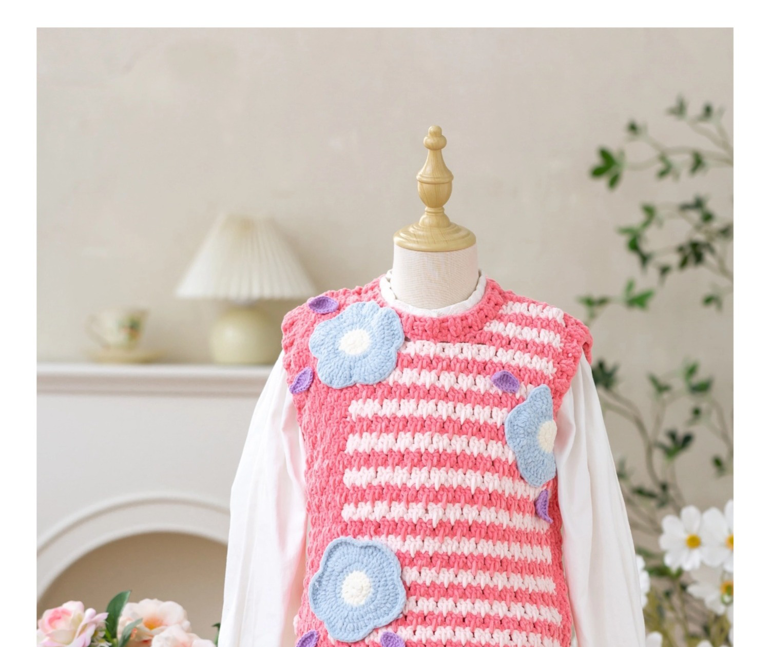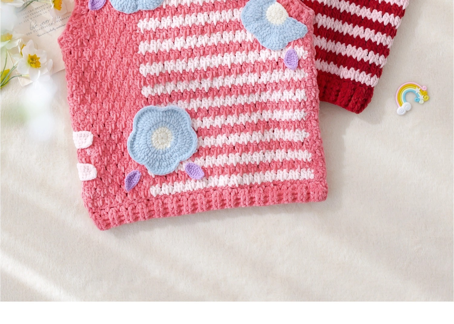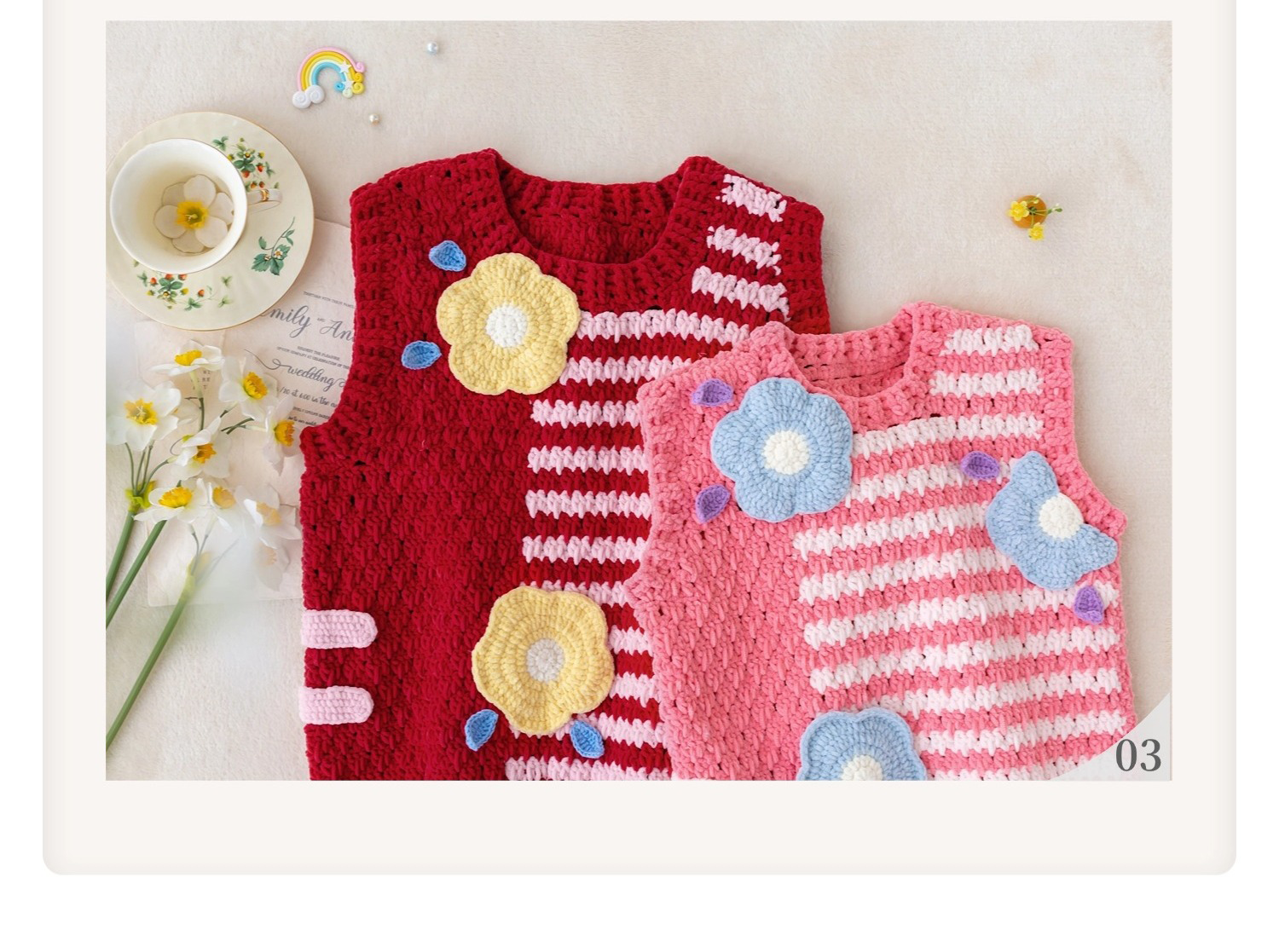 苏苏姐家千鸟格花朵背心手工diy编织钩针毛线团自制背心材料包
