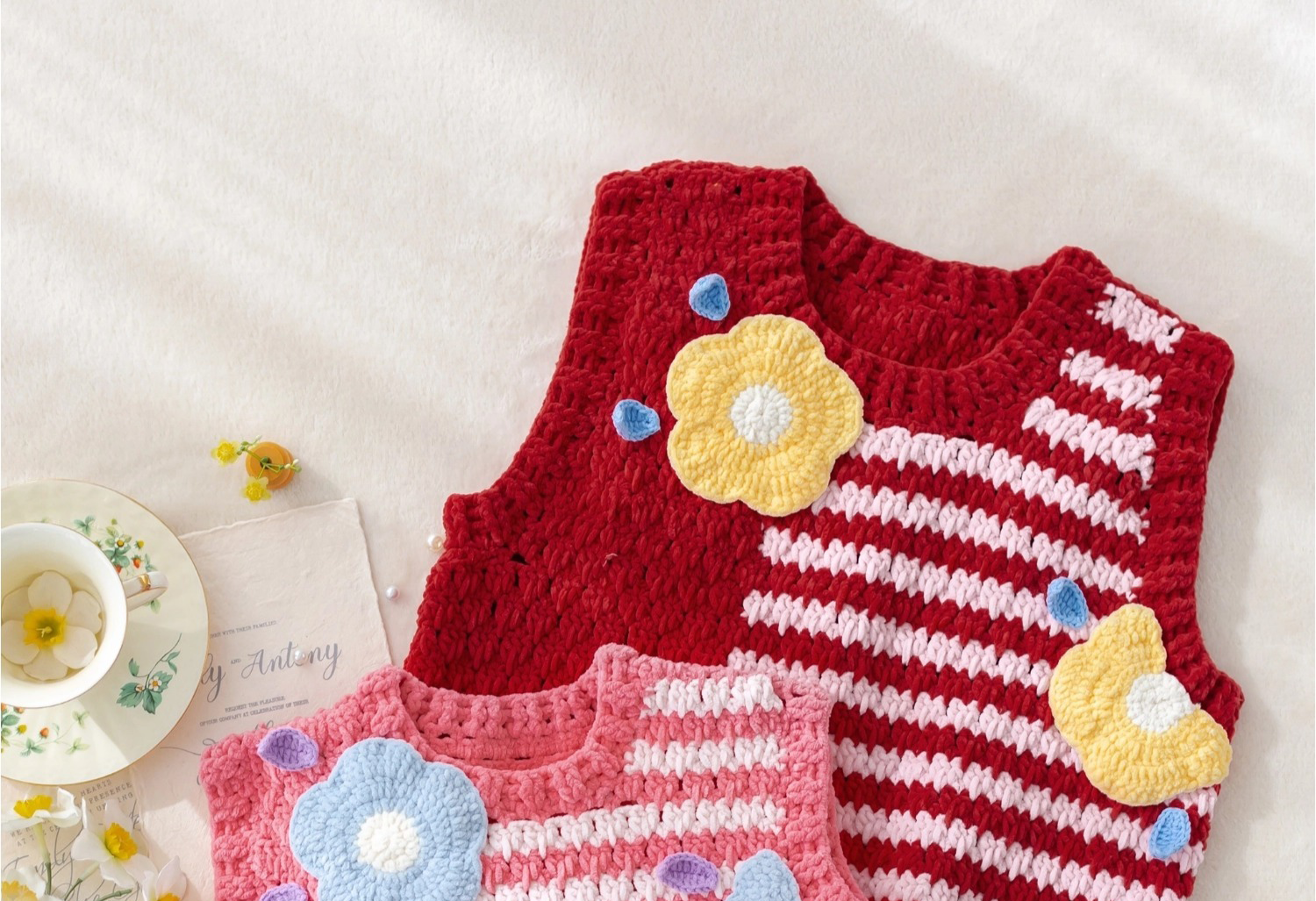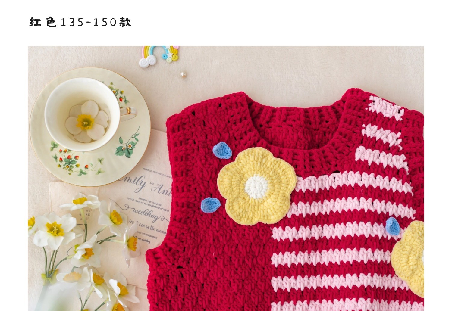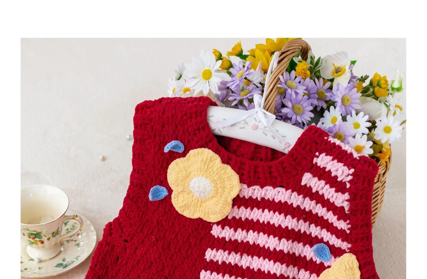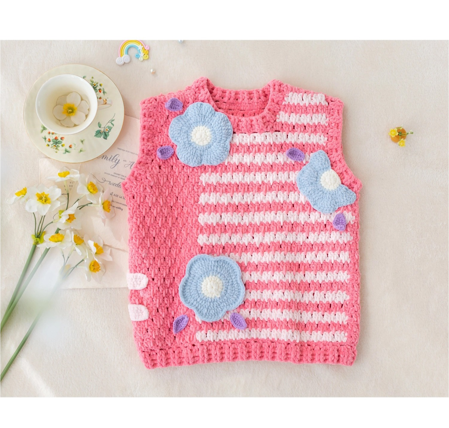 苏苏姐家千鸟格花朵背心手工diy编织钩针毛线团自制背心材料包