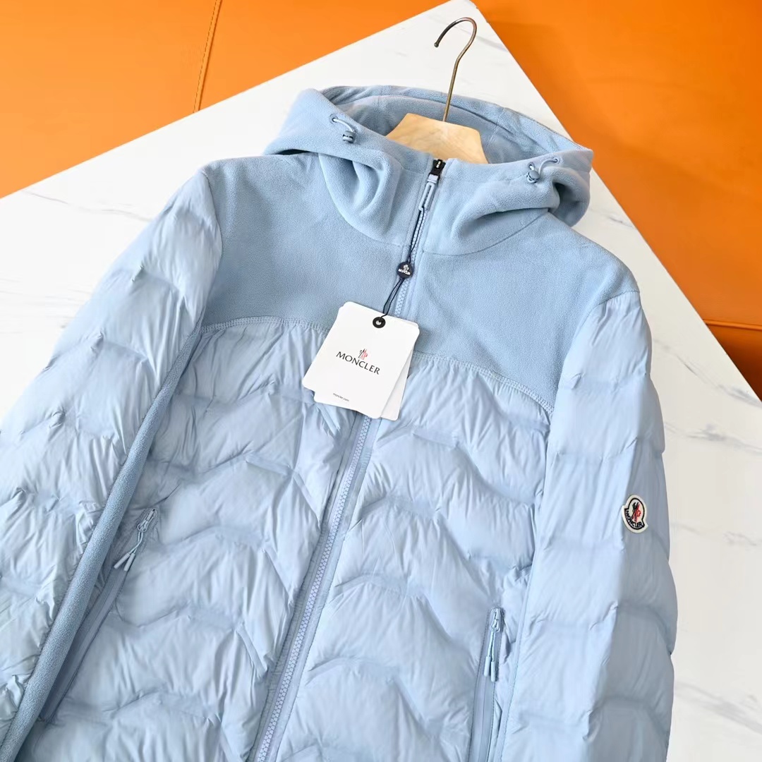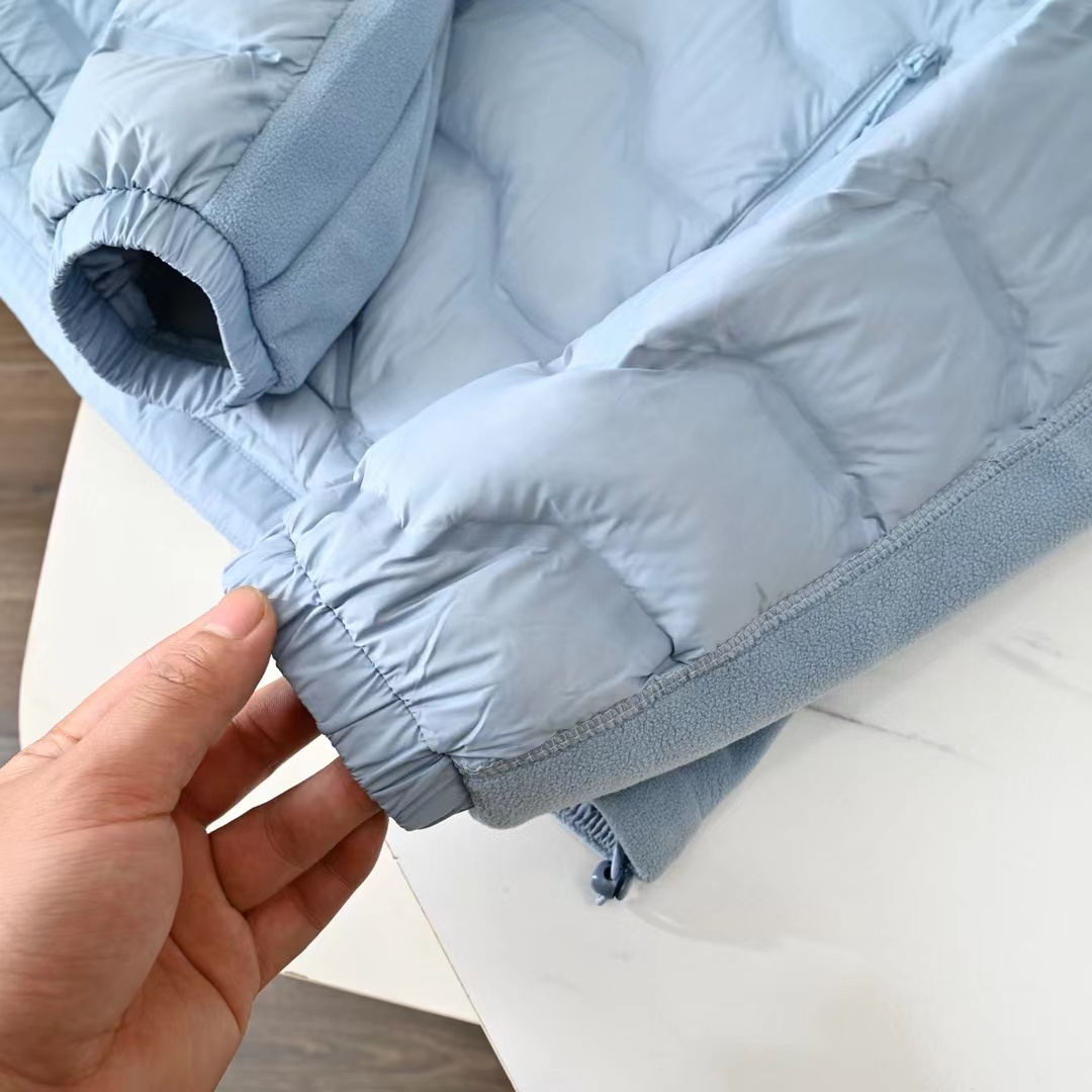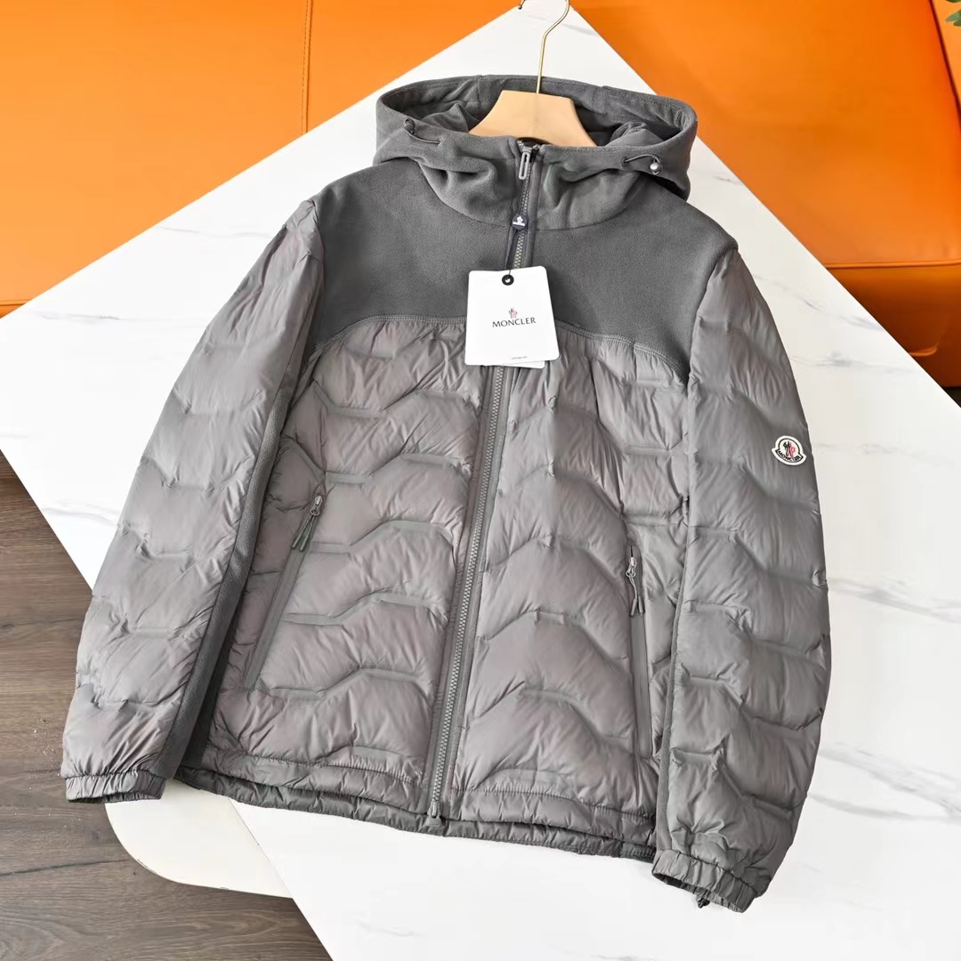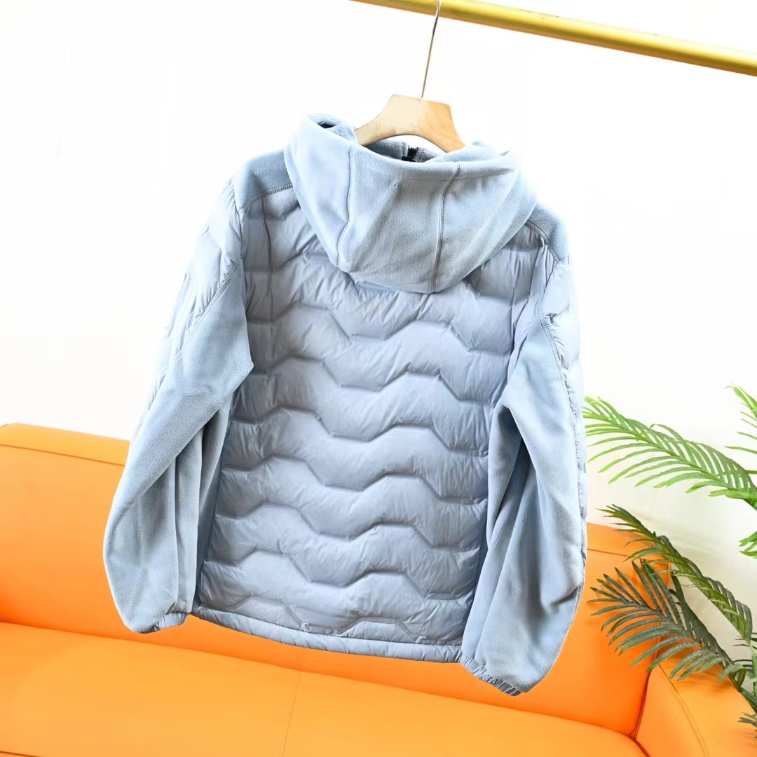 25ss冬季新款摇粒绒拼接轻薄连帽羽绒服!日常休闲 随意搭配 都是无可挑剔,送人自留!都非常有面精典款式 百搭而不会过时,款型简约而不简单,对于各种年龄段男士都能接受。立体修身裁剪,版型更加复合国人身材标准,袖臂精典logo点缀,精湛工艺打造,走线平稳整齐版本,为凸显上身立体效果,直线绗缝,醒目不张扬,低调有格调。 采优质羽绒填充 非常严格筛选加工的,蓬松度也非常好!一分不多一分不少!上身有型!不会显得臃肿。