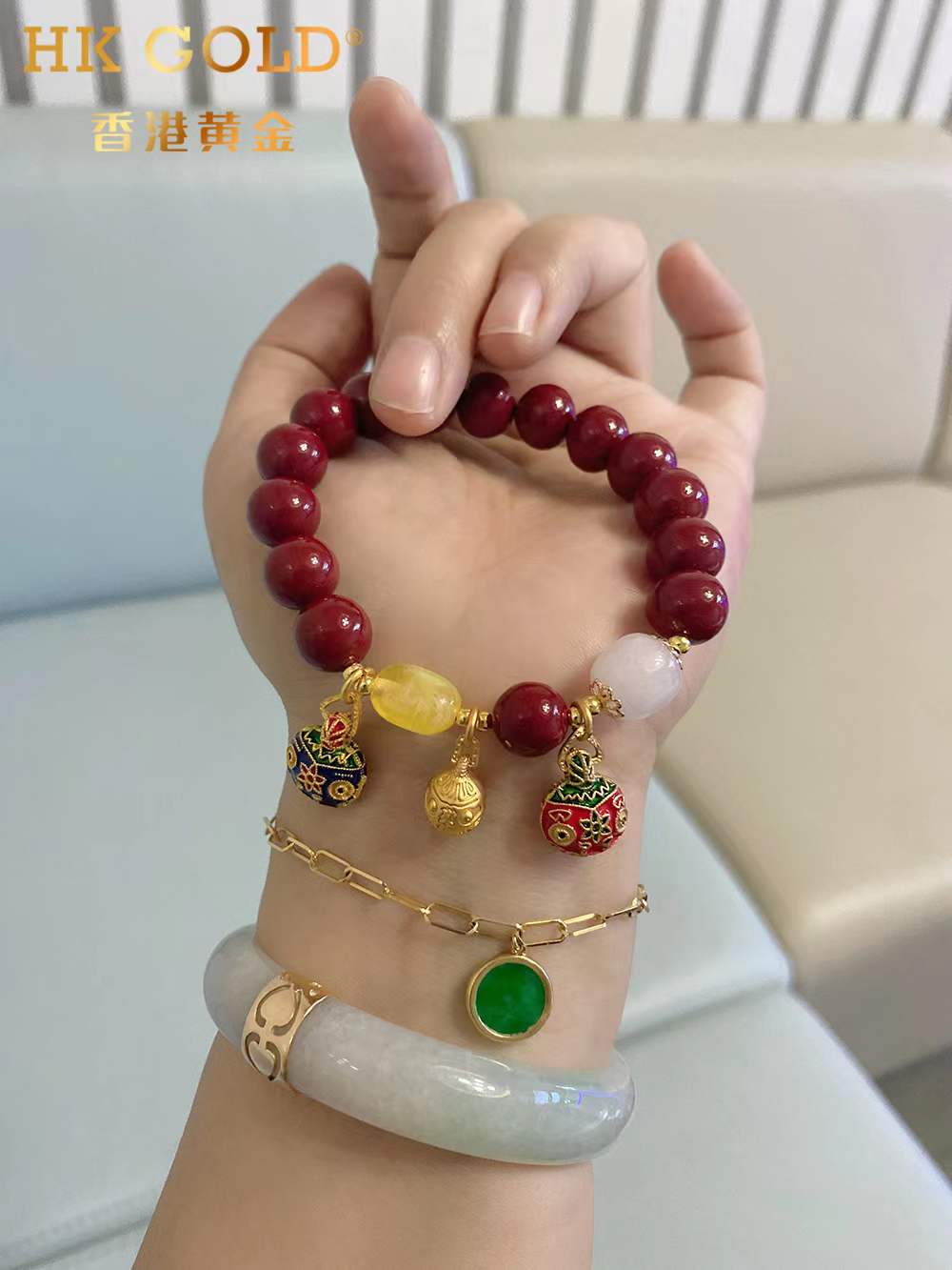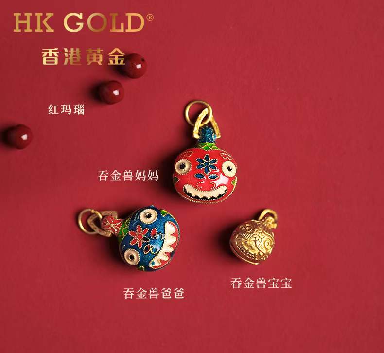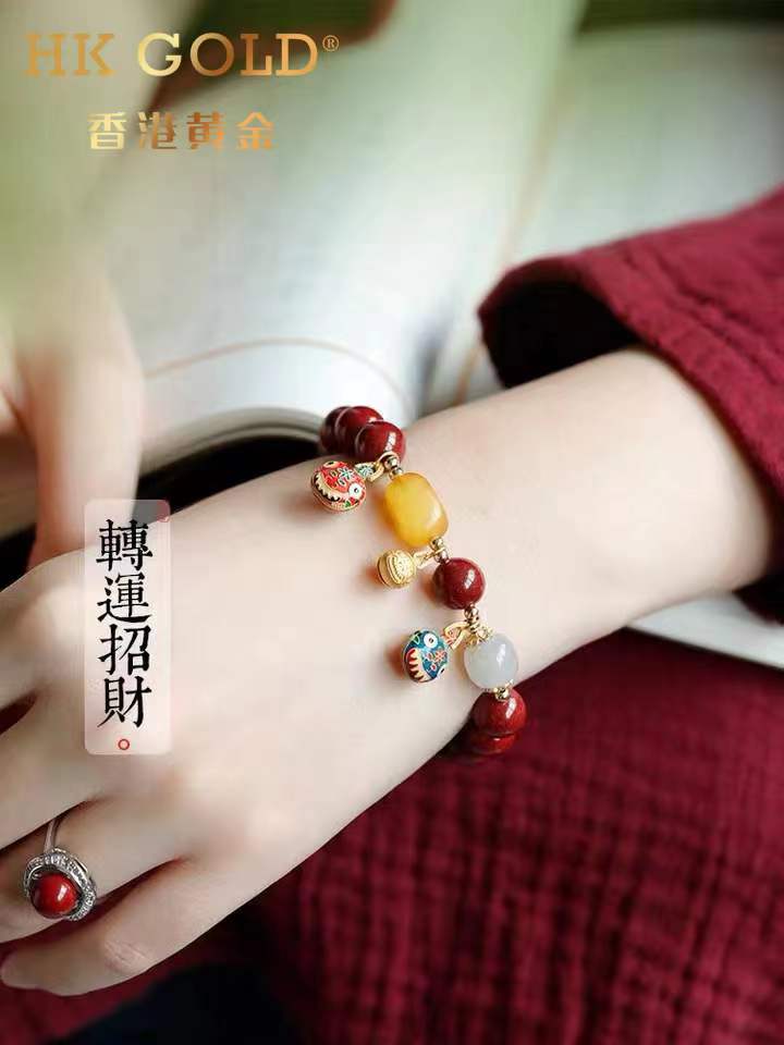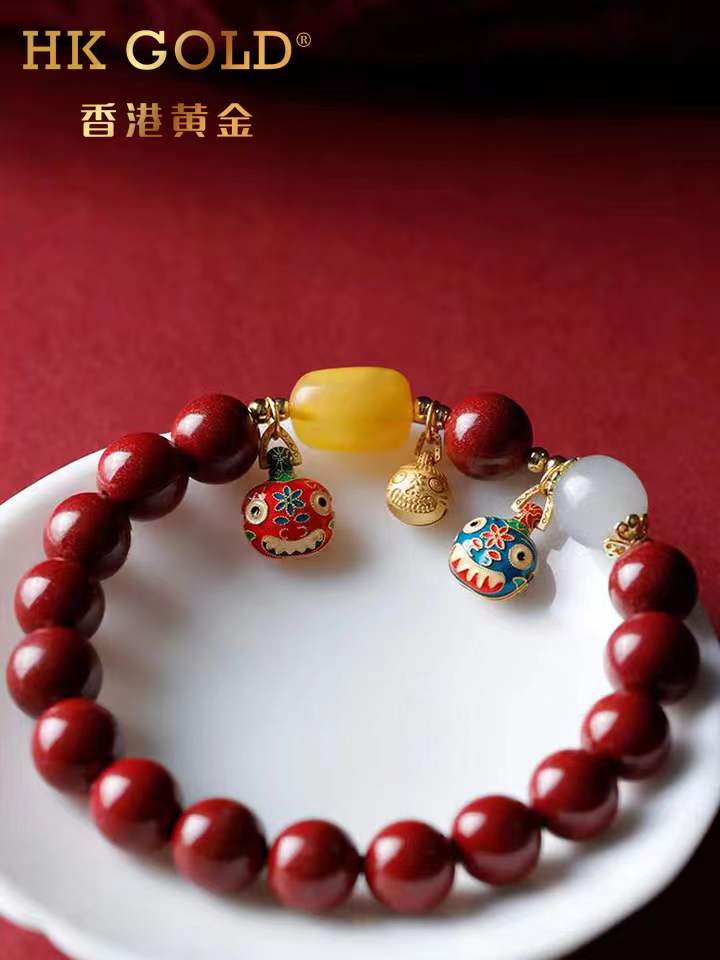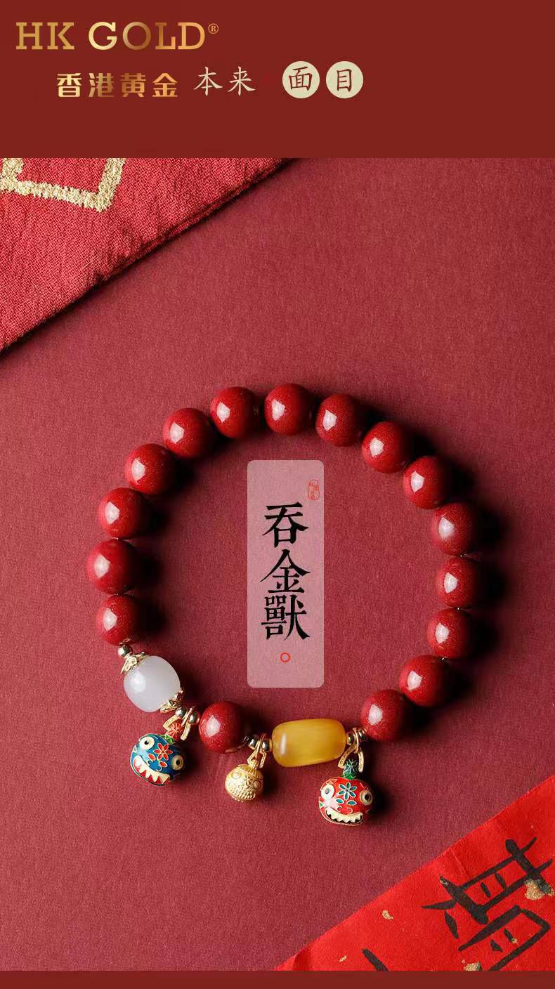 【预售15天】正品香港黄金『吞金兽一家三口朱砂手链』颜色丰富,色泽温润,触感细腻,华而不炫,贵而不显 10mm转运珠💯🔥古法铜鎏金吞金兽超级加持!!