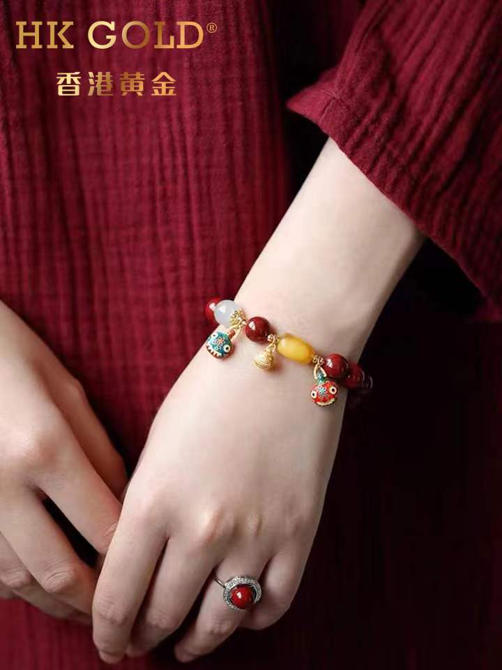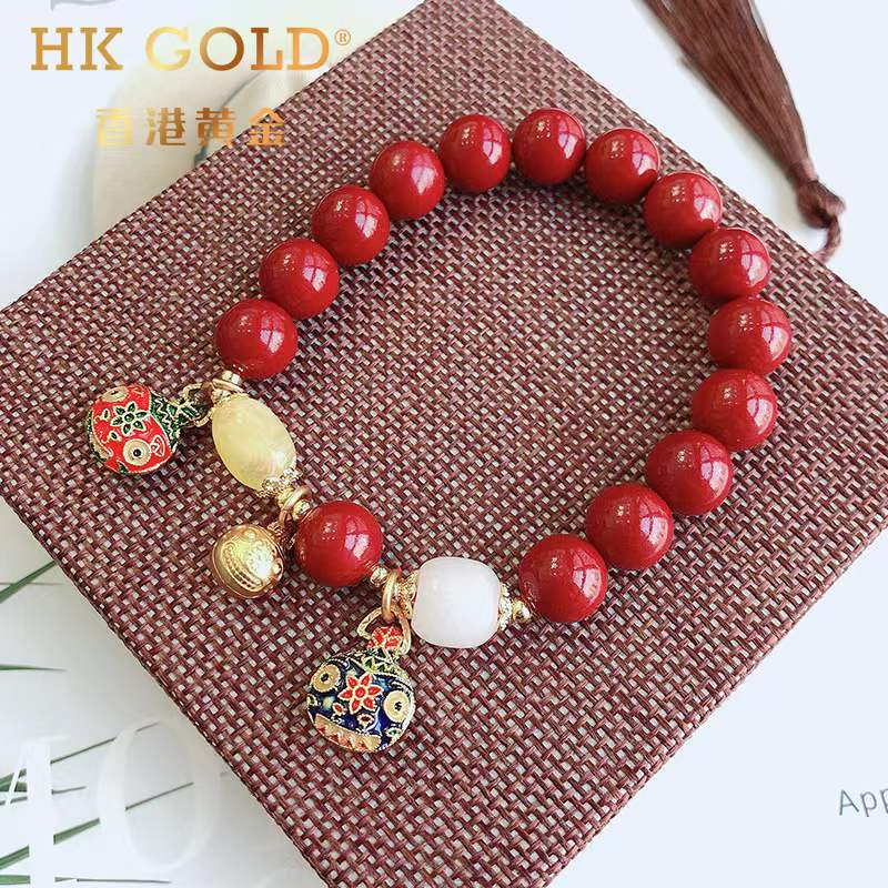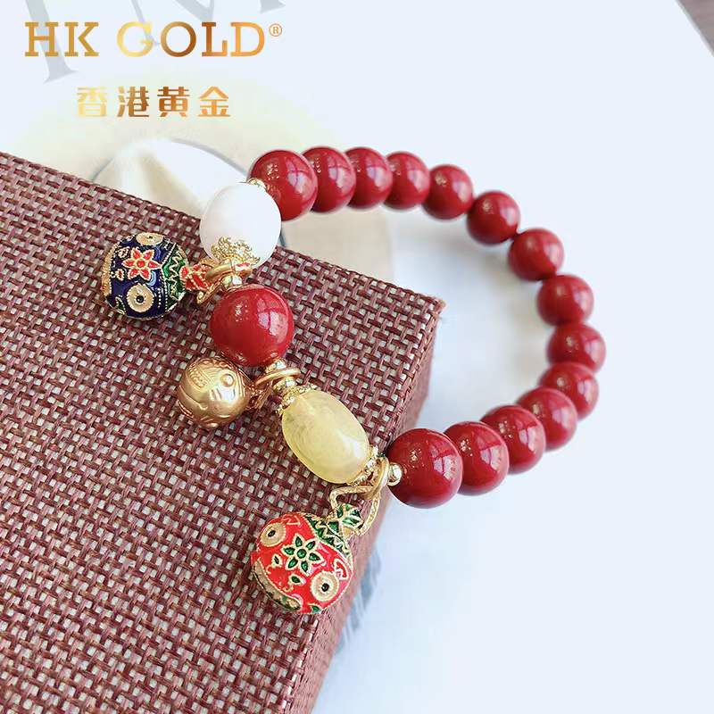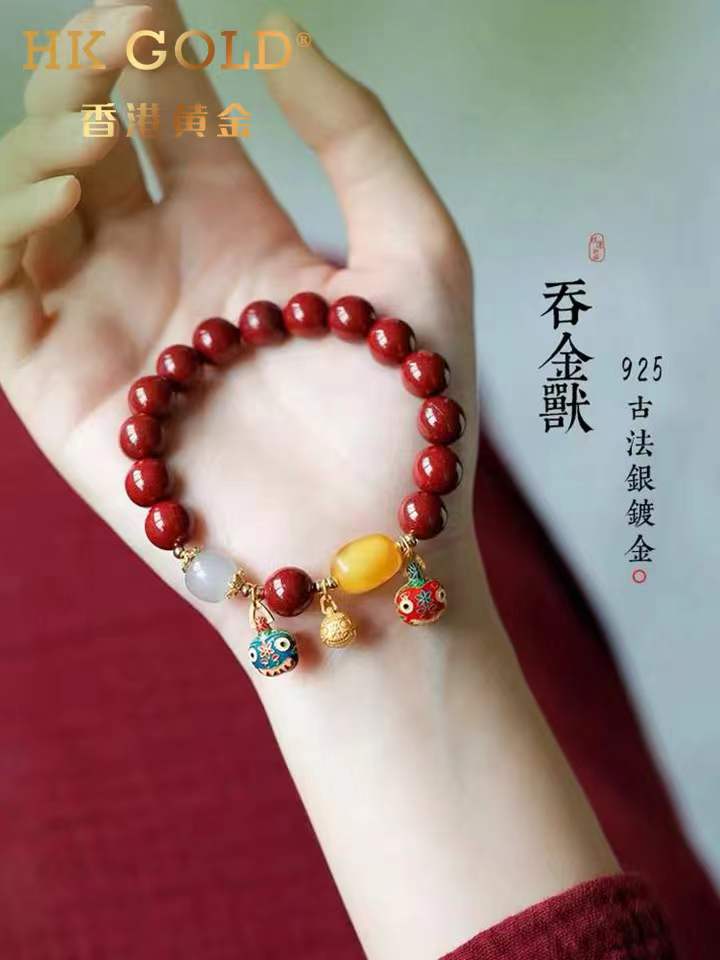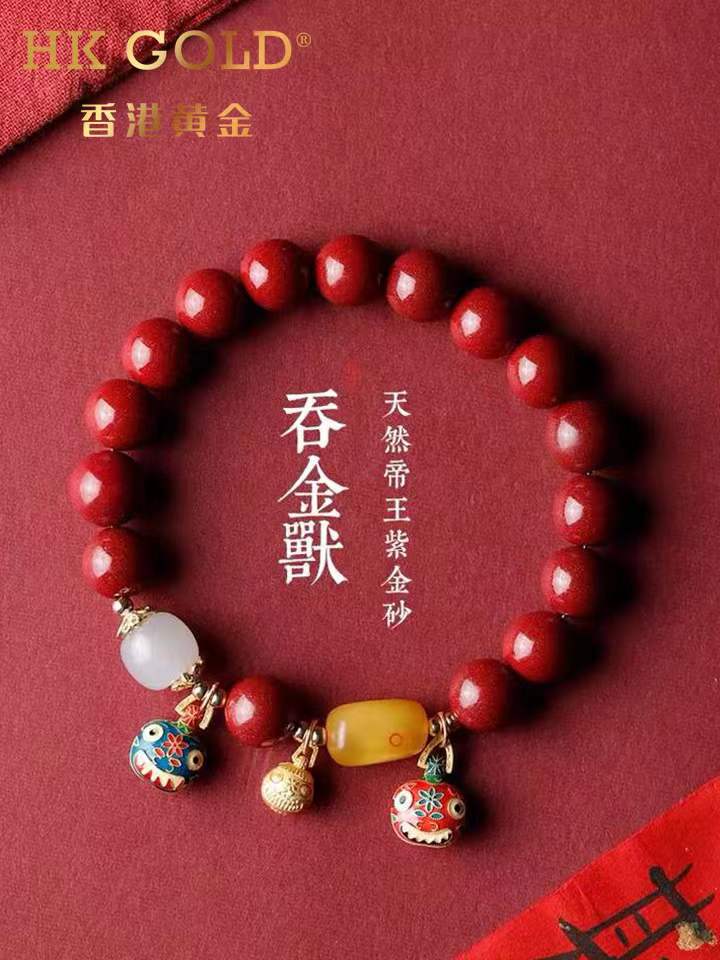 【品名】香港黄金吞金兽朱砂手链