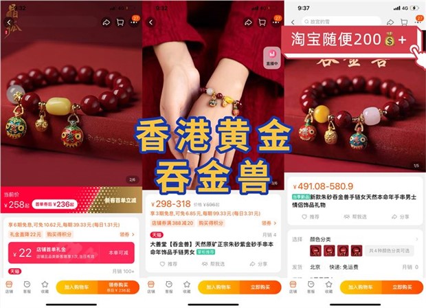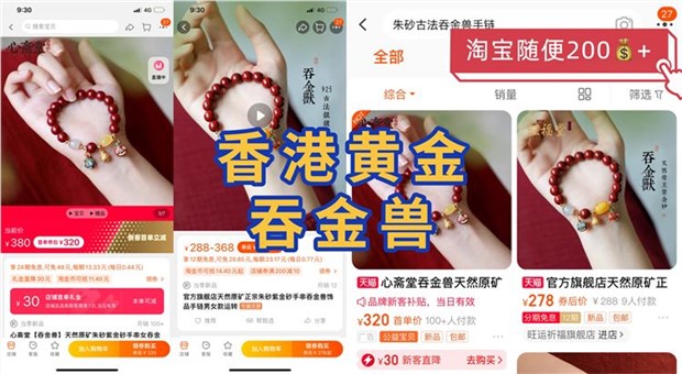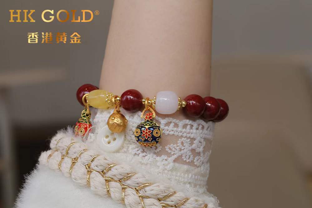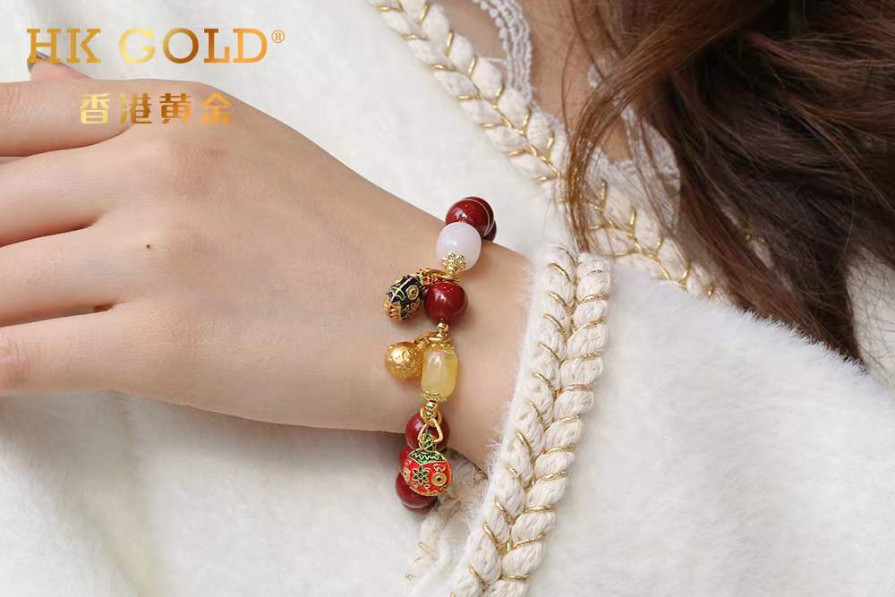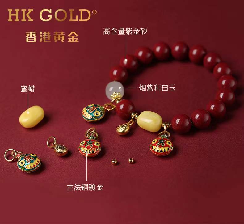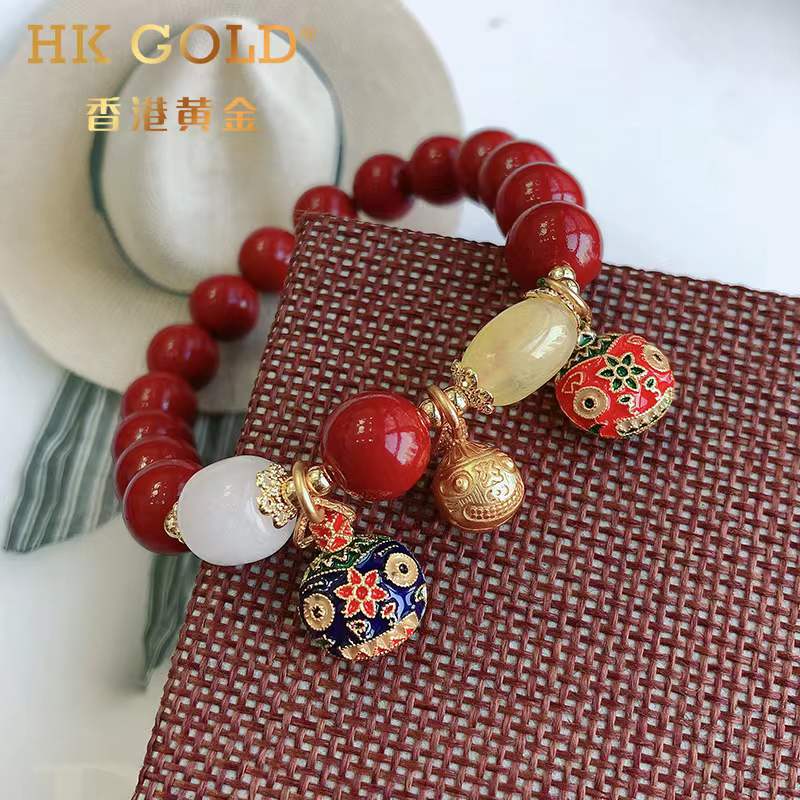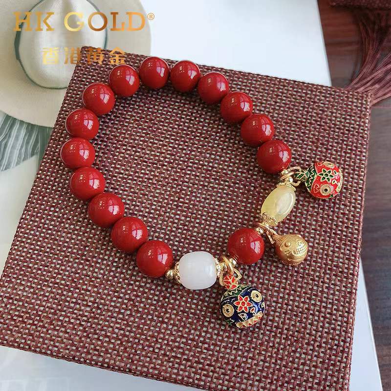 【品名】香港黄金吞金兽朱砂手链