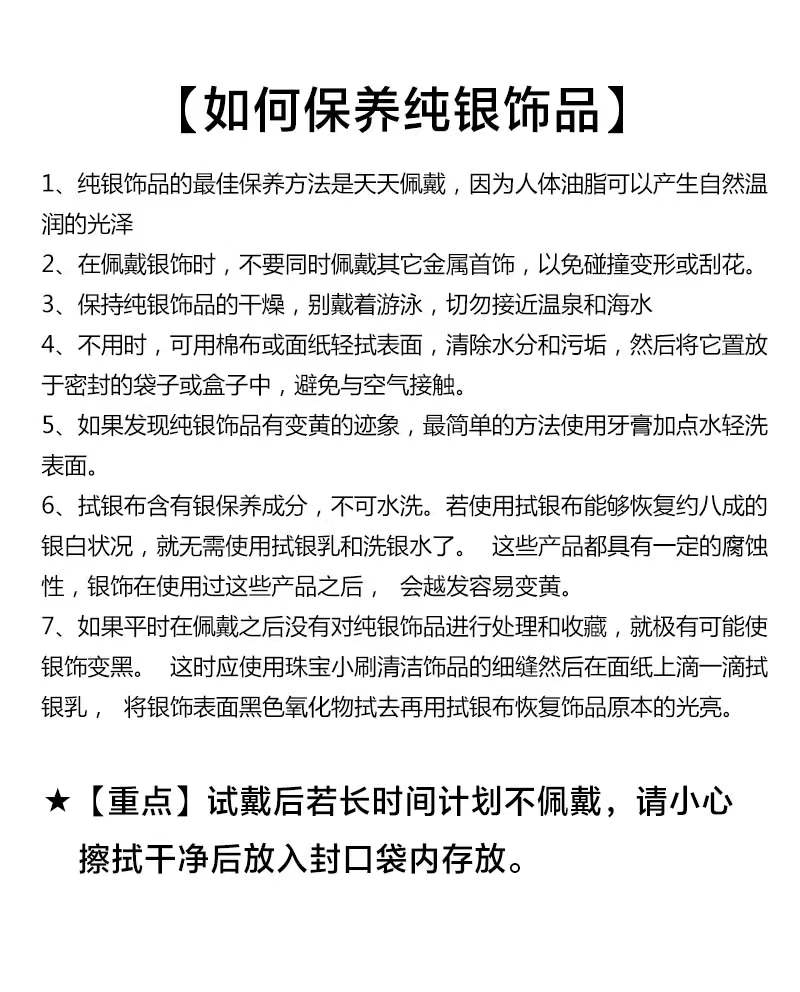 【温馨提示】试戴后若长时间计划不佩戴,请小心擦拭干净后放入封口袋内存放。不同批次配件略有误差,以实际发货为准。