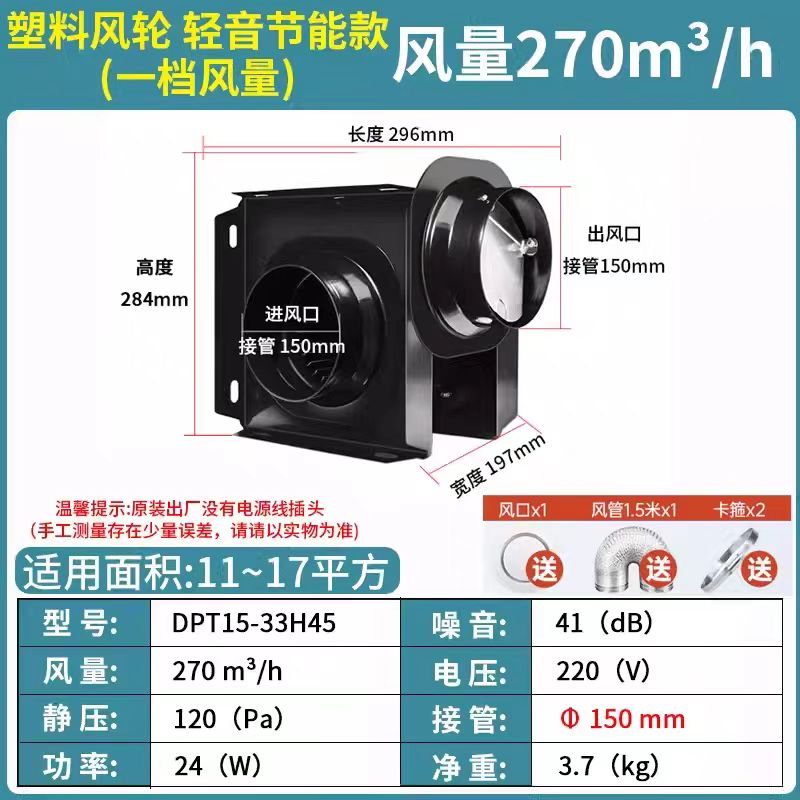 绿岛风DPT15-33H45分体式管道换气扇风量270m³/h(节能静音型)11-17㎡ 商品代码80041