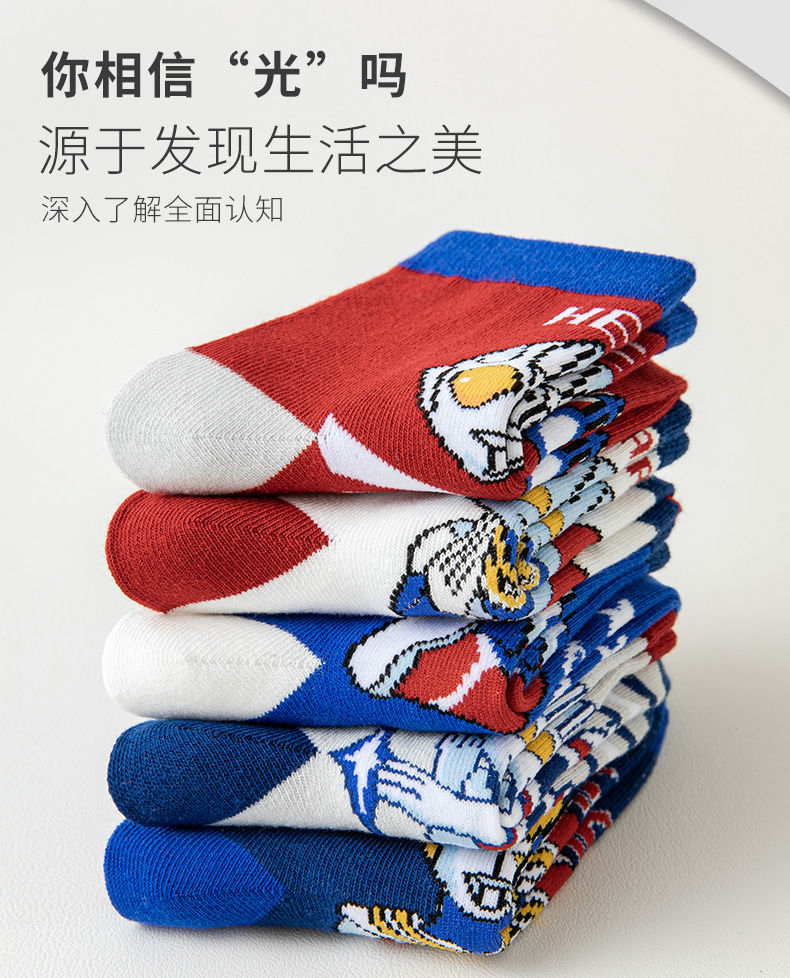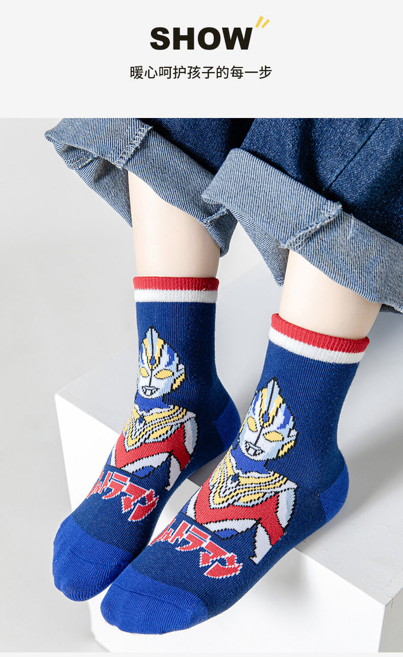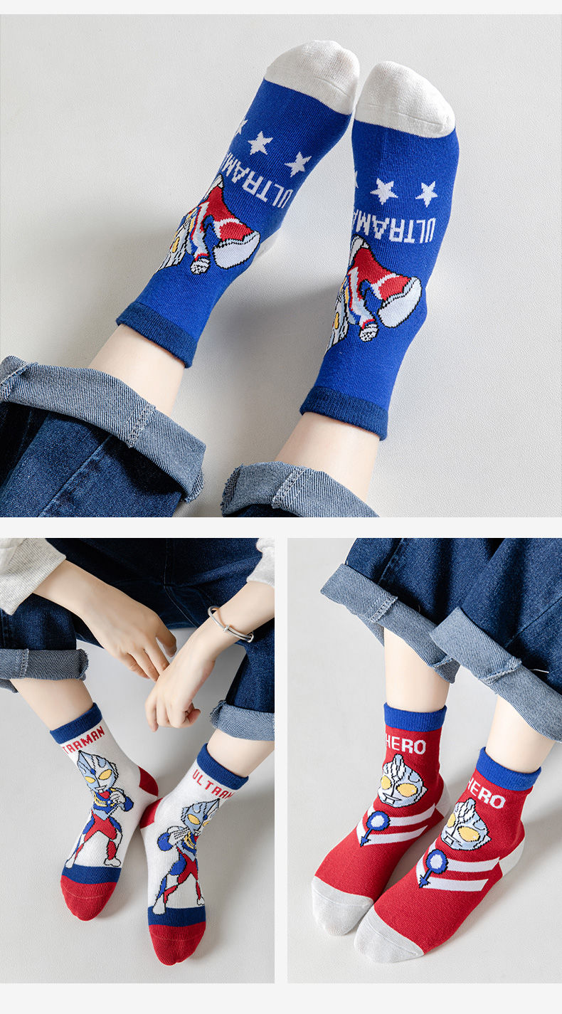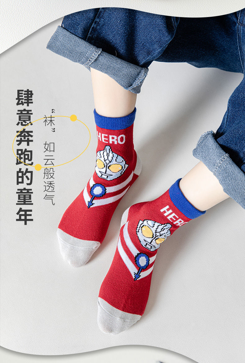 【5双装❗️奥特曼儿童棉袜】皮卡丘蜘蛛侠宝宝袜❗️卡通男童女童袜子,秋冬中筒纯棉袜子,蛇年本命年红袜子好礼物父亲节礼物新年礼盒年货礼盒