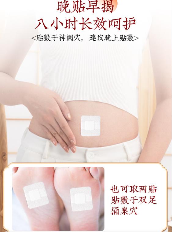 1、每晚睡前取一粒放进肚脐里,使用专用贴固定,次日起床后取出;
