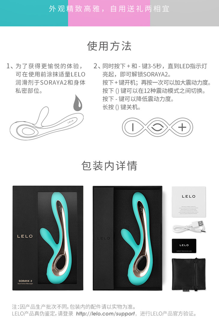 LELO SORAYA 2索瑞娅二代女用兔式双头阴蒂阴道按摩器自慰神器成人情趣性用品