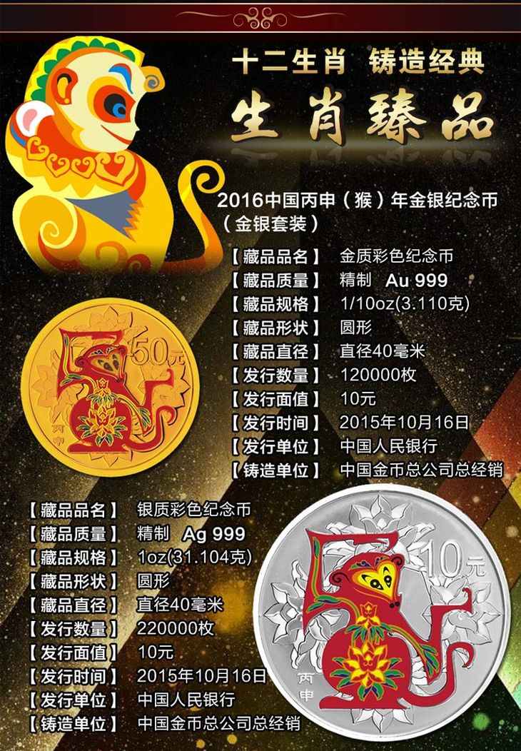河南中钱 中国金币 2016年猴年生肖彩色金银币 彩金银猴 猴年金银币套装现货 商品图6