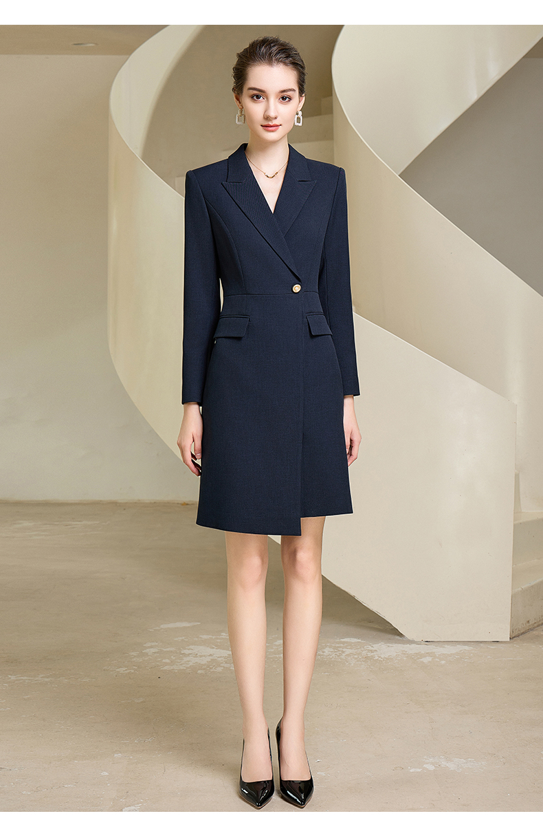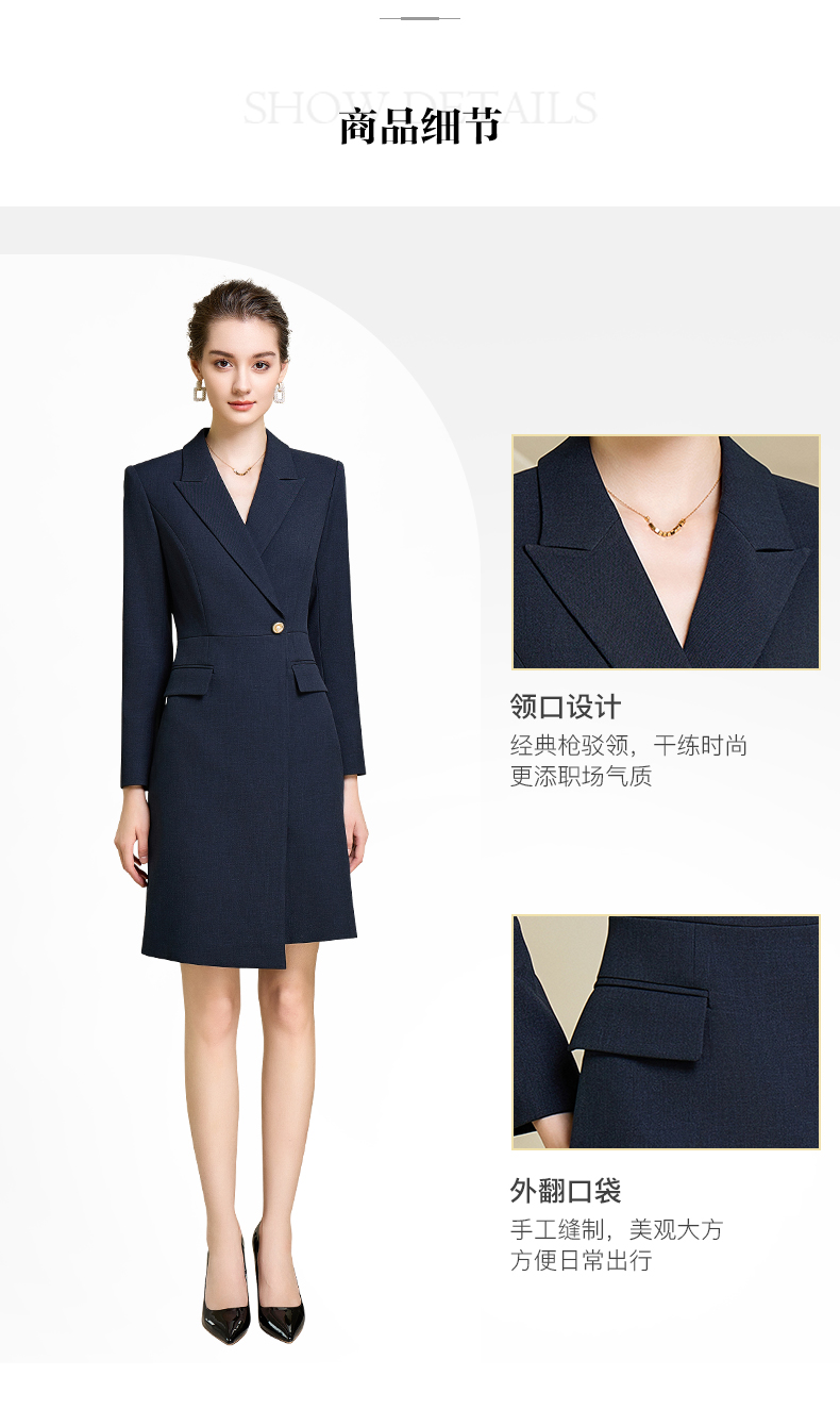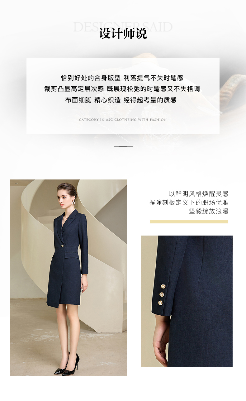 秋季高端藏青色连衣裙女长袖主持人职业装西装裙气质时尚工作服