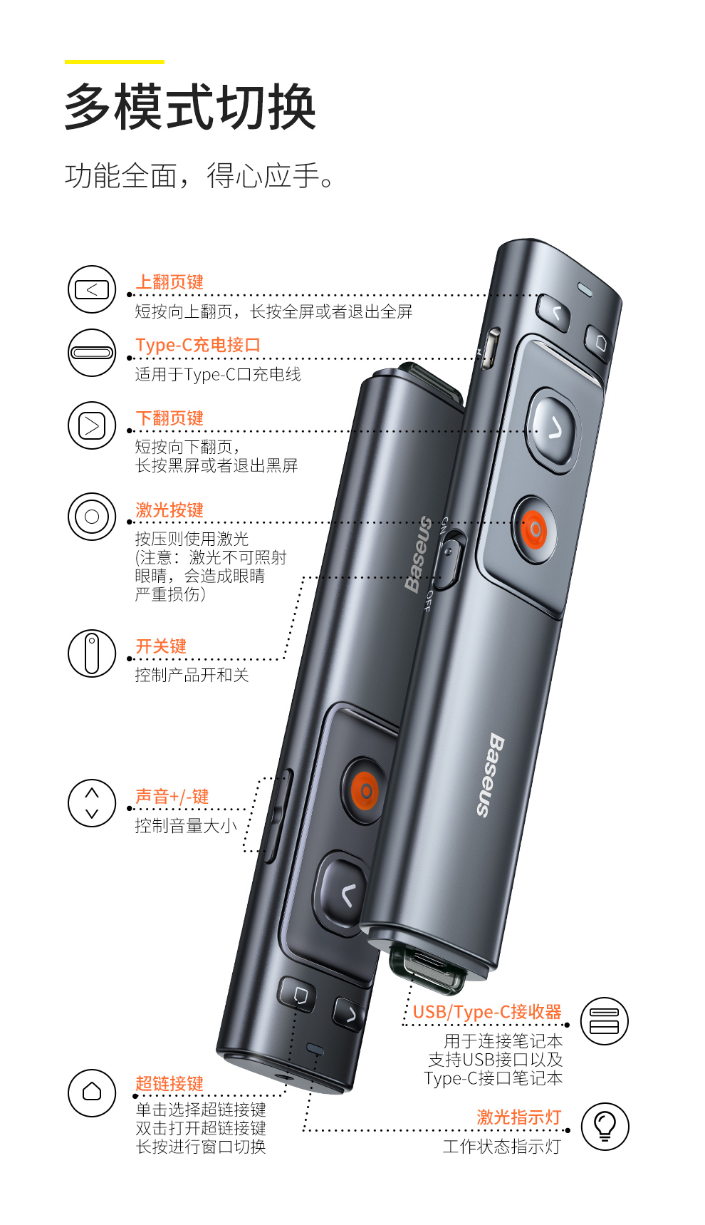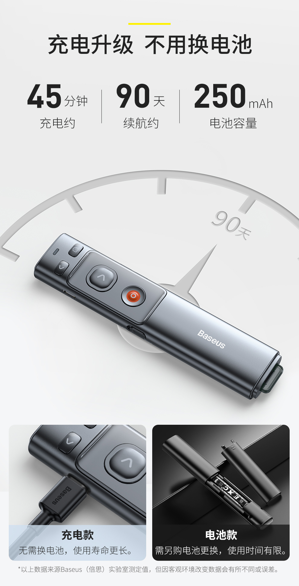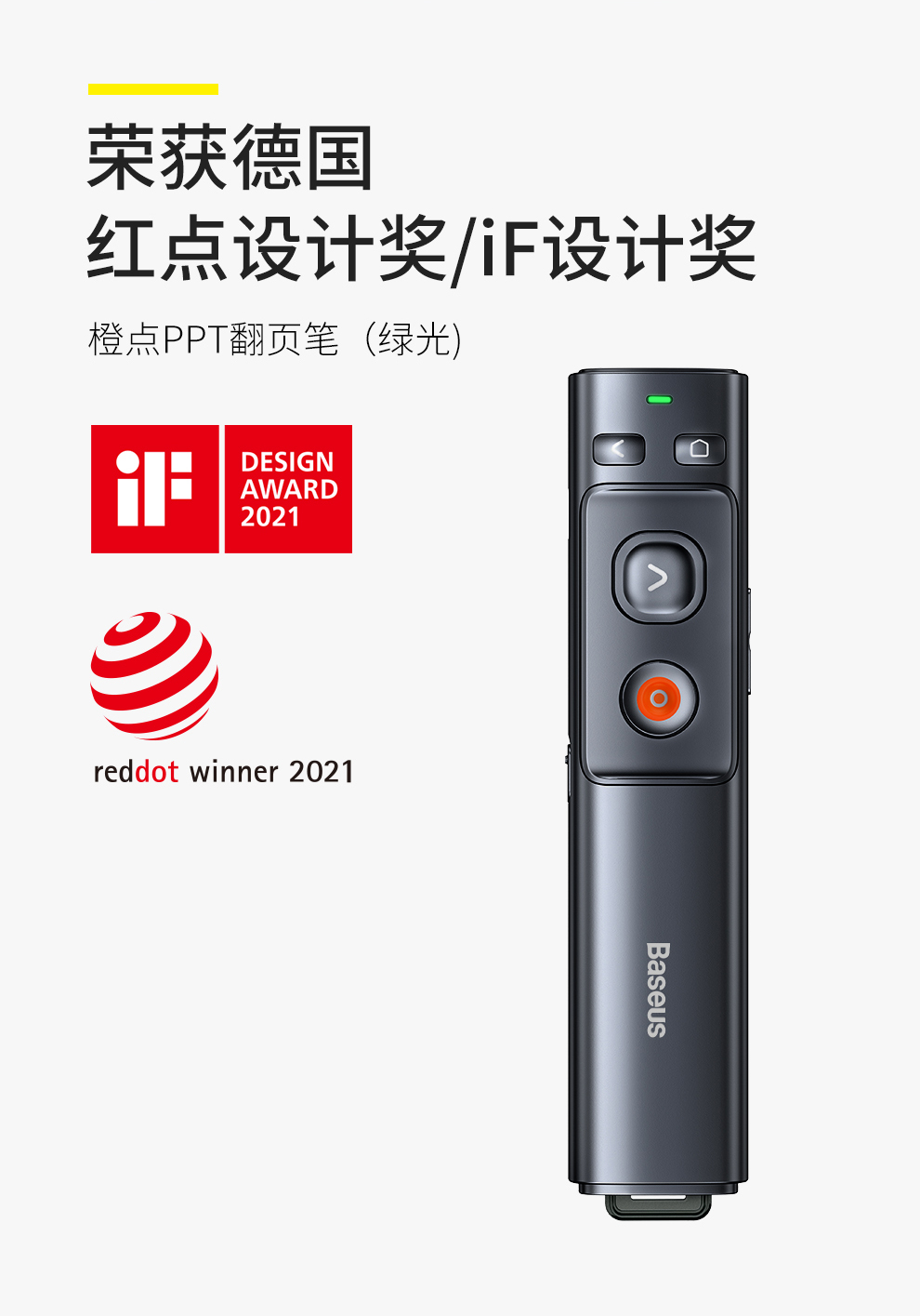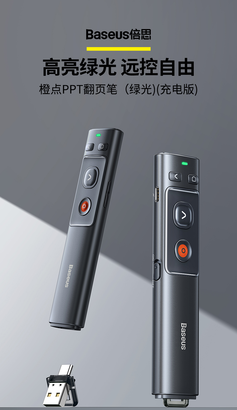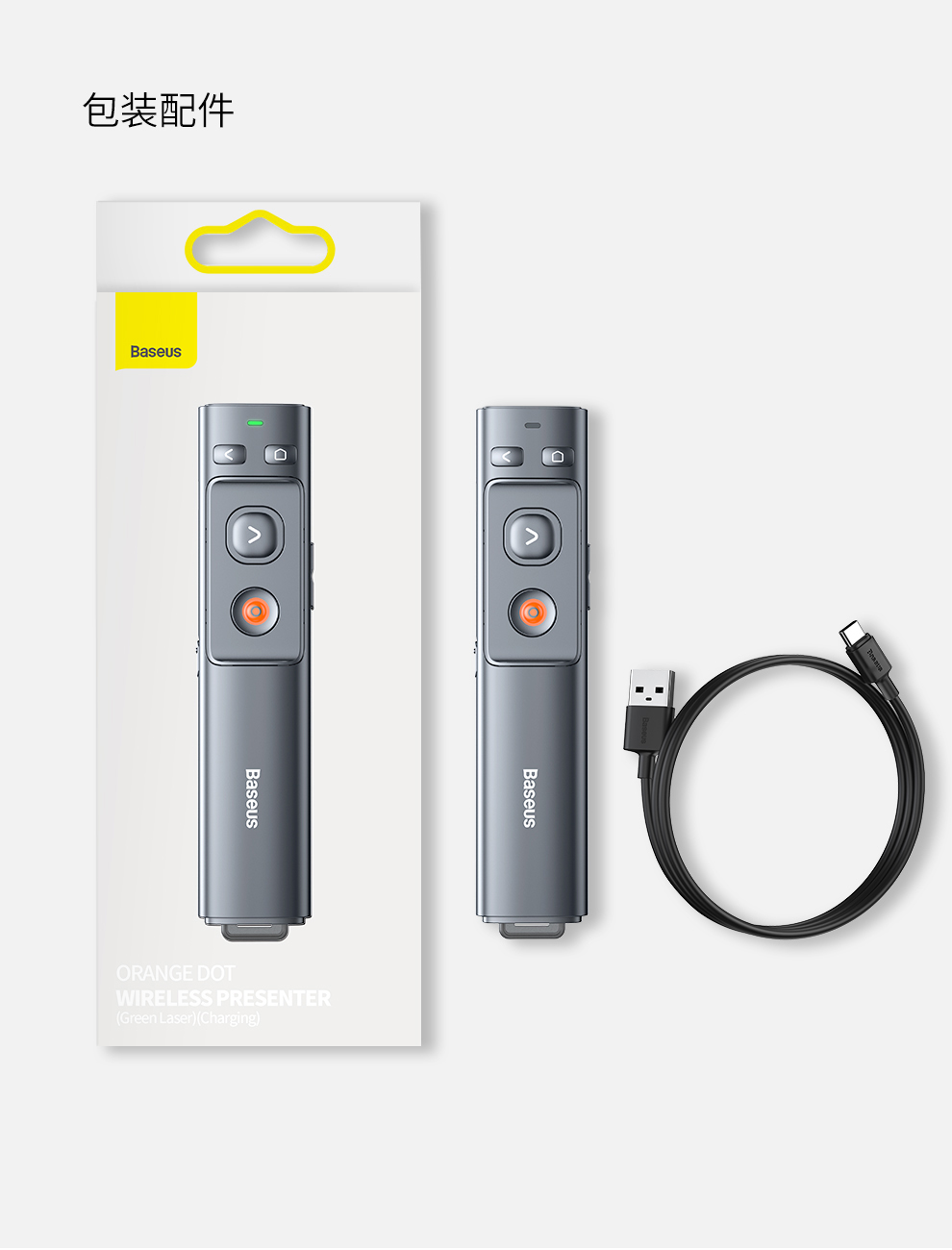 倍思 橙点PPT翻页笔(绿光)(充电版)