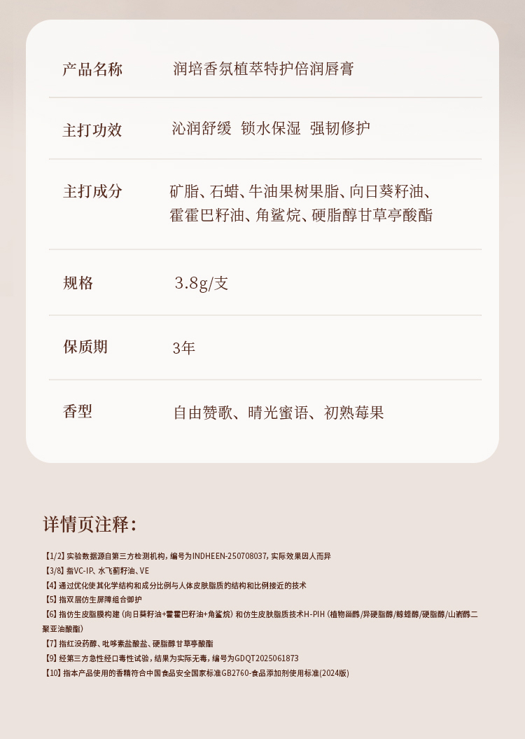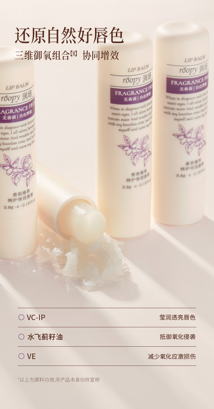 roopy润培香氛植萃特护倍润唇膏3.8g/支-单支/两支