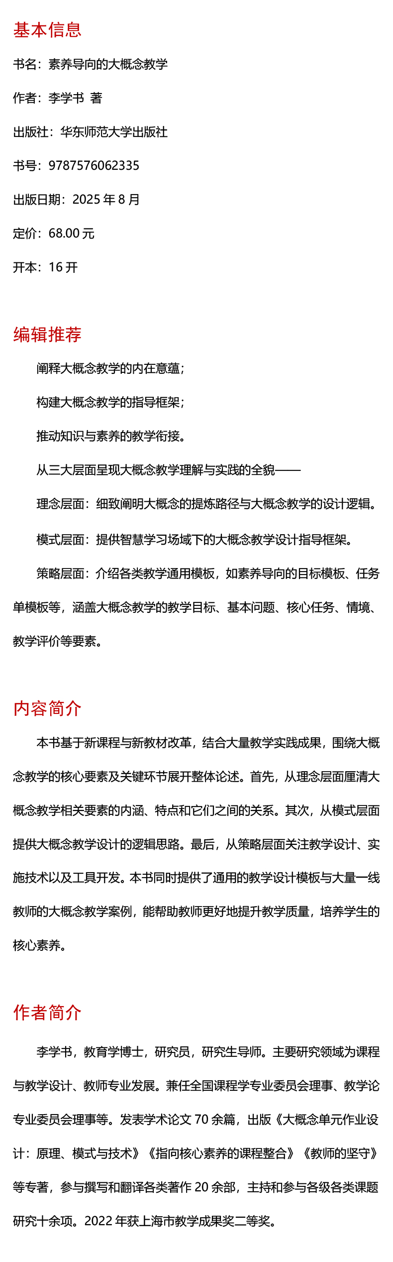 素养导向的大概念教学 李学书 双新视角下聚焦核心素养培养