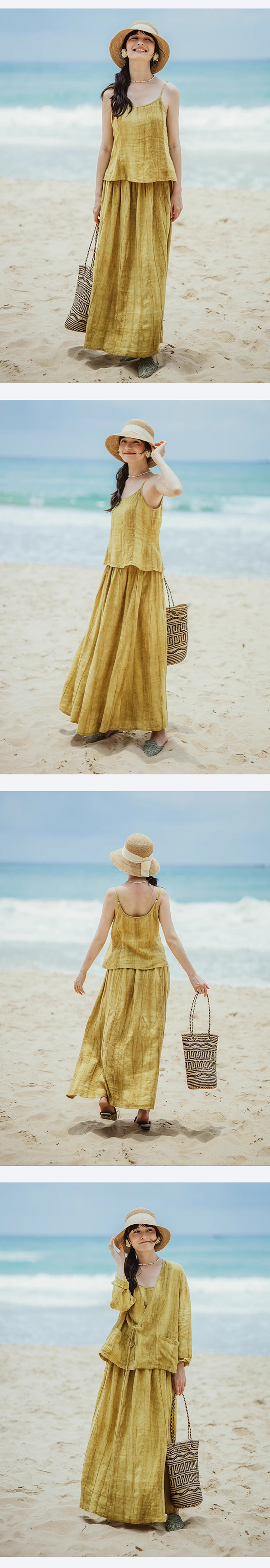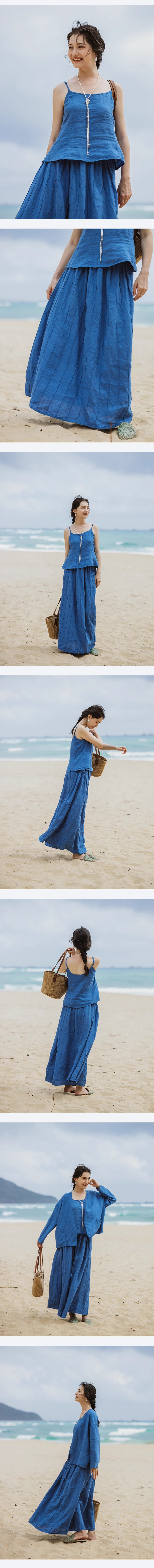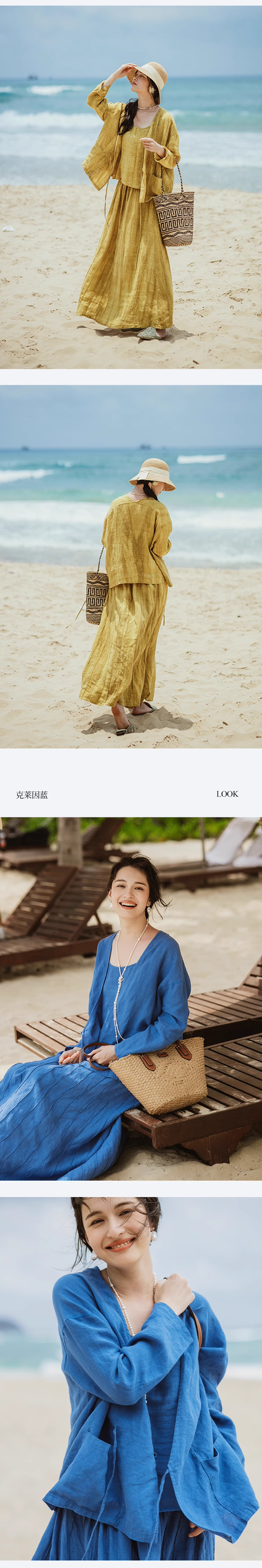 绽放 302朵 套装半裙旅行女装高端砂洗亚麻度假旅游穿搭