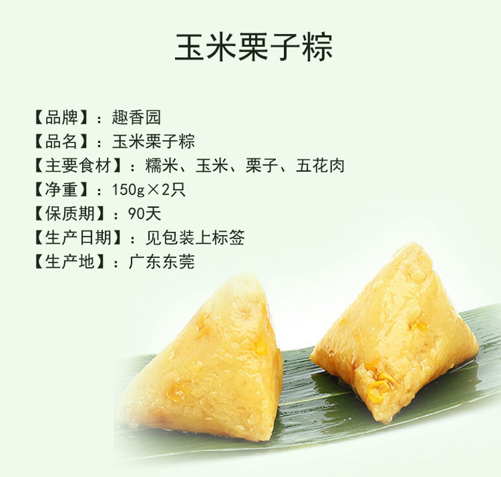 【端午粽子全国快递发货】 玉米栗子粽 袋装300g(150*2只)