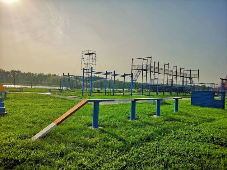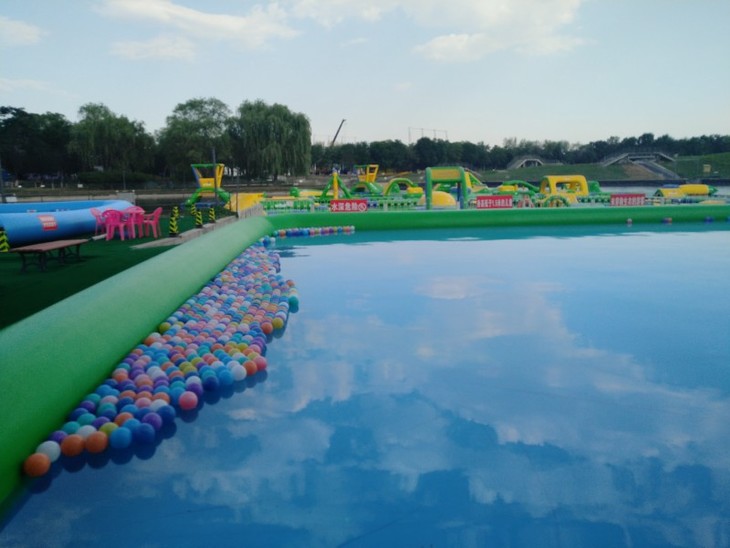 哦,对了,与拓展区域相连的还有篮球场,隔着的水域对面,还有五人足球场!此外,水上公园内部,还有很好的骑行道安排孩子们骑行!