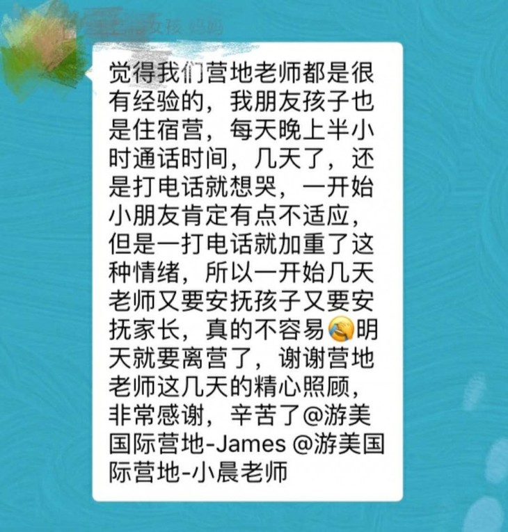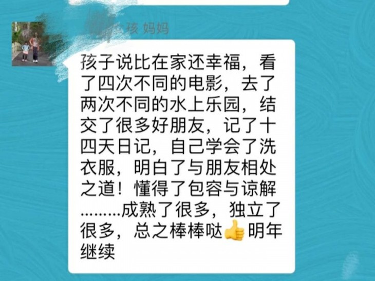 下面我们从曾经参与游美夏令营活动的家长群中摘录几段家长对于营地生活与营地工作人员的评价,大家来感受一下: