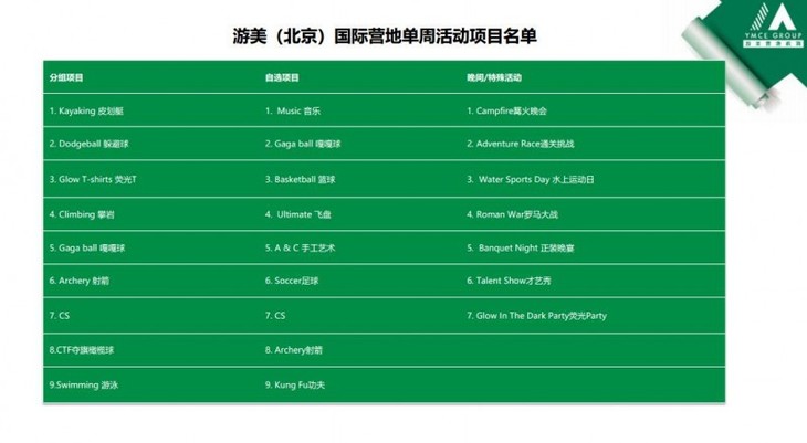 再给妈妈们贴一下“游美-北京营地”标准日程安排: