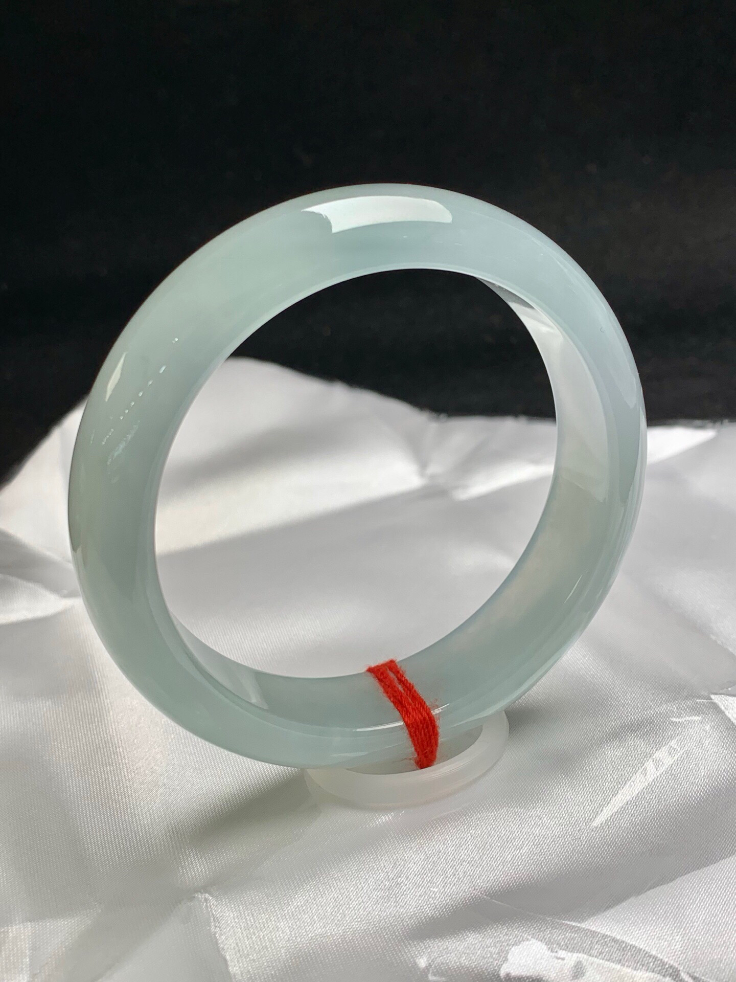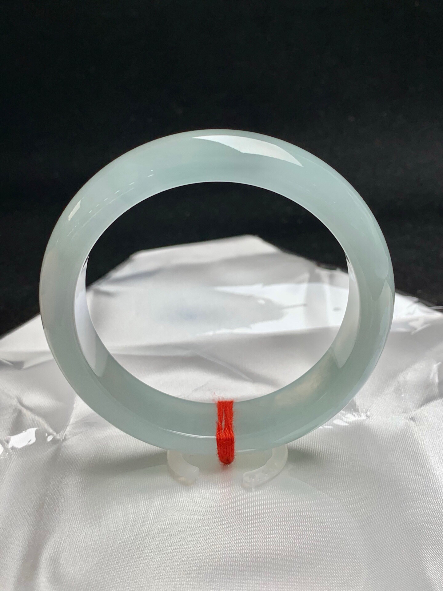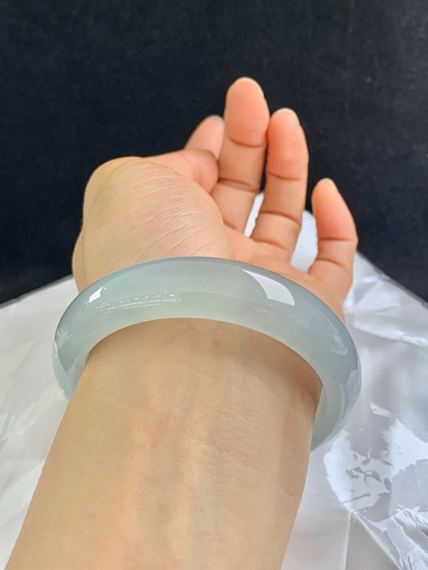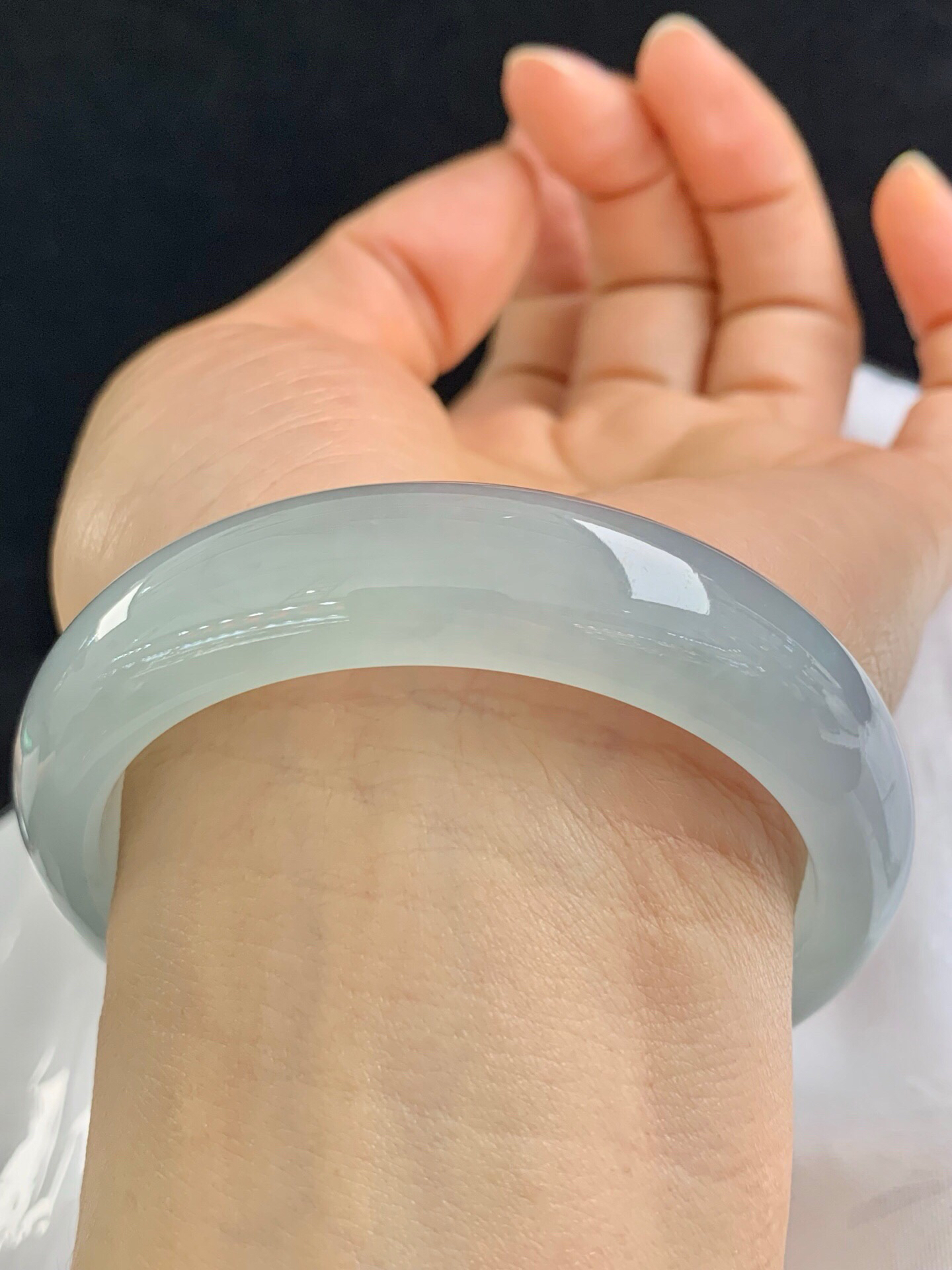 612639,59圈口,冰晴正圈平安镯,晴蓝底色,色泽纯净,条形厚装,冰透起光,完美,尺寸:59-15.1-8.3,超值价💰67500 #优石客珠宝#香玉荟萃