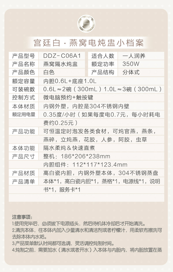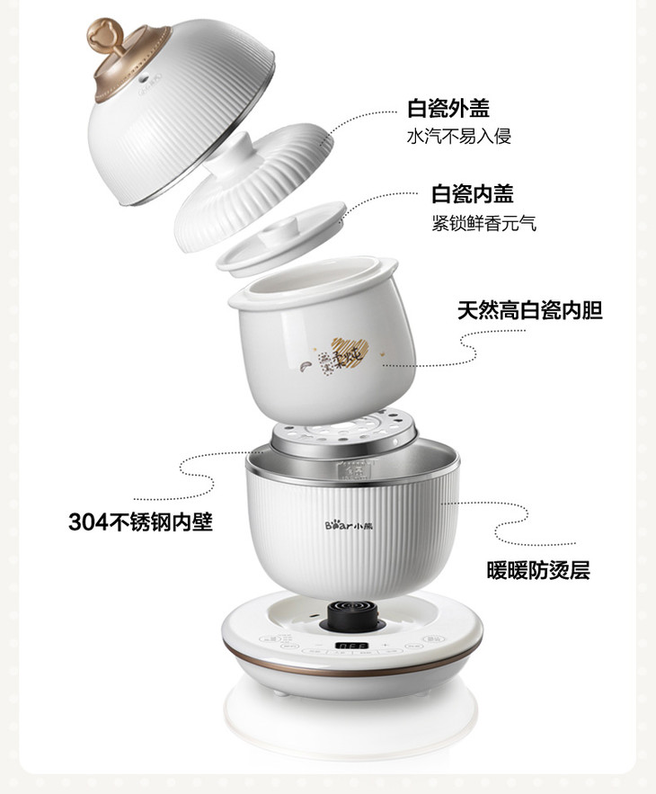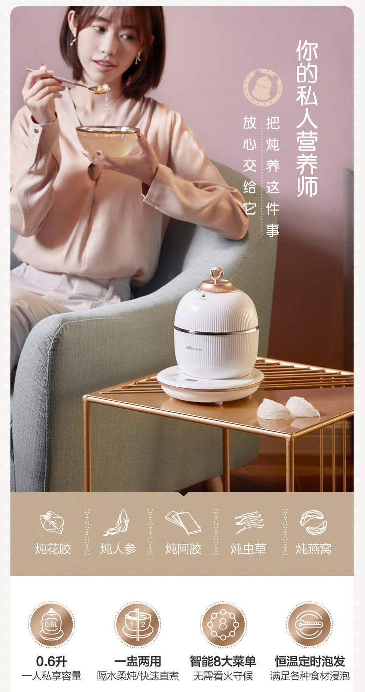 【家用电器】小熊*迷你电炖盅DDZ-C06A1煲燕窝隔水电炖锅0.6升家用炖煮煲汤