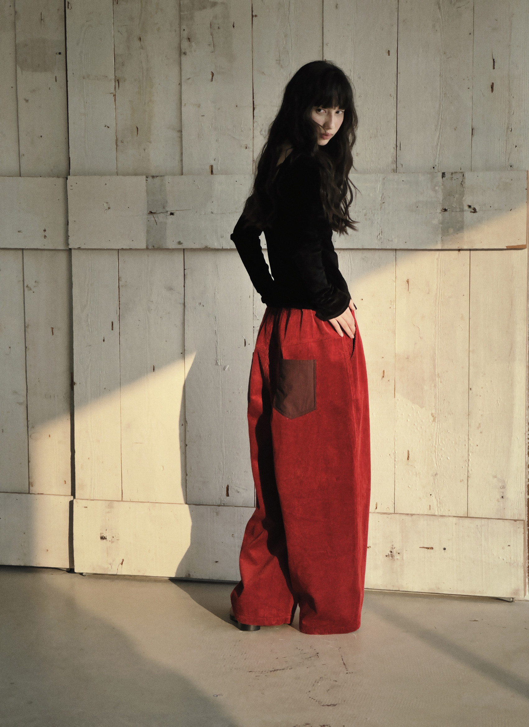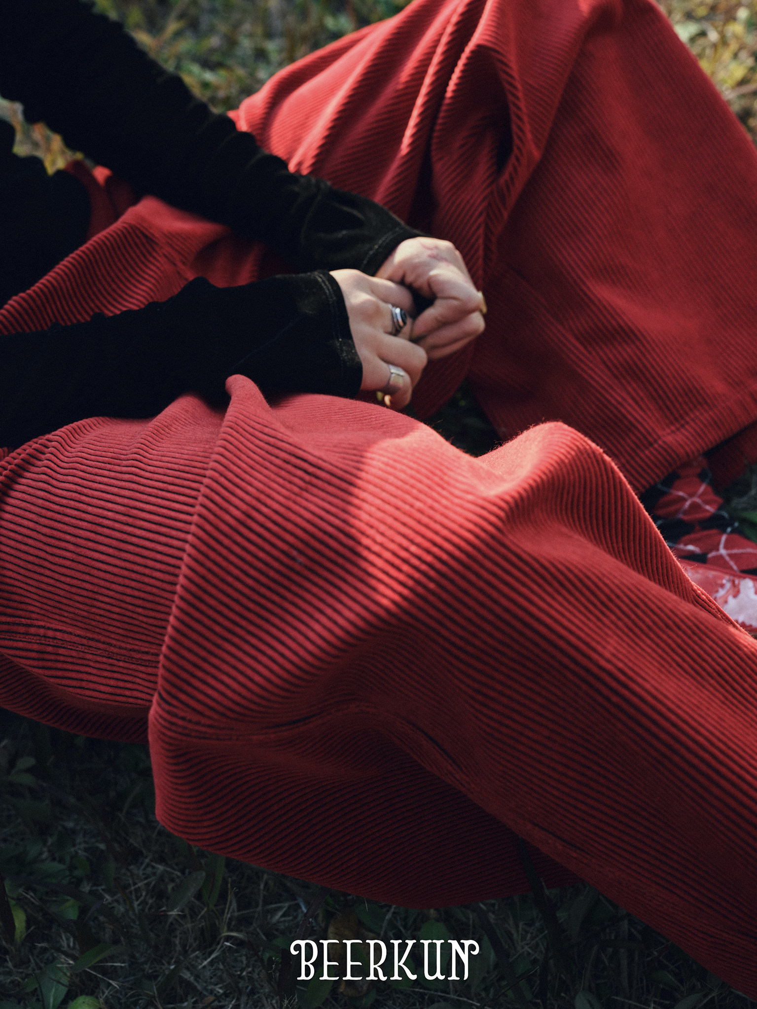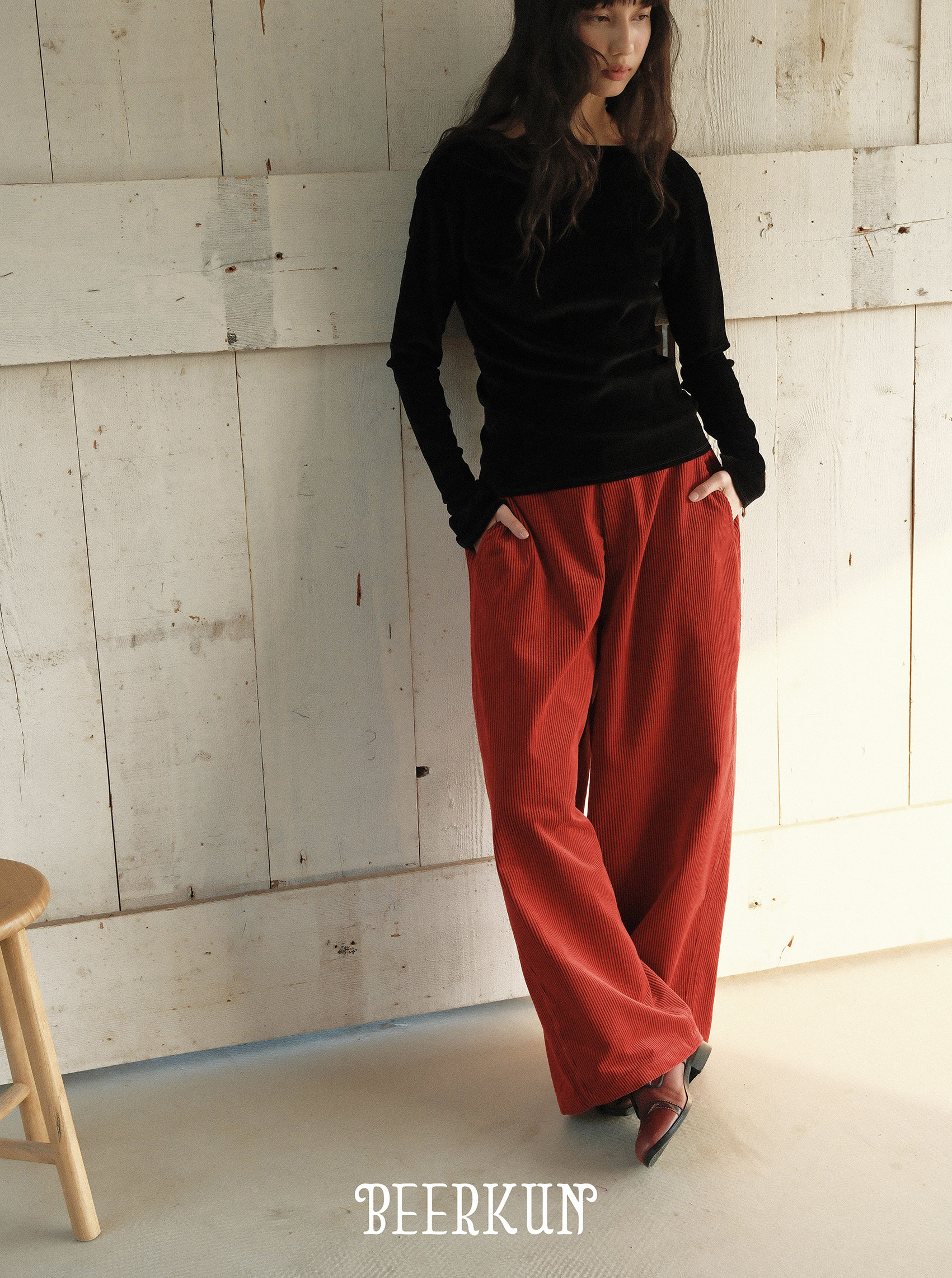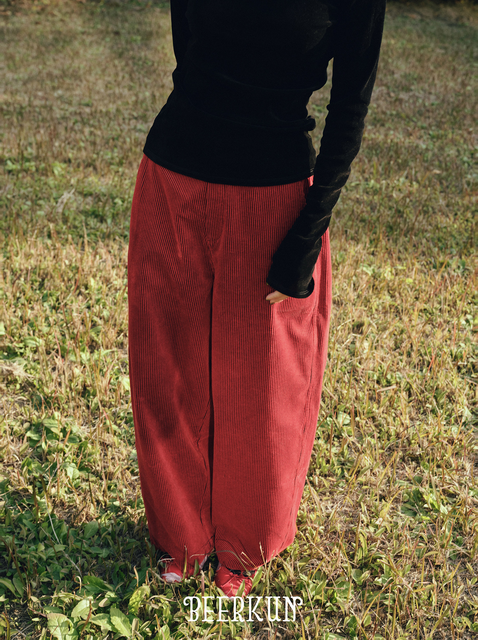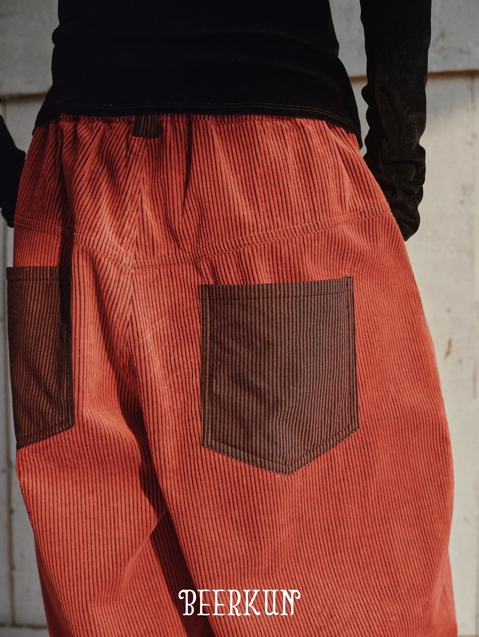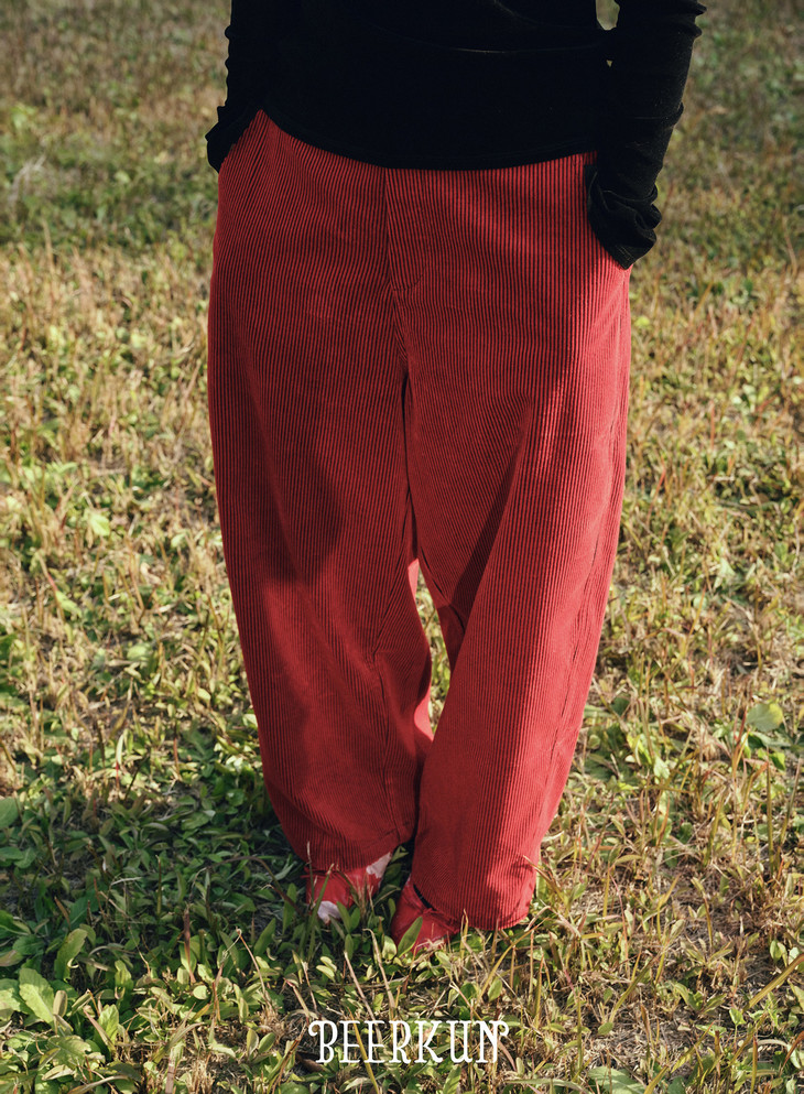 [特价]立裁廓形休闲裤 91%厚丝棉粗纹灯芯绒裤 柿子红